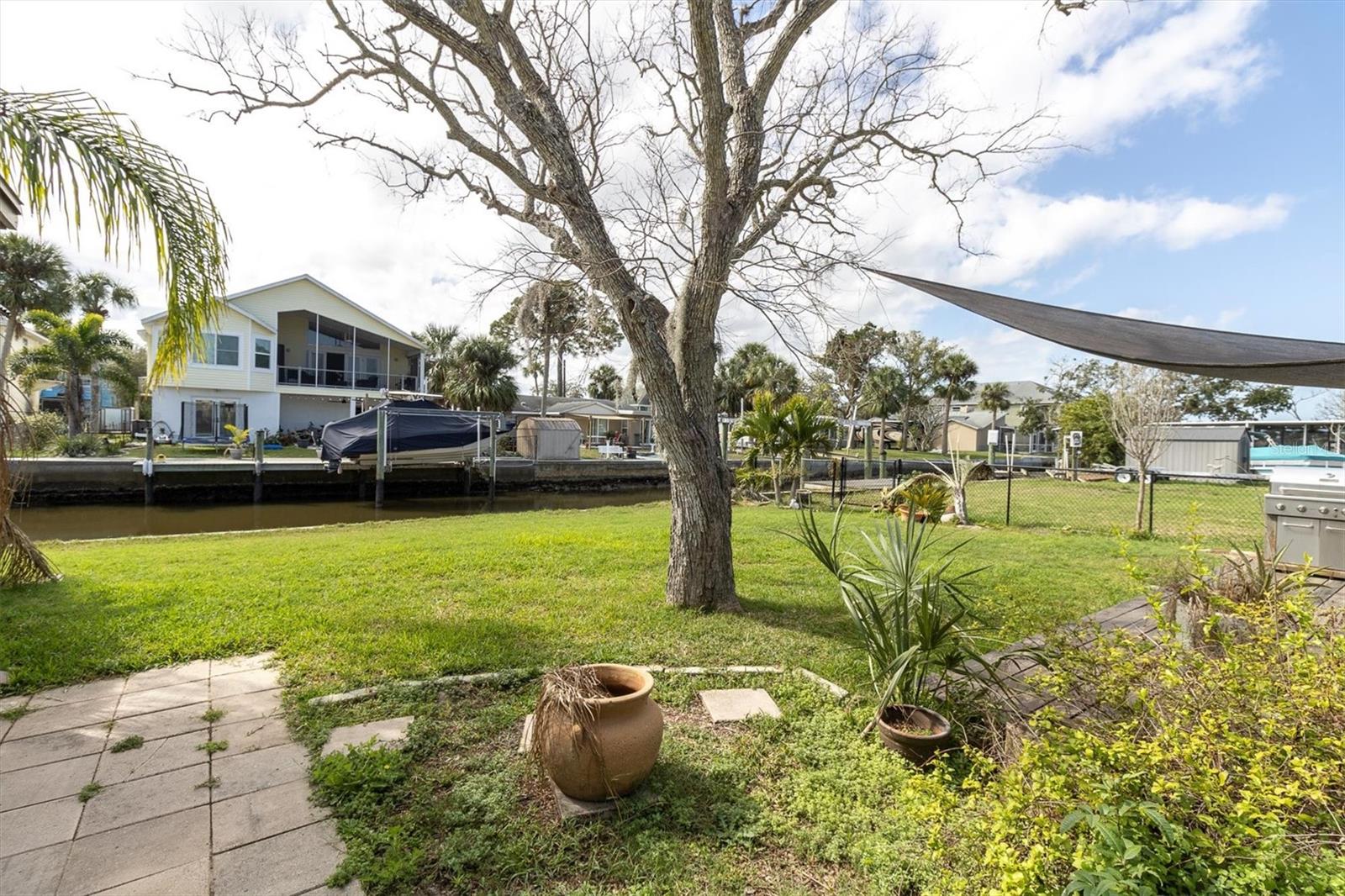 PRICE REDUCED!!! This beautiful waterfront home is a fisherman's dream and offers easy GULF ACCESS. The Owner has renovated with new drywall, paint, kitchen cabinets, bathrooms with elegant tile finishes and flooring throughout. Also, the Owner indicates the seawall was replaced in 2018, roof 2018, AC and hot water tank in 2024. The bedrooms and bathrooms in this home are very spacious, with the third bedroom offering wonderful views of the canal. The canal channel takes you out to Millers Bayou, over to waterfront restaurants, and down the Pithlachascotee River ultimately into the Gulf. The backyard is oversized with a fence making it great for entertaining, grilling, or just relaxing on the deck while enjoying the water views and spectacular sunsets. The backyard also has a large storage shed making it convenient for storing your, yard tools, fishing equipment, water toys, and more. The home is in a quaint golf cart friendly community with a park, waterfront restaurants, and shopping. Right around the corner are the boardwalk at Robert K. Rees Memorial Park and the Pithlachascotee or “Cotee” River. This is a must see location. So, schedule your appointment for a preview today. This home may be purchased with the lot next door, listed separately.