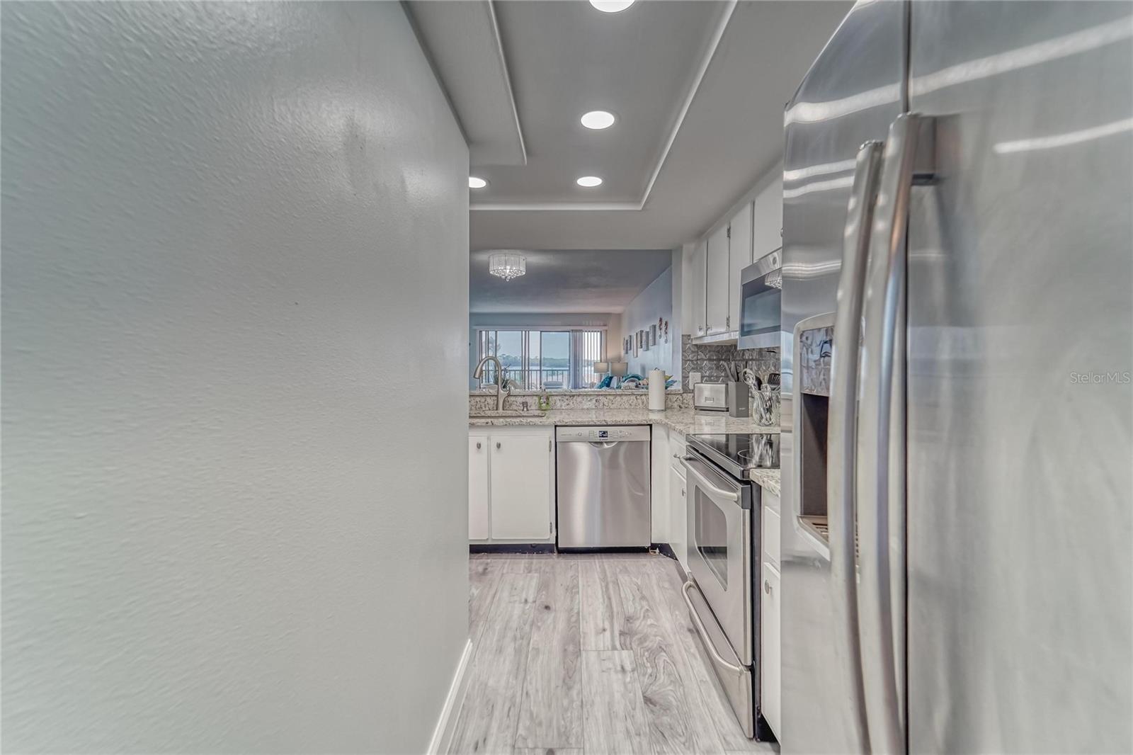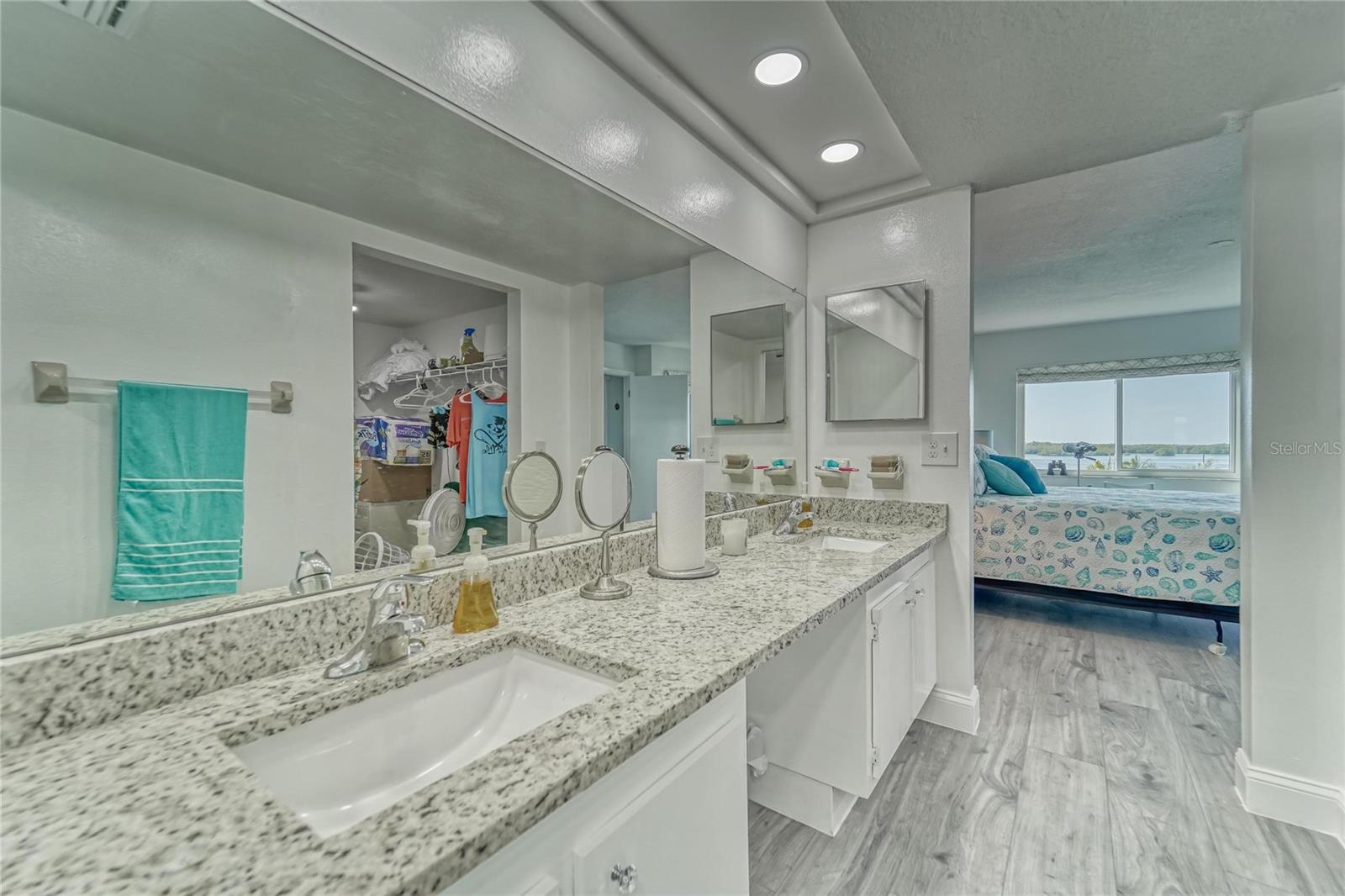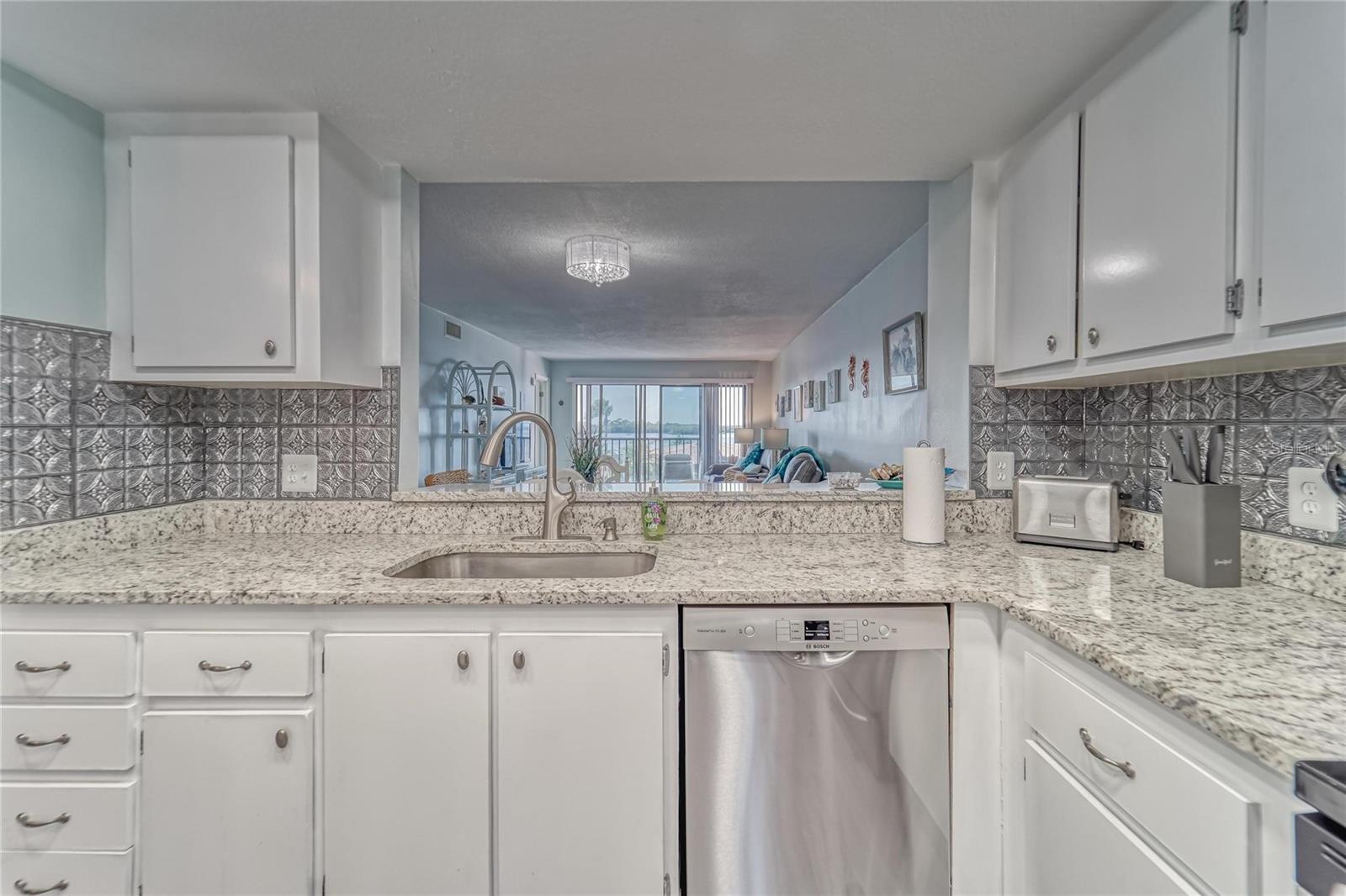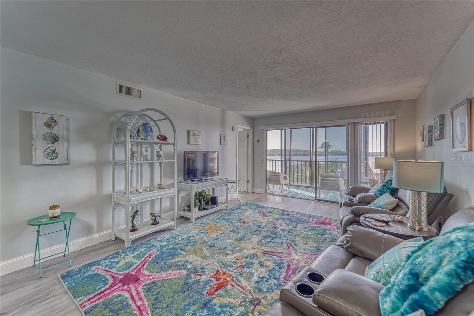 Gulf views abound in this updated waterfront condo. Magnificently located in a private, gated community, at the mouth of Cotee with gobsmacking views of the River and the Gulf, drawing you to the waterfront. Watch the mullet jumping about and enjoy the local flora and fauna, right from the comfort of your living room. This unit has completely rehabbed in the 2022 with brand new LVP flooring, new ceilings, new granite countertops, new backsplash, all new stainless steel appliances, brand new master bathtub and shower, new interior paint, new small mesh screening in the lanai, brand new 3 ton air conditioner. Boasting split plan bedrooms, the master is generous with breathtaking views, ensuite bathroom, walk in closet and sliding door access to the lanai. The second bedroom is at the front of the unit, it is ample in size with guest bath across the hall. The lanai is enclosed with sliding doors and a private spiral staircase leading down to the pool, the beach and the boardwalk. AC (2022), Hot Water Heater (2009). There is one reserved parking space located under the building (#12), and one reserved storage locker (#12). The Community offers a 24 hour gate guard, community boat ramp, waterfront boardwalk, fishing pier, heated pool, private beach (reserved ONLY for residents in Phase 3), tennis, pickle ball, and clubhouse where you will find the fitness room, game tables, library and card room. The Community boasts a vibrant social scene with card clubs, fitness classes and seasonal events. Located closely to the historic City of New Port Richey, restaurants, shopping and medical facilities. It is a short drive to Tarpon Springs and the beaches of Clearwater and St Petersburg and under an hour to the international airports. Sand Pebble does not allow pets. Condo is being being sold AS IS for seller convenience.