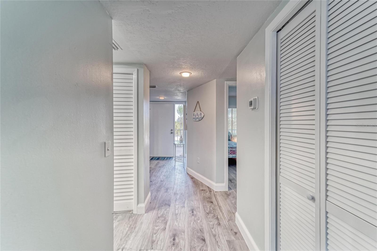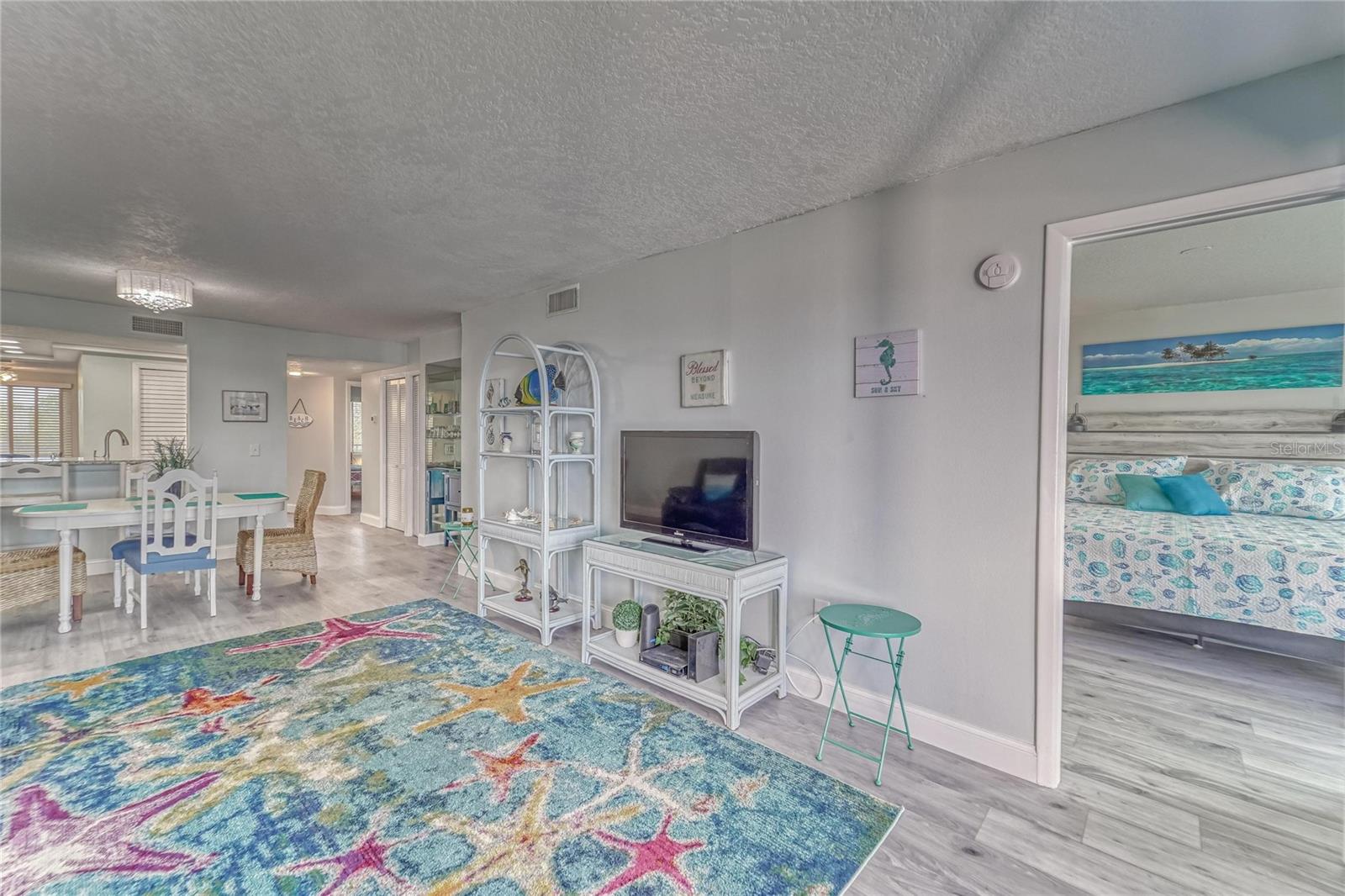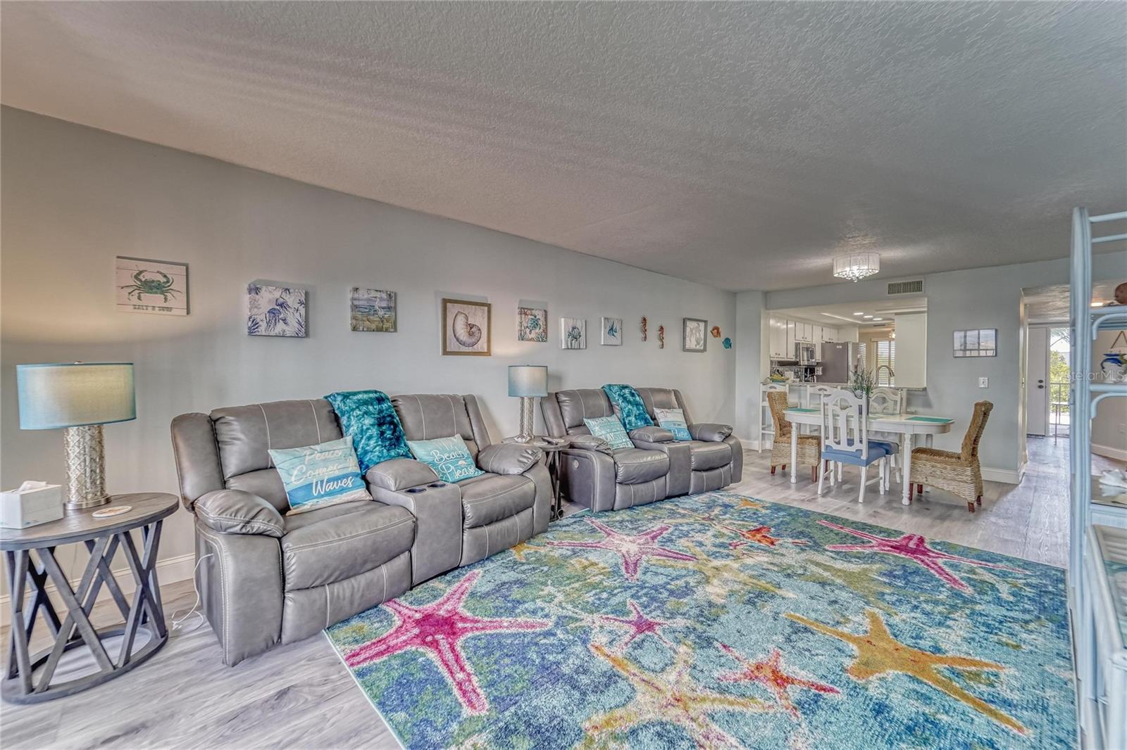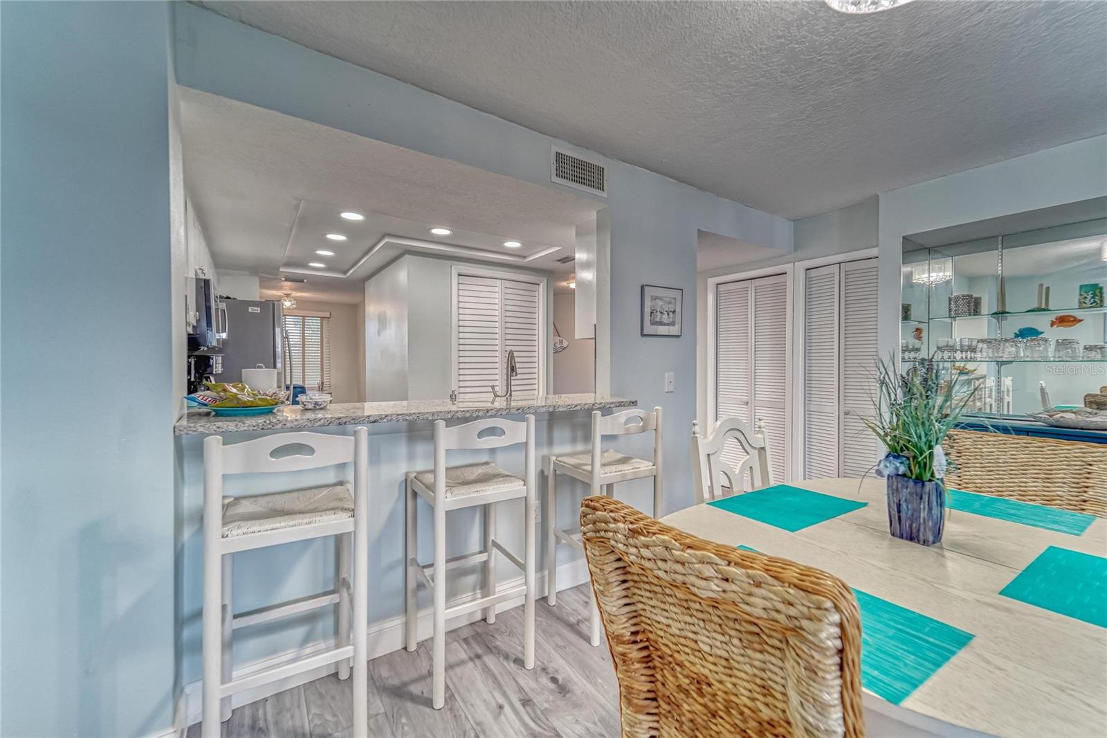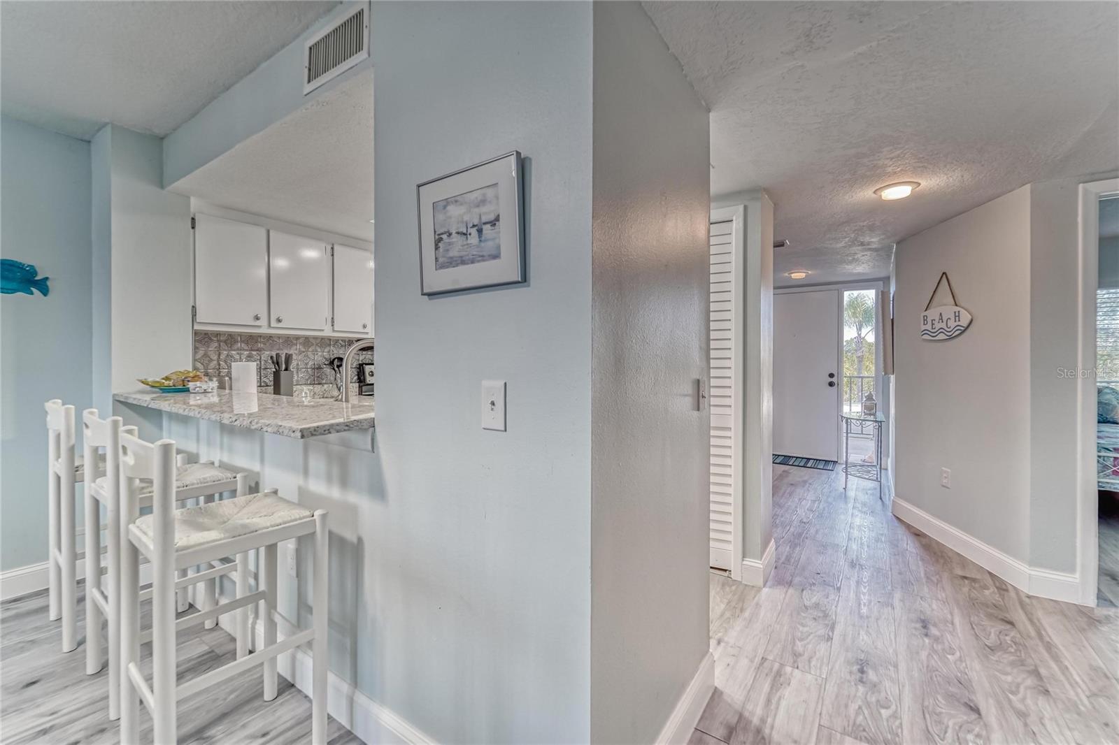 Gulf views abound in this updated waterfront condo. Magnificently located in a private, gated community, at the mouth of Cotee with gobsmacking views of the River and the Gulf, drawing you to the waterfront. Watch the mullet jumping about and enjoy the local flora and fauna, right from the comfort of your living room. This unit has completely rehabbed in the 2022 with brand new LVP flooring, new ceilings, new granite countertops, new backsplash, all new stainless steel appliances, brand new master bathtub and shower, new interior paint, new small mesh screening in the lanai, brand new 3 ton air conditioner. Boasting split plan bedrooms, the master is generous with breathtaking views, ensuite bathroom, walk in closet and sliding door access to the lanai. The second bedroom is at the front of the unit, it is ample in size with guest bath across the hall. The lanai is enclosed with sliding doors and a private spiral staircase leading down to the pool, the beach and the boardwalk. AC (2022), Hot Water Heater (2009). There is one reserved parking space located under the building (#12), and one reserved storage locker (#12). The Community offers a 24 hour gate guard, community boat ramp, waterfront boardwalk, fishing pier, heated pool, private beach (reserved ONLY for residents in Phase 3), tennis, pickle ball, and clubhouse where you will find the fitness room, game tables, library and card room. The Community boasts a vibrant social scene with card clubs, fitness classes and seasonal events. Located closely to the historic City of New Port Richey, restaurants, shopping and medical facilities. It is a short drive to Tarpon Springs and the beaches of Clearwater and St Petersburg and under an hour to the international airports. Sand Pebble does not allow pets. Condo is being being sold AS IS for seller convenience.