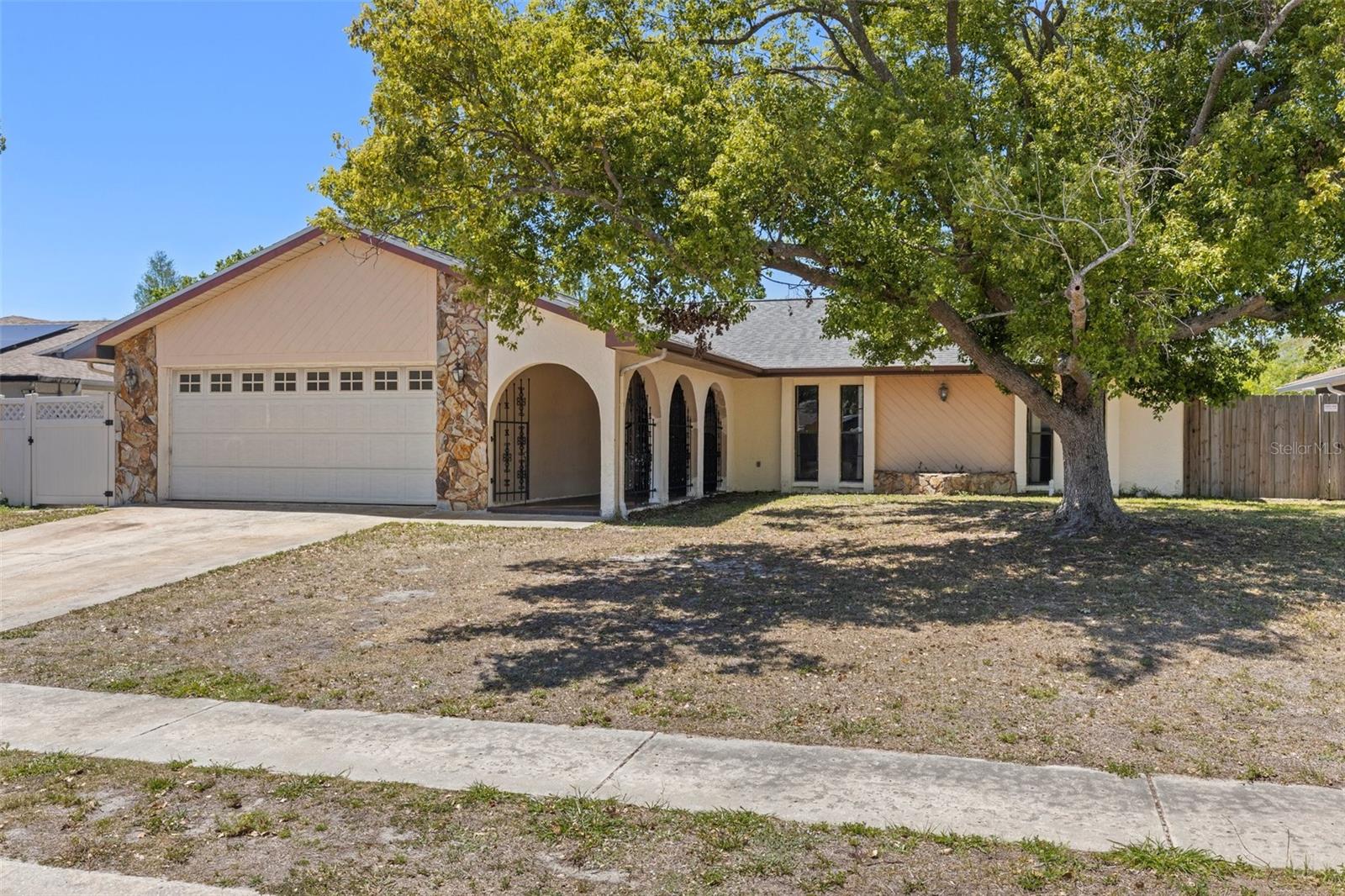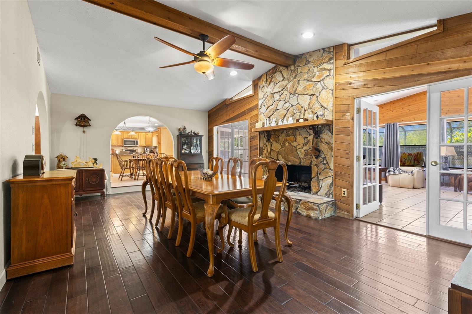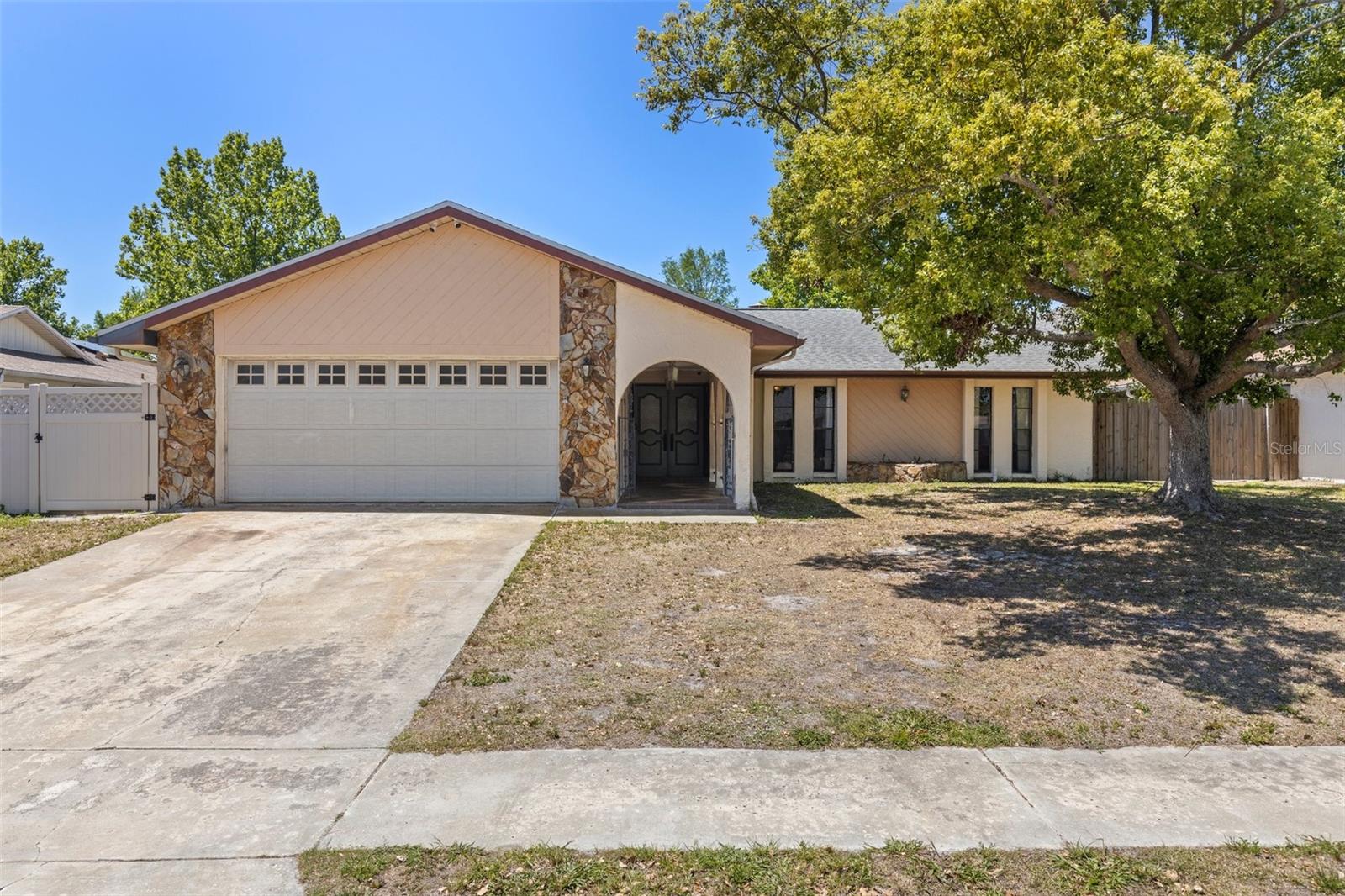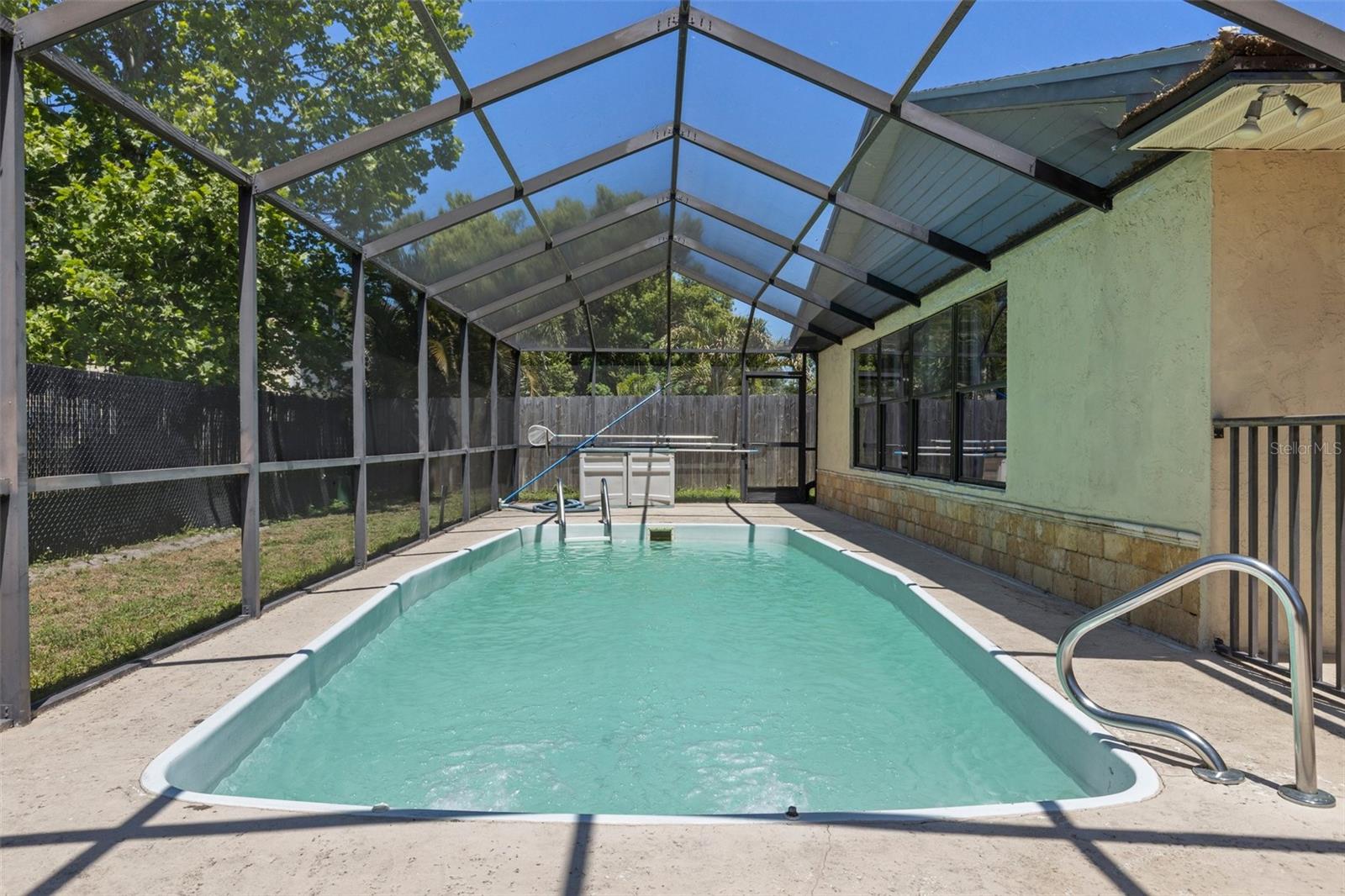 Under contract-accepting backup offers. Spacious Pool Home! This home is an absolute gem. Large, spacious rooms with an abundance of natural light. The light filled living room with electric fireplace opens up to an enormous screened in patio with a beautiful sparkling swimming pool. The huge kitchen is made for large gatherings with an abundance of cabinet and counterspace. The large dining room has a lovely stone wood burning fireplace. The primary bedroom has an updated en-suite bathroom with double vanities. There are 3 additional bedrooms and 2 additional full bathrooms. Storage is not an issue in this home with a large garage and an indoor laundry room. The fenced backyard backs up to a pond so lots of privacy with no backyard neighbors. NO HOA or CDD required. NO flood insurance required. Schedule your showing today to see this lovely home.