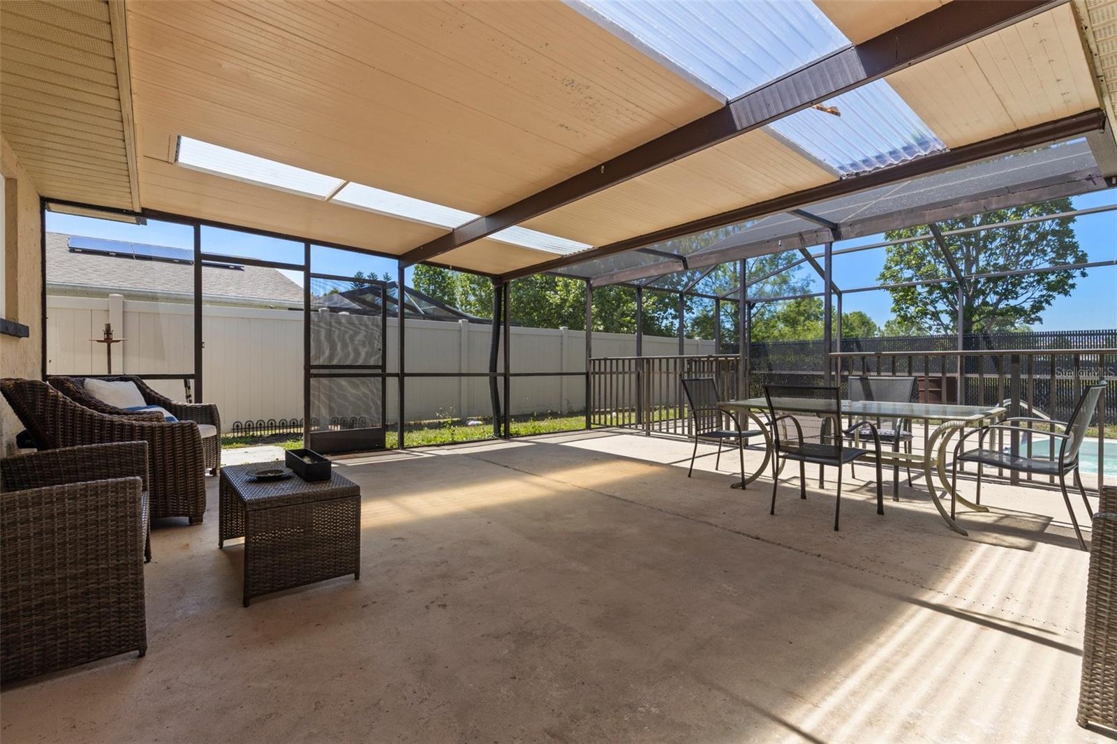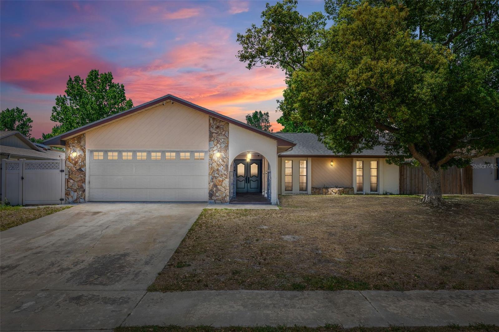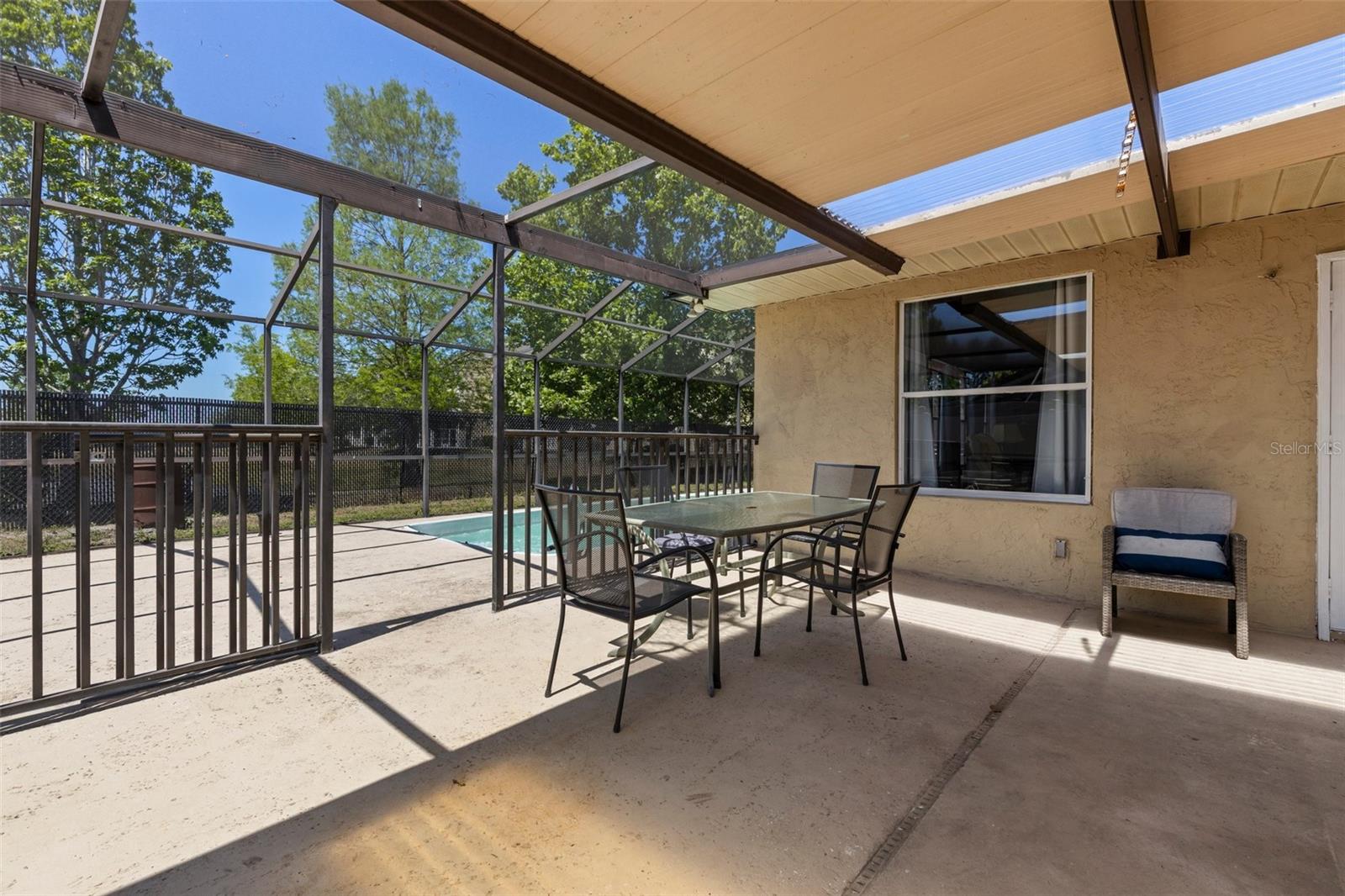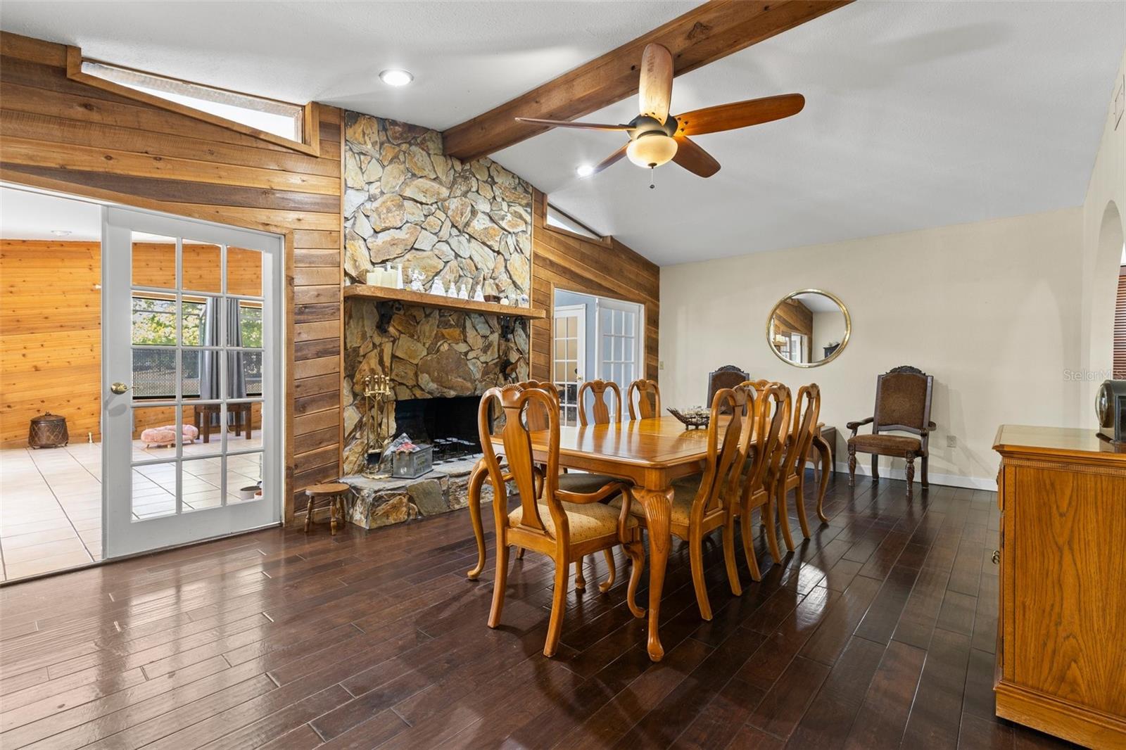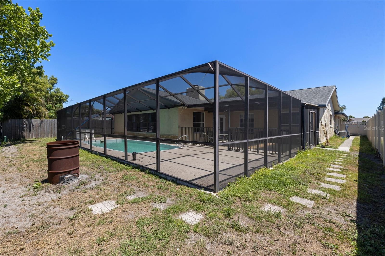 Under contract-accepting backup offers. Spacious Pool Home! This home is an absolute gem. Large, spacious rooms with an abundance of natural light. The light filled living room with electric fireplace opens up to an enormous screened in patio with a beautiful sparkling swimming pool. The huge kitchen is made for large gatherings with an abundance of cabinet and counterspace. The large dining room has a lovely stone wood burning fireplace. The primary bedroom has an updated en-suite bathroom with double vanities. There are 3 additional bedrooms and 2 additional full bathrooms. Storage is not an issue in this home with a large garage and an indoor laundry room. The fenced backyard backs up to a pond so lots of privacy with no backyard neighbors. NO HOA or CDD required. NO flood insurance required. Schedule your showing today to see this lovely home.