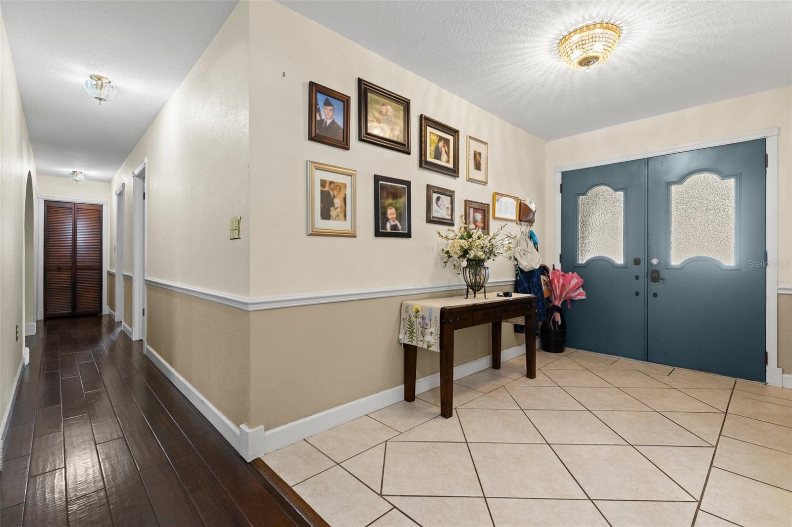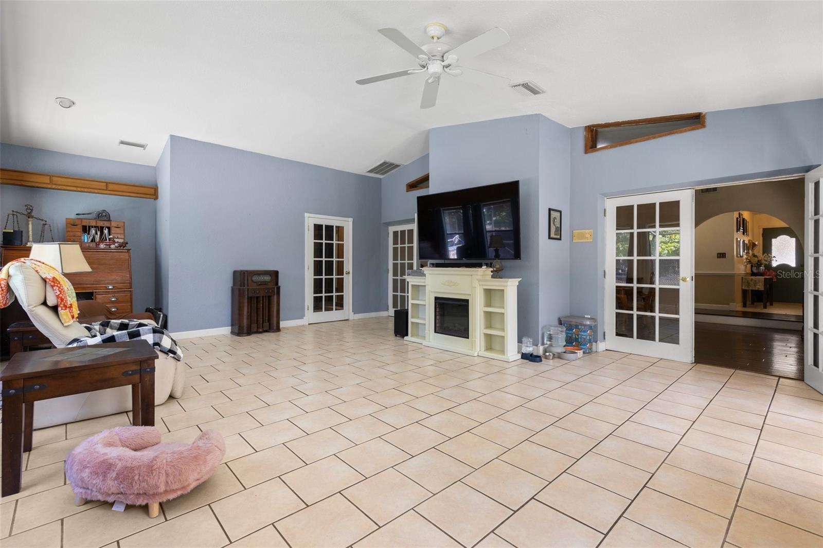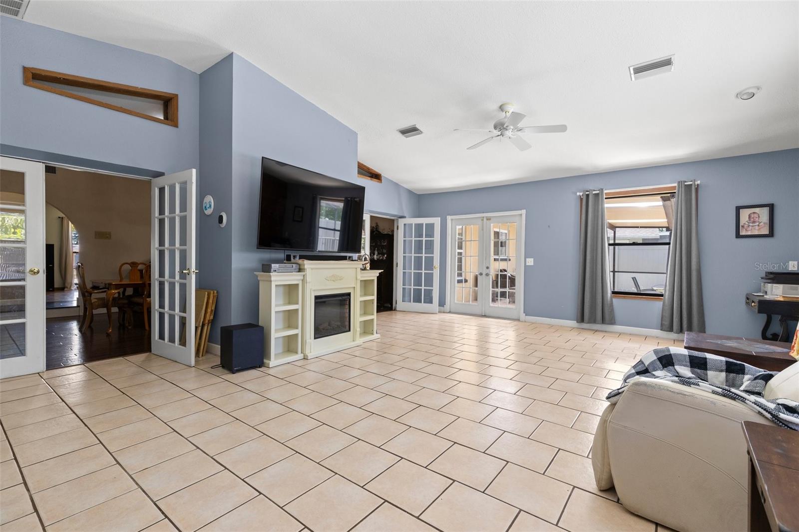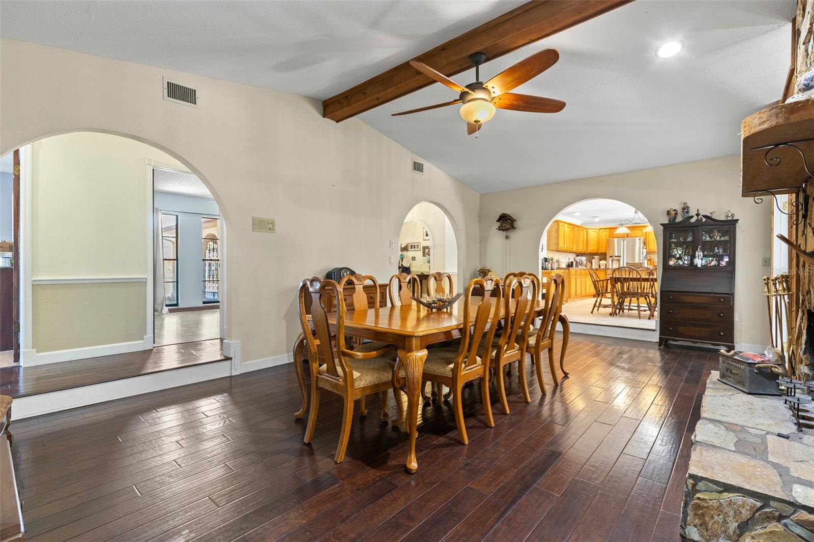 Under contract-accepting backup offers. Spacious Pool Home! This home is an absolute gem. Large, spacious rooms with an abundance of natural light. The light filled living room with electric fireplace opens up to an enormous screened in patio with a beautiful sparkling swimming pool. The huge kitchen is made for large gatherings with an abundance of cabinet and counterspace. The large dining room has a lovely stone wood burning fireplace. The primary bedroom has an updated en-suite bathroom with double vanities. There are 3 additional bedrooms and 2 additional full bathrooms. Storage is not an issue in this home with a large garage and an indoor laundry room. The fenced backyard backs up to a pond so lots of privacy with no backyard neighbors. NO HOA or CDD required. NO flood insurance required. Schedule your showing today to see this lovely home.