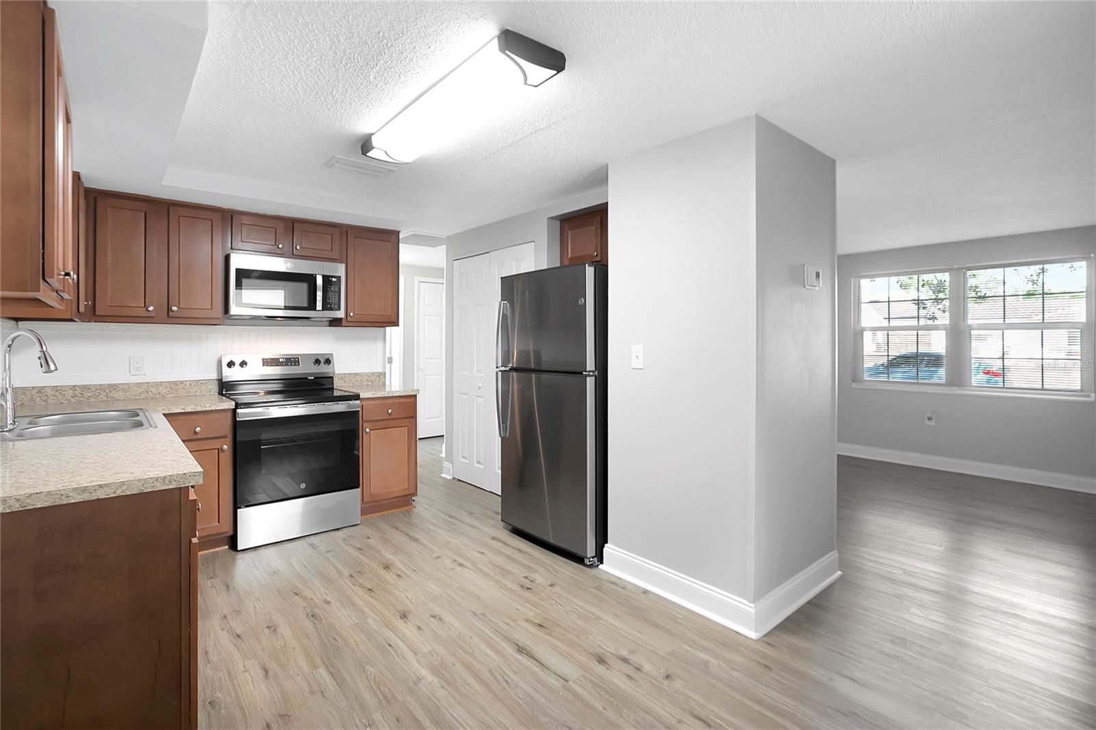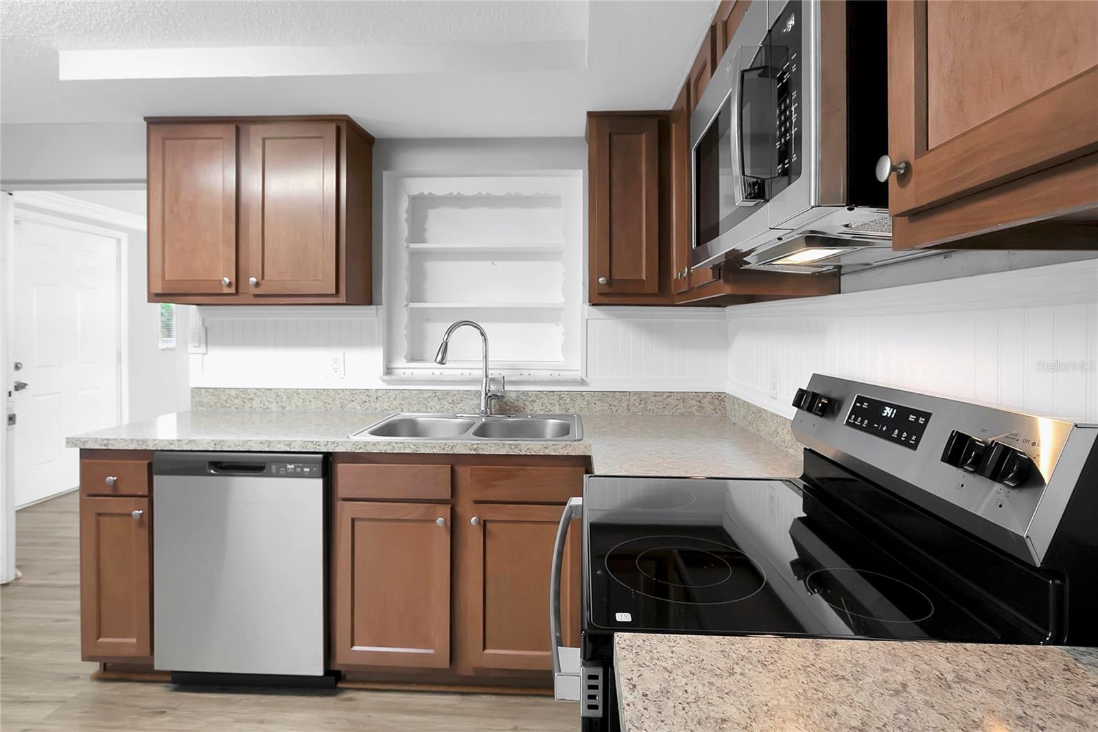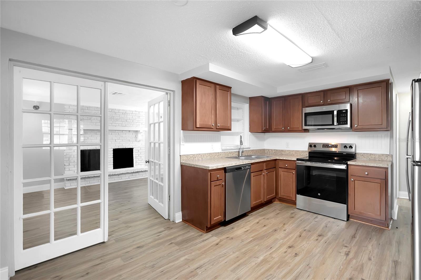 TASTEFULLY UPDATED DREAM HOME! Open floor plan, many NEW updates! NEW ROOF AND NEW AC IN THE PAST 3 YEARS!!! Fresh Paint inside and out!! The cook in your home will appreciate the updated kitchen featuring custom cabinets, countertops and a Brand New Stainless Steel appliance package. The large open floor plan makes this home great for entertaining. Bathroom has been fully updated with new vanity, updated lighting and plumbing fixtures. New life lock waterproof and ceramic tile flooring throughout. Great curb appeal and beautiful interior make this home move in ready! The back room with a fireplace can be used as a 3rd bedroom with closet or extra living space. Low Taxes and No HOA make this an affordable option!