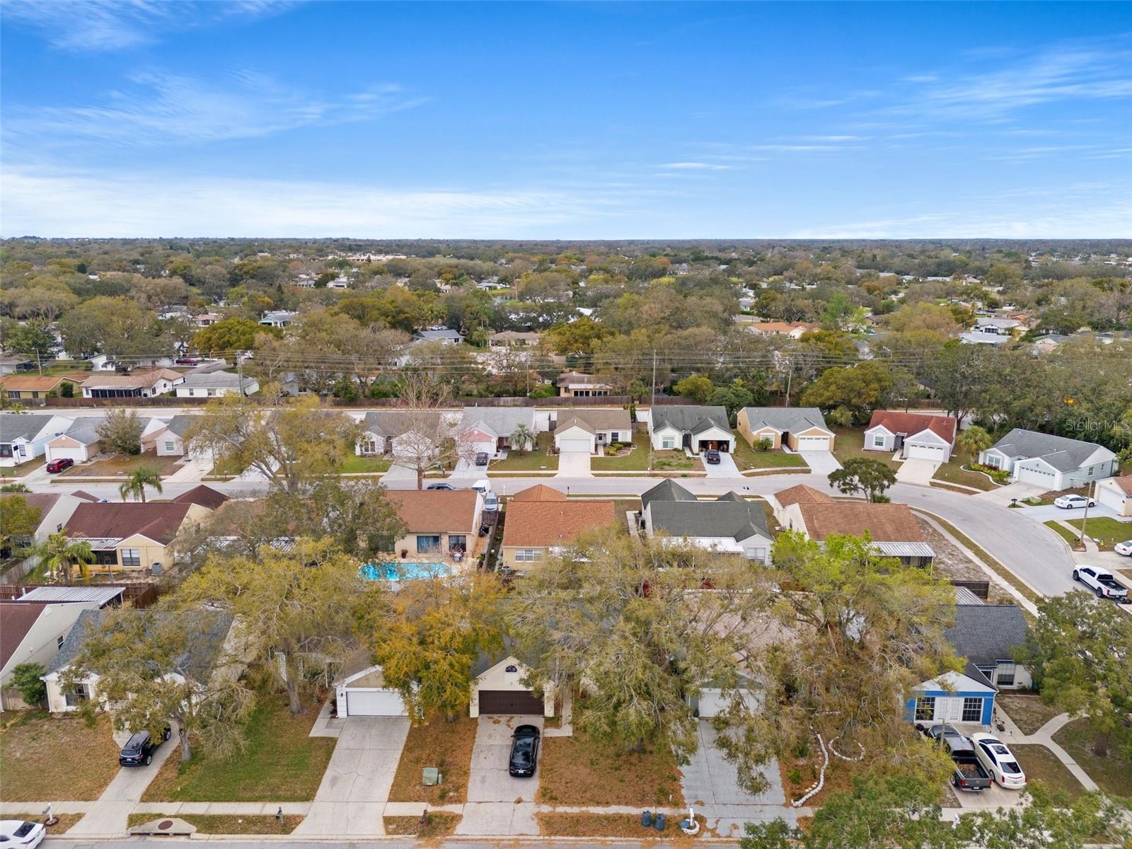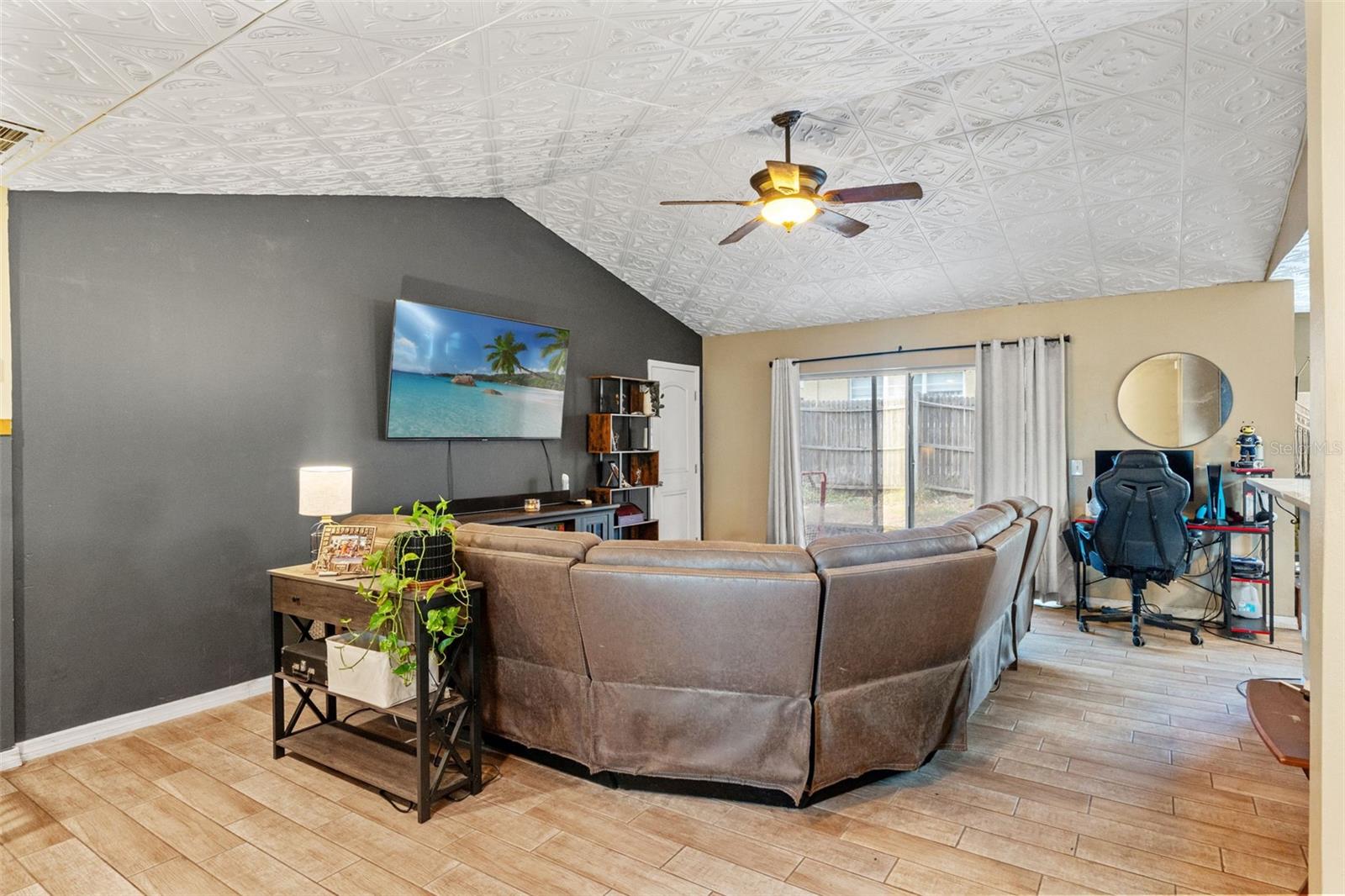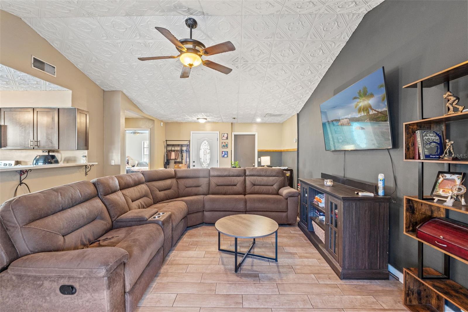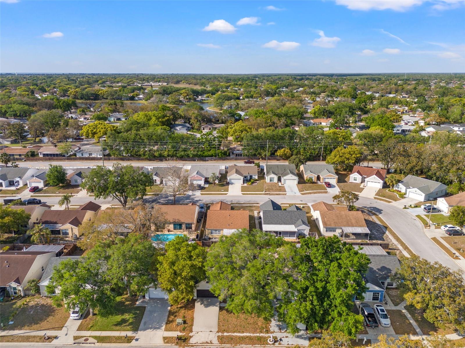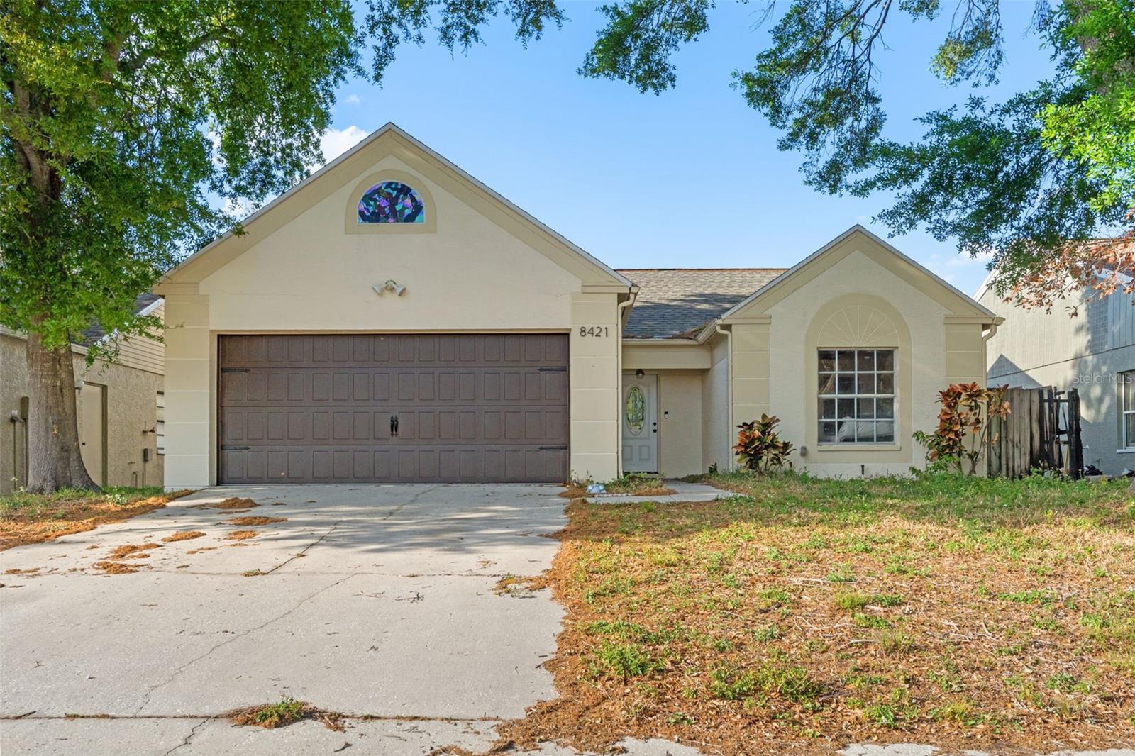 Welcome to this 2-bedroom, 2-bath, 2-car garage home in the highly desirable Jasmine Trails neighborhood! Step through the new front door into a bright and open family room, highlighted by stunning decorative tiled cathedral ceilings. The kitchen and family room seamlessly connect, creating an inviting space with a breakfast bar for casual dining. The kitchen features an abundance of storage, tiled flooring, granite countertops, and stainless steel appliances. Adjacent to the kitchen, the dining area boasts an oversized window, filling the space with natural light. The primary suite is a true retreat, featuring a large walk-in closet with stylish barn doors. The luxurious en-suite bathroom showcases dual sinks, and a spacious tiled shower. The second bedroom is generously sized with a front-facing window and a herringbone tile floor design. A large guest bath serves this room, complementing the home's well-planned layout. Throughout the home, you'll find 7''x 30'' wood-look porcelain tile. Outside, enjoy the screened lanai leading to a beautifully landscaped, fenced backyard with unique brick walkways and a firepit—perfect for relaxing or entertaining. The lush St. Augustine lawn adds to the home's curb appeal. The home features a 2020 roof, 2021 water heater, and a 2021 air handler. An added bonus—this home offers an assumable VA loan at an attractive 4.25% interest rate, making it an exceptional opportunity for qualified buyers. Ideally located just three homes away from the community pool and clubhouse, residents also have access to shuffleboard and RV/boat storage. Conveniently close to shopping, dining, and just 45 minutes to Tampa International Airport or 30 minutes to stunning Florida beaches. Don't miss this move-in-ready gem—schedule your showing today!
