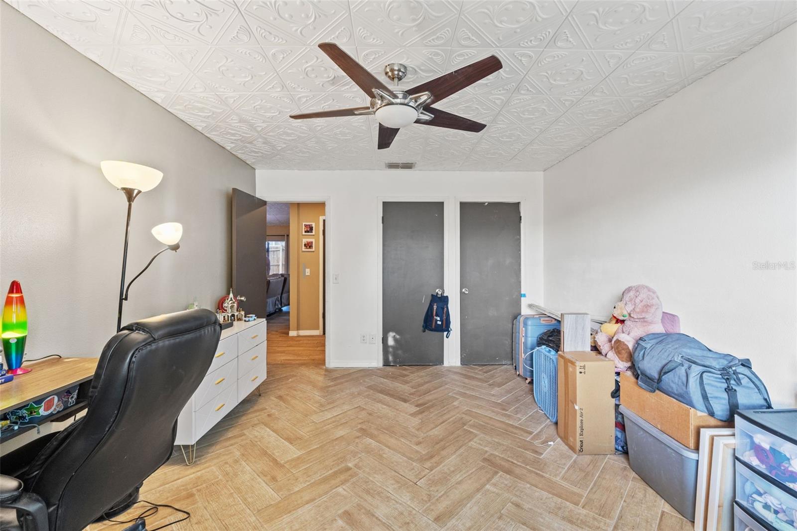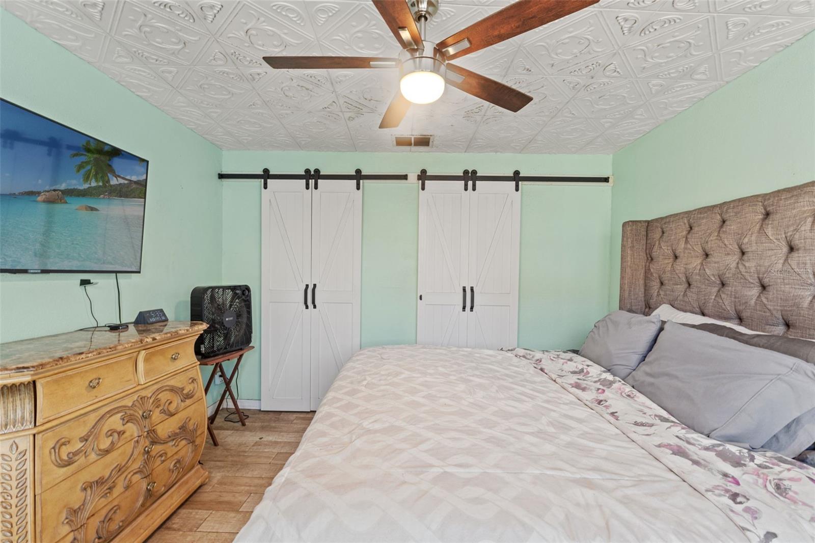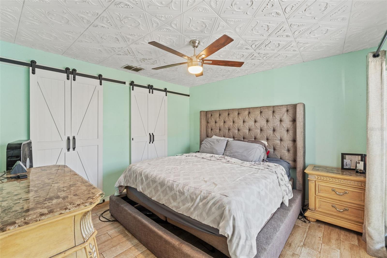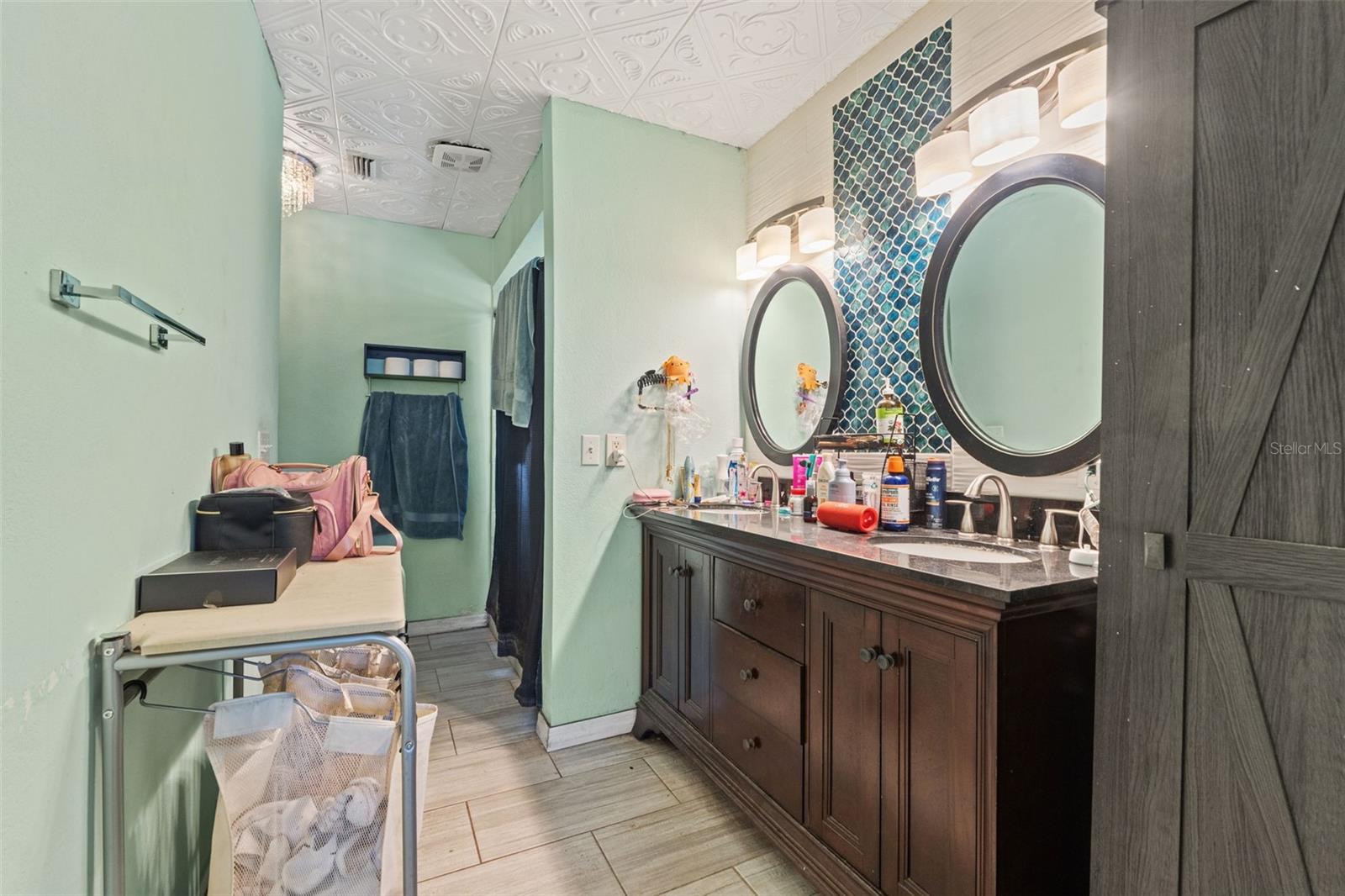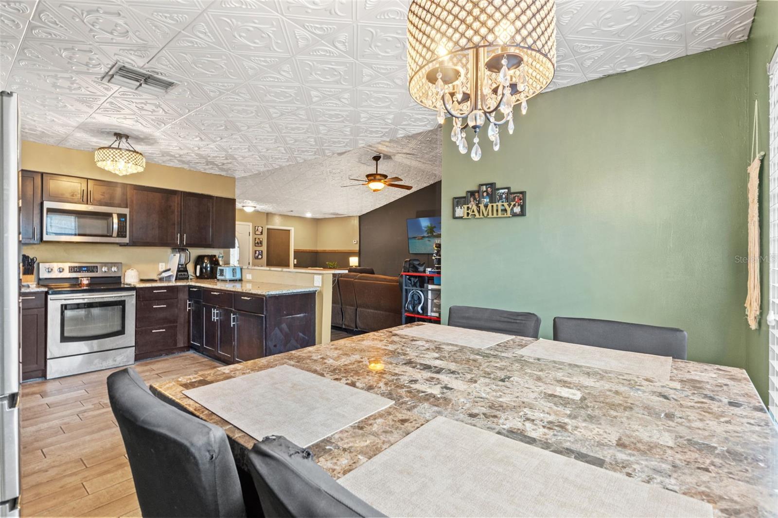 Welcome to this 2-bedroom, 2-bath, 2-car garage home in the highly desirable Jasmine Trails neighborhood! Step through the new front door into a bright and open family room, highlighted by stunning decorative tiled cathedral ceilings. The kitchen and family room seamlessly connect, creating an inviting space with a breakfast bar for casual dining. The kitchen features an abundance of storage, tiled flooring, granite countertops, and stainless steel appliances. Adjacent to the kitchen, the dining area boasts an oversized window, filling the space with natural light. The primary suite is a true retreat, featuring a large walk-in closet with stylish barn doors. The luxurious en-suite bathroom showcases dual sinks, and a spacious tiled shower. The second bedroom is generously sized with a front-facing window and a herringbone tile floor design. A large guest bath serves this room, complementing the home's well-planned layout. Throughout the home, you'll find 7''x 30'' wood-look porcelain tile. Outside, enjoy the screened lanai leading to a beautifully landscaped, fenced backyard with unique brick walkways and a firepit—perfect for relaxing or entertaining. The lush St. Augustine lawn adds to the home's curb appeal. The home features a 2020 roof, 2021 water heater, and a 2021 air handler. An added bonus—this home offers an assumable VA loan at an attractive 4.25% interest rate, making it an exceptional opportunity for qualified buyers. Ideally located just three homes away from the community pool and clubhouse, residents also have access to shuffleboard and RV/boat storage. Conveniently close to shopping, dining, and just 45 minutes to Tampa International Airport or 30 minutes to stunning Florida beaches. Don't miss this move-in-ready gem—schedule your showing today!