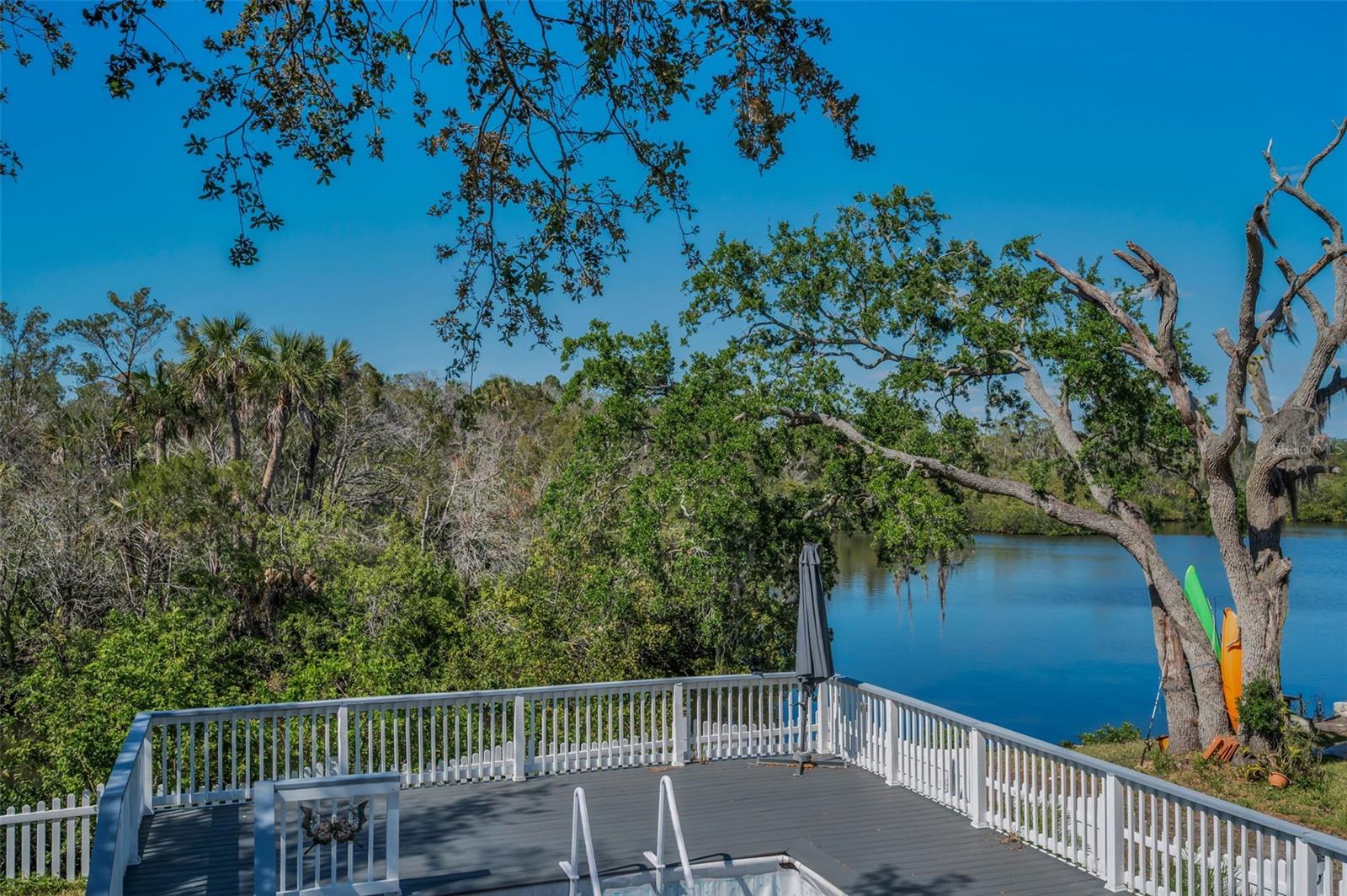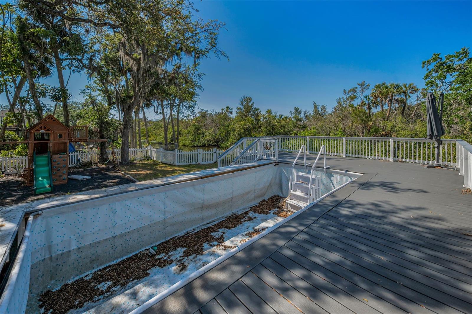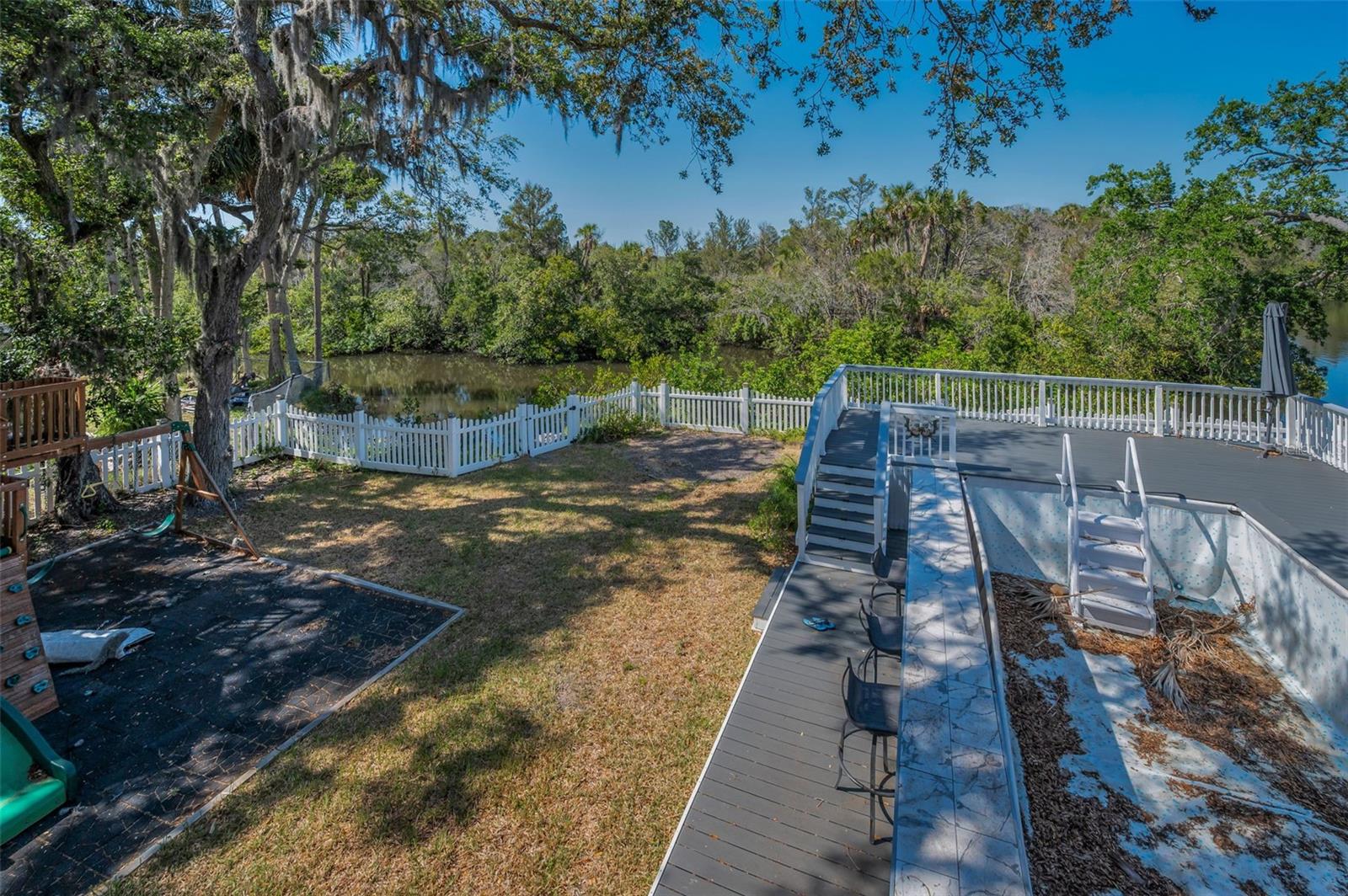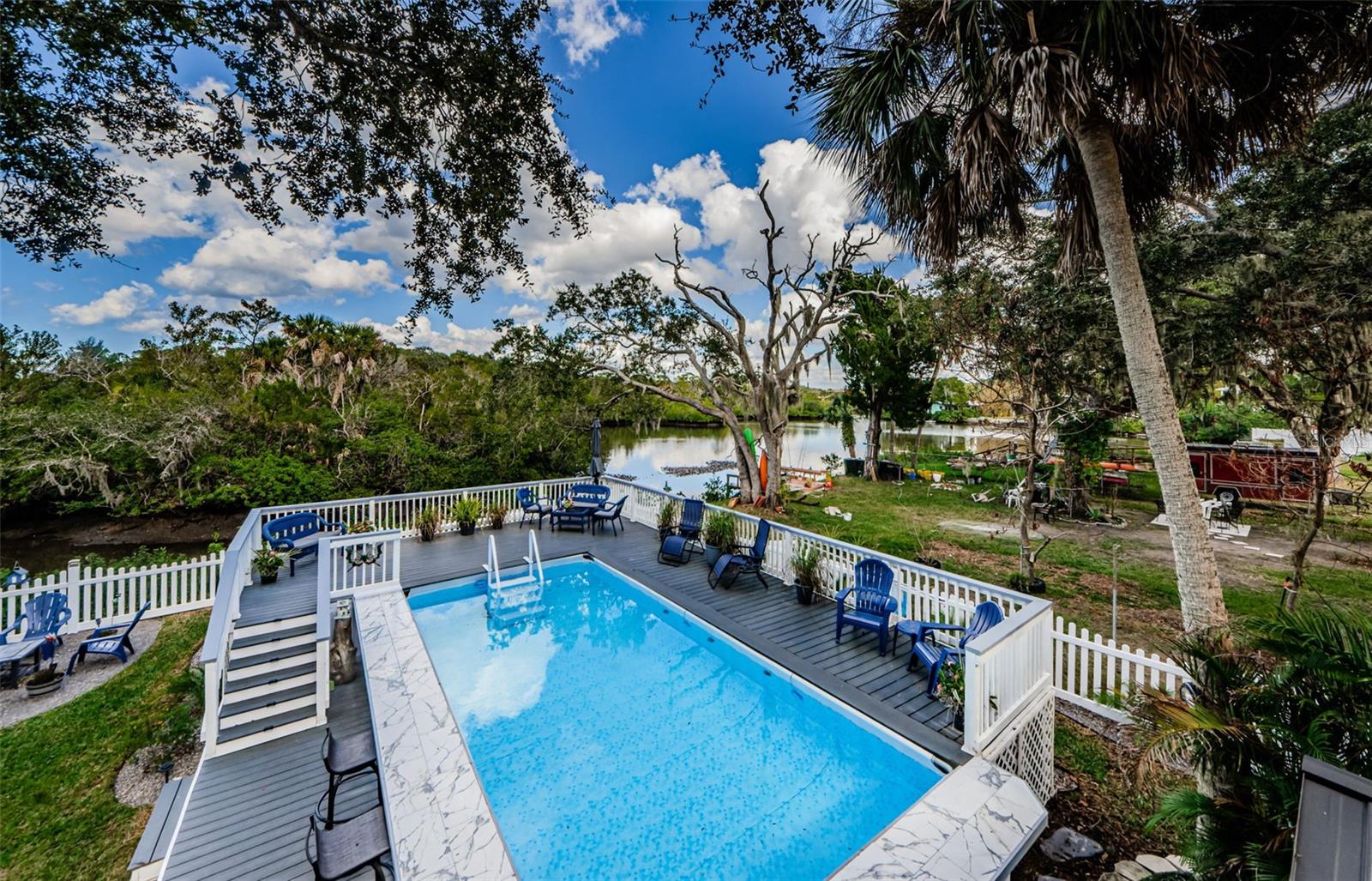 Short Sale. INVESTOR SPECIAL! Cash Only! NO SIGHT UNSEEN OFFERS! This waterfront home in Port Richey was unfortunately damaged by Hurricane Helene and has visible damage. It sits on a quiet bayou with mangrove views and direct kayak access from the backyard—manatees, dolphins, redfish, and all kinds of wildlife are regulars here. The neighborhood is golf cart–friendly and close to local restaurants, bars, and parks. Roof 2024 Prior to Hurricane. The oversized primary bedroom has its own private balcony overlooking the canal and above ground pool, and there's a large screened-in patio below for outdoor living. Some features already in place include newer hurricane-rated windows downstairs, smooth ceilings, updated doors, newer kitchen lighting and backsplash, and a built-in pantry. Upstairs has newer carpet, a renovated bath with a barn door, and a new water heater. TREX decking was used on the upper balcony and back pool area. Outside you'll find newer sod, flower beds, full landscaping, a third gravel driveway, and all-new gutters with guards. The fenced backyard includes a pool deck, covered gazebo bar, and BBQ area—all with TREX composite decking. The home needs work, but the location and layout offer a ton of upside for someone ready to bring it back to life. Before and after photos attached. Zoned A/C 2002 & 2015. Water Heaters 2023 & 2022.