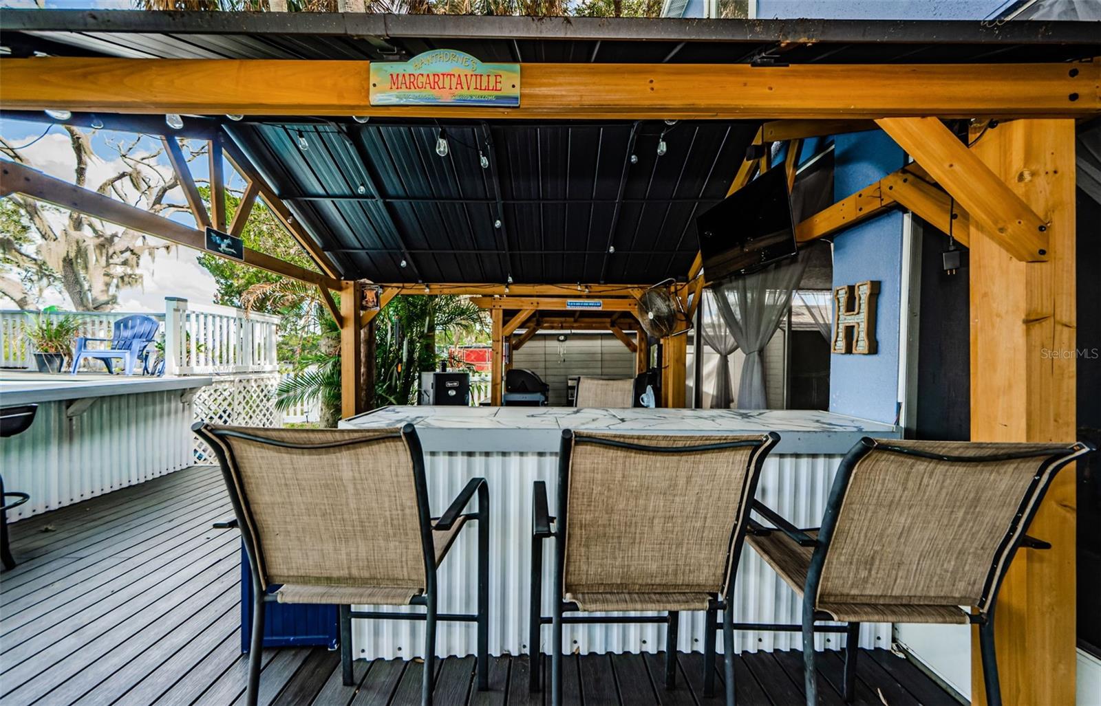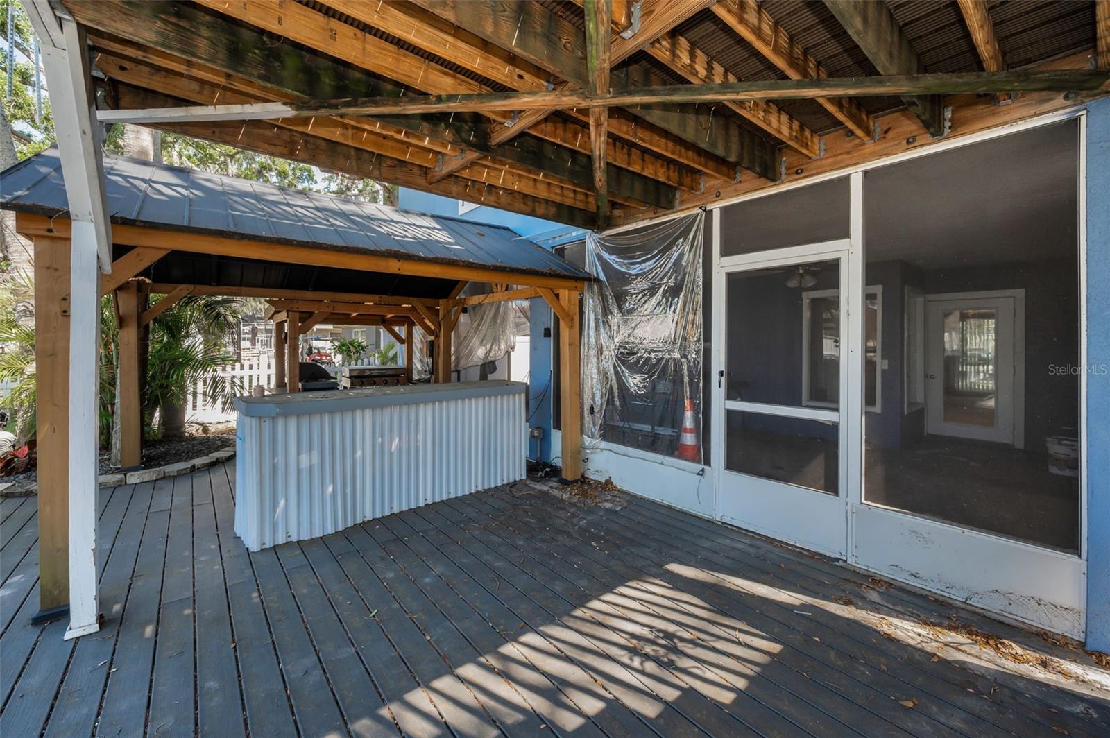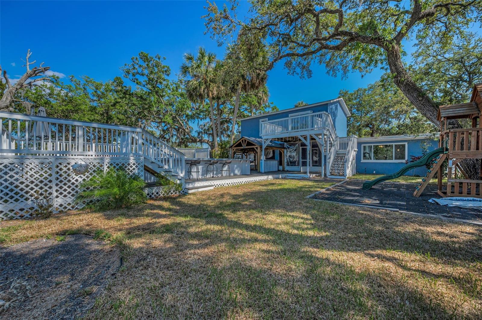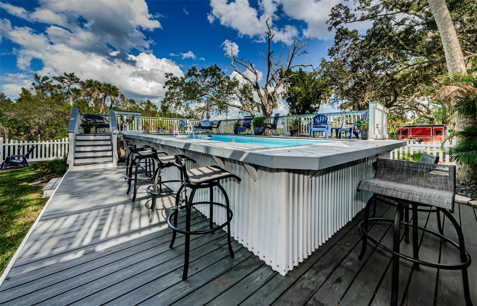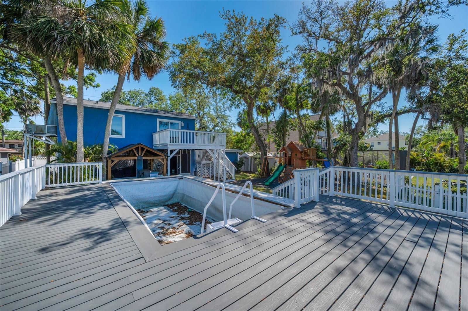 Short Sale. INVESTOR SPECIAL! Cash Only! NO SIGHT UNSEEN OFFERS! This waterfront home in Port Richey was unfortunately damaged by Hurricane Helene and has visible damage. It sits on a quiet bayou with mangrove views and direct kayak access from the backyard—manatees, dolphins, redfish, and all kinds of wildlife are regulars here. The neighborhood is golf cart–friendly and close to local restaurants, bars, and parks. Roof 2024 Prior to Hurricane. The oversized primary bedroom has its own private balcony overlooking the canal and above ground pool, and there's a large screened-in patio below for outdoor living. Some features already in place include newer hurricane-rated windows downstairs, smooth ceilings, updated doors, newer kitchen lighting and backsplash, and a built-in pantry. Upstairs has newer carpet, a renovated bath with a barn door, and a new water heater. TREX decking was used on the upper balcony and back pool area. Outside you'll find newer sod, flower beds, full landscaping, a third gravel driveway, and all-new gutters with guards. The fenced backyard includes a pool deck, covered gazebo bar, and BBQ area—all with TREX composite decking. The home needs work, but the location and layout offer a ton of upside for someone ready to bring it back to life. Before and after photos attached. Zoned A/C 2002 & 2015. Water Heaters 2023 & 2022.