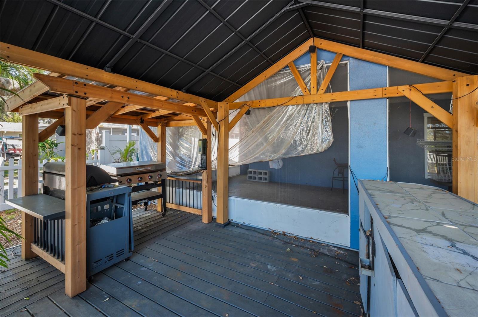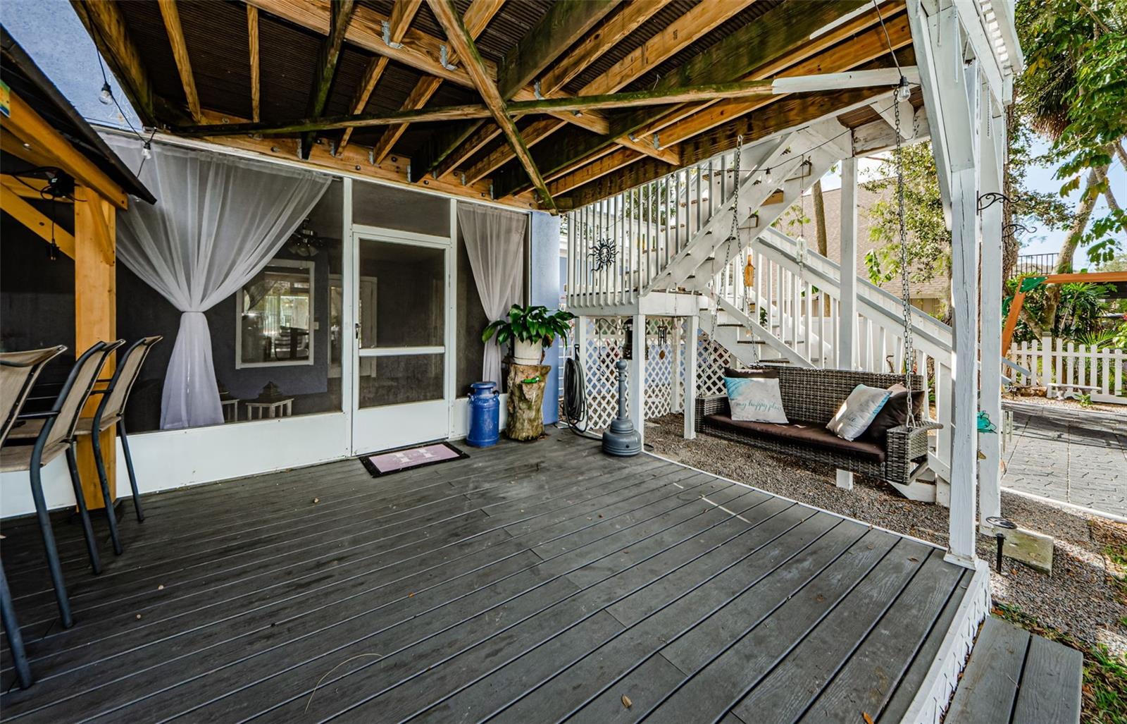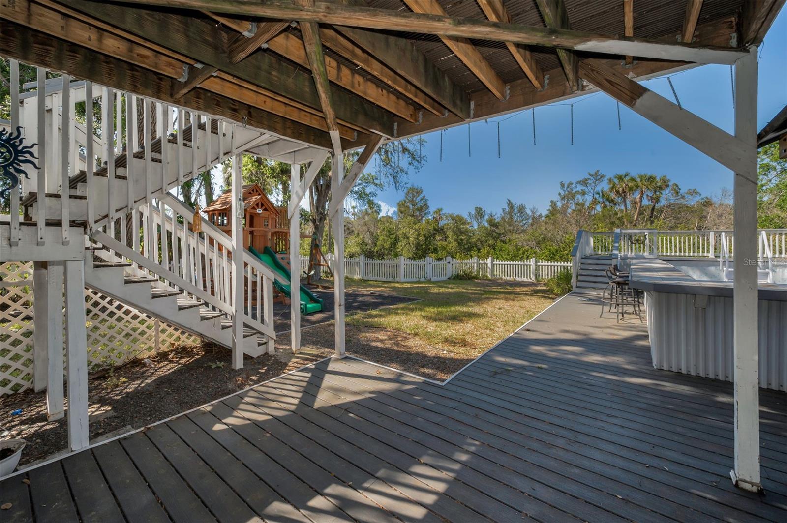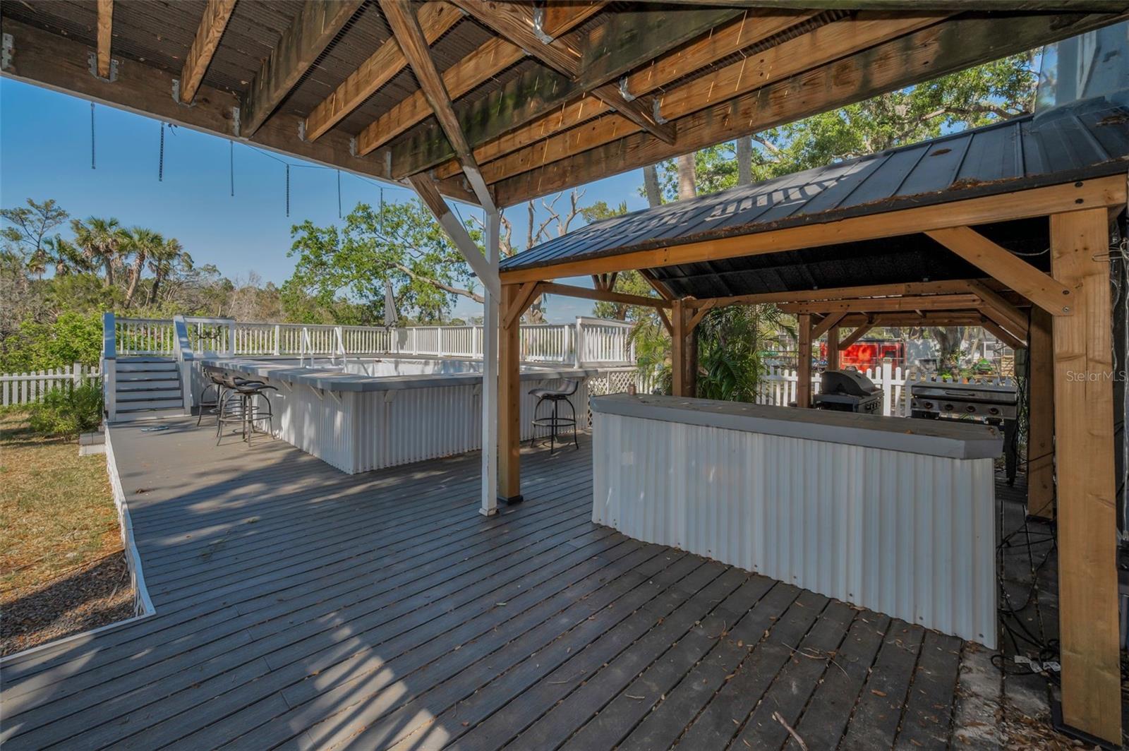 Short Sale. INVESTOR SPECIAL! Cash Only! NO SIGHT UNSEEN OFFERS! This waterfront home in Port Richey was unfortunately damaged by Hurricane Helene and has visible damage. It sits on a quiet bayou with mangrove views and direct kayak access from the backyard—manatees, dolphins, redfish, and all kinds of wildlife are regulars here. The neighborhood is golf cart–friendly and close to local restaurants, bars, and parks. Roof 2024 Prior to Hurricane. The oversized primary bedroom has its own private balcony overlooking the canal and above ground pool, and there's a large screened-in patio below for outdoor living. Some features already in place include newer hurricane-rated windows downstairs, smooth ceilings, updated doors, newer kitchen lighting and backsplash, and a built-in pantry. Upstairs has newer carpet, a renovated bath with a barn door, and a new water heater. TREX decking was used on the upper balcony and back pool area. Outside you'll find newer sod, flower beds, full landscaping, a third gravel driveway, and all-new gutters with guards. The fenced backyard includes a pool deck, covered gazebo bar, and BBQ area—all with TREX composite decking. The home needs work, but the location and layout offer a ton of upside for someone ready to bring it back to life. Before and after photos attached. Zoned A/C 2002 & 2015. Water Heaters 2023 & 2022.