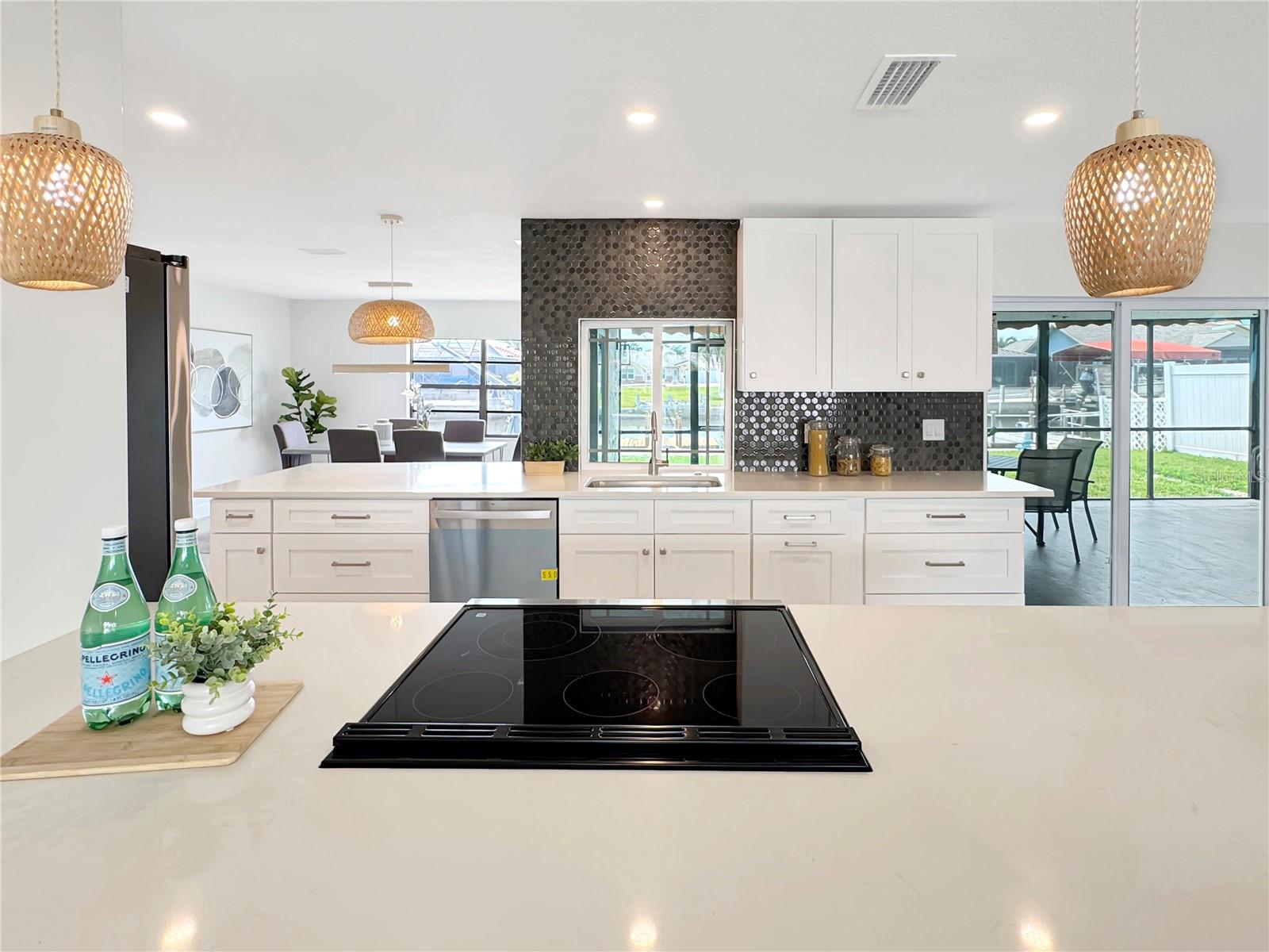 Located on a quiet cul-de-sac in the desirable West Port neighborhood of Port Richey, this fully renovated 3-bedroom, 2-bath home blends timeless Florida charm with stylish modern updates. Showcasing Mediterranean influences, it features a flat roofline, arched exterior details, and clean stucco walls, all surrounded by swaying palm trees that enhance its warm, coastal appeal. Inside, you’ll find an open-concept layout filled with natural lighting thanks to large windows throughout. The beautifully designed kitchen includes two quartz peninsulas, a full suite of brand-new GE appliances, and both formal and informal dining spaces—perfect for everyday living or entertaining. Step outside and enjoy the ultimate Florida lifestyle with your own private dock, boat lift, and canal access to the Gulf. Whether you’re relaxing outdoors or heading out on the water, this home delivers comfort, style, and connection to nature. All just minutes from local shops, restaurants, and everything the vibrant Port Richey community has to offer.