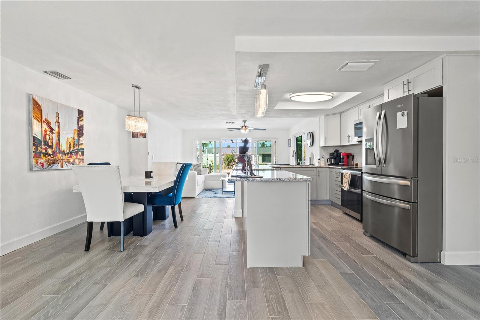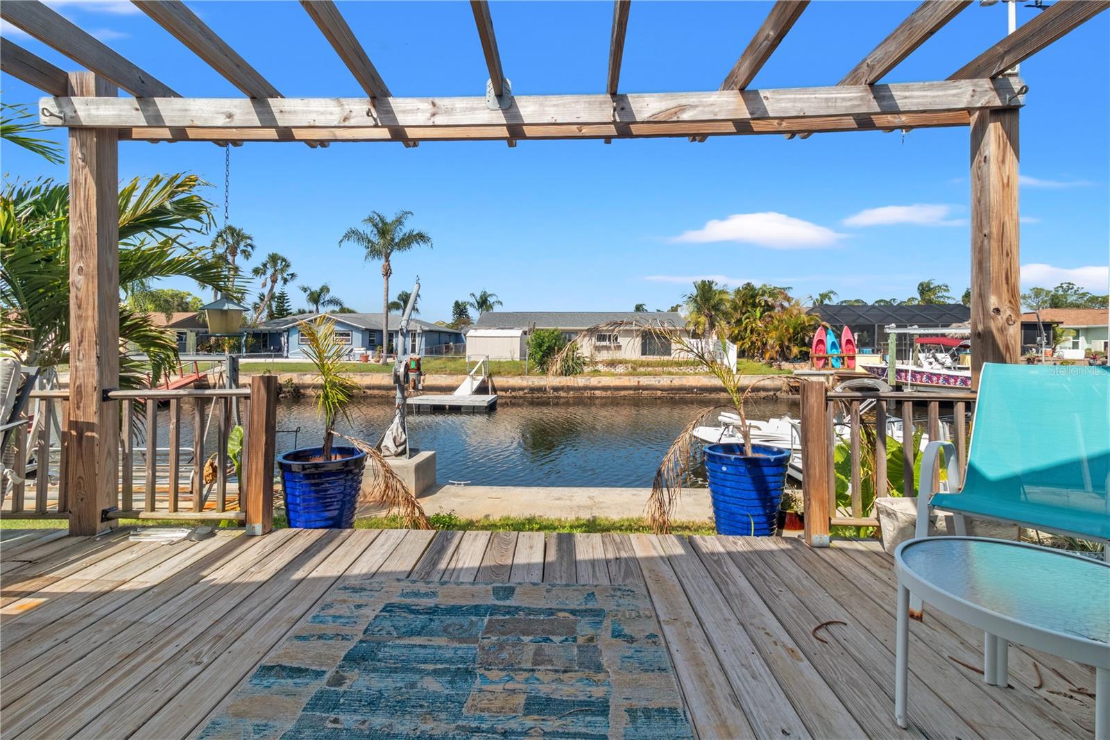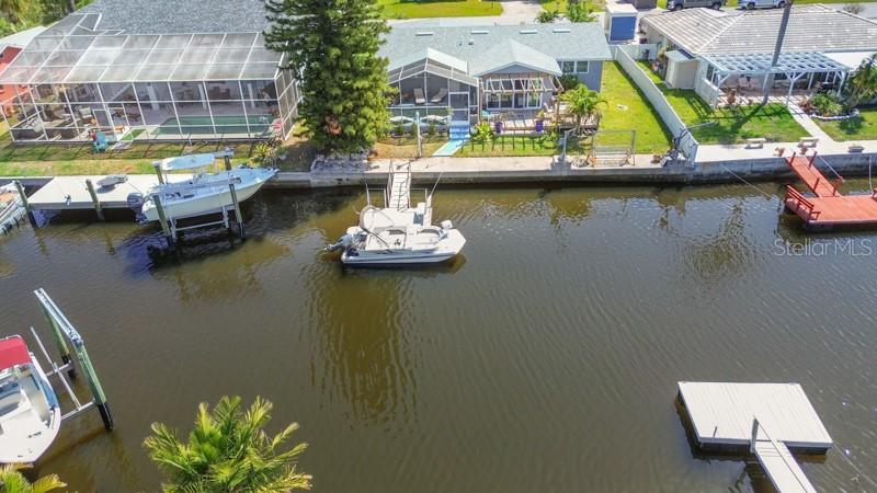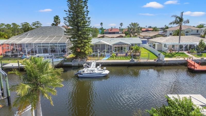 PRICE IMPROVEMENT! This very desired newly renovated split ranch 2 bedroom, 2 bath open floor plan home is situated on a deep-water canal with direct access to the vast Gulf of Mexico, ideal for kayaking and watercraft adventures. Ceramic tile throughout the home gives a very polished look and feel. For those seeking urban adventures, Tampa is just an hour's drive away, offering professional sporting events, beaches, and tourist attractions. The Primary Suite has its own bath & walk in closet. The laundry closet is conveniently located in the additional walk in closet. Primary Bath has been updated and leads out to the pool. Brand new AC unit, water heater, washer, dryer, and refrigerator all convey with property. Three separate outdoor seating areas makes for a beautiful entertaining space. Tons of great features included updated hurricane rated windows and updated doors. Electrical panel replaced 2020, full roof replaced in 2022. Floating doc was replaced in 2021. Downtown New Port Richey is just a short drive away and is lively and quaint with many restaurants, bars, shops, and Sims Park where you can enjoy one of the many special events and outdoor concerts throughout the year or stroll along the beautiful Riverwalk along the Cottee River. *Flood insurance policy is transferrable*