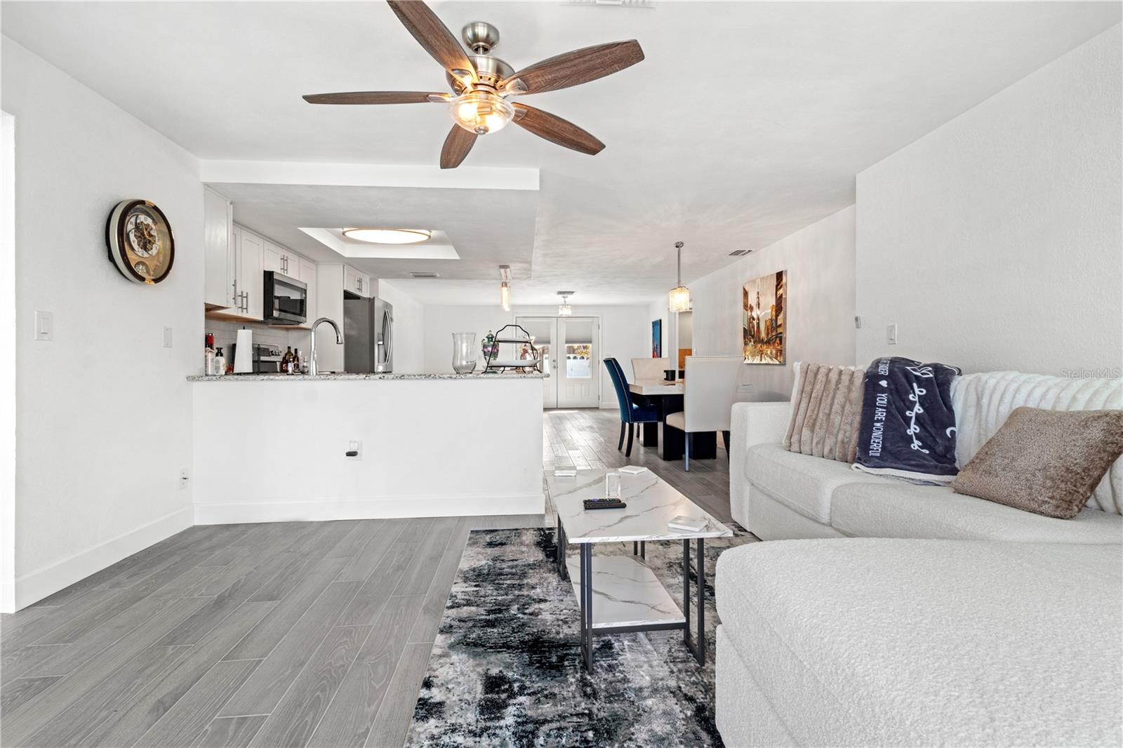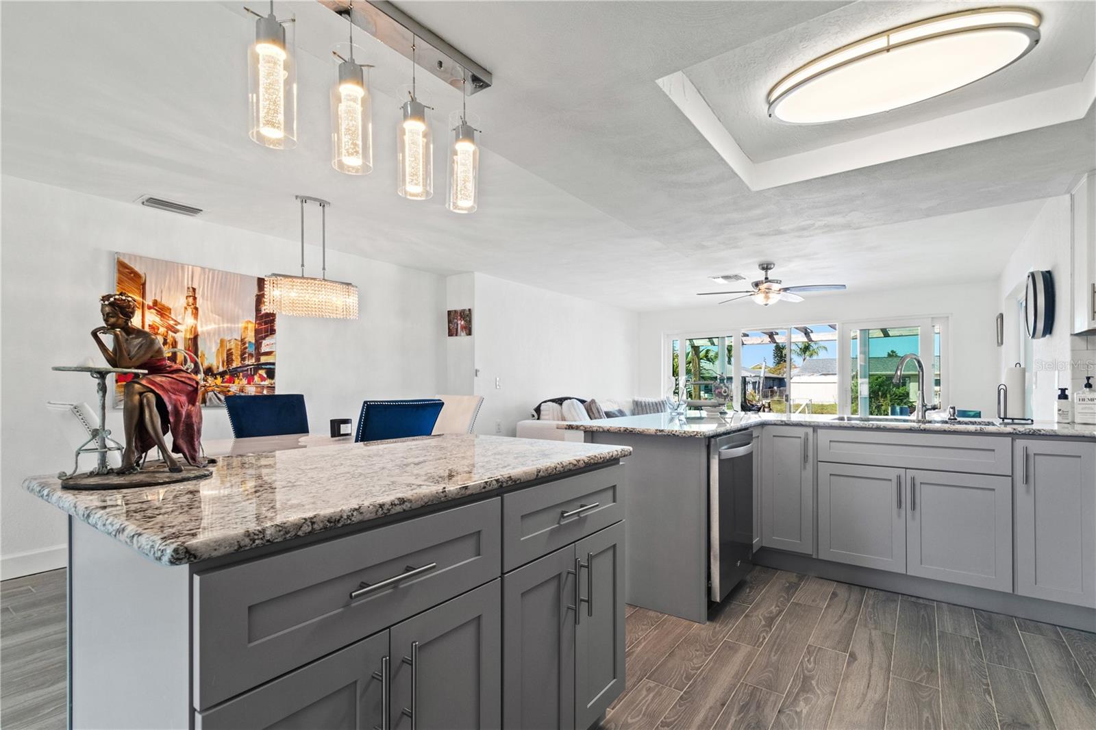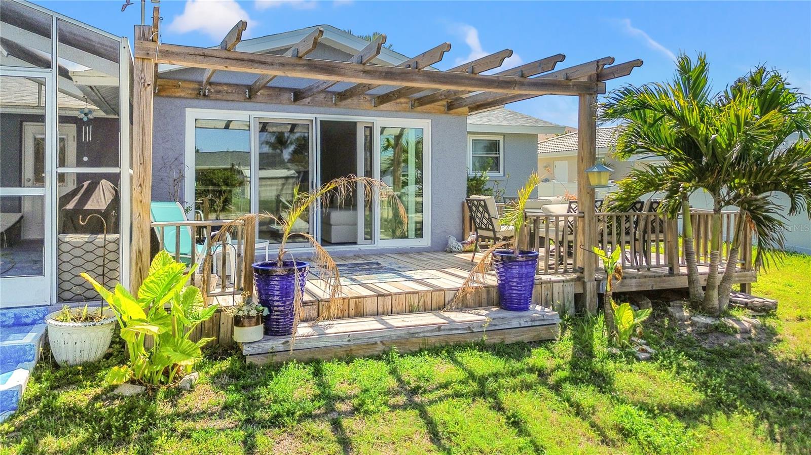 PRICE IMPROVEMENT! This very desired newly renovated split ranch 2 bedroom, 2 bath open floor plan home is situated on a deep-water canal with direct access to the vast Gulf of Mexico, ideal for kayaking and watercraft adventures. Ceramic tile throughout the home gives a very polished look and feel. For those seeking urban adventures, Tampa is just an hour's drive away, offering professional sporting events, beaches, and tourist attractions. The Primary Suite has its own bath & walk in closet. The laundry closet is conveniently located in the additional walk in closet. Primary Bath has been updated and leads out to the pool. Brand new AC unit, water heater, washer, dryer, and refrigerator all convey with property. Three separate outdoor seating areas makes for a beautiful entertaining space. Tons of great features included updated hurricane rated windows and updated doors. Electrical panel replaced 2020, full roof replaced in 2022. Floating doc was replaced in 2021. Downtown New Port Richey is just a short drive away and is lively and quaint with many restaurants, bars, shops, and Sims Park where you can enjoy one of the many special events and outdoor concerts throughout the year or stroll along the beautiful Riverwalk along the Cottee River. *Flood insurance policy is transferrable*