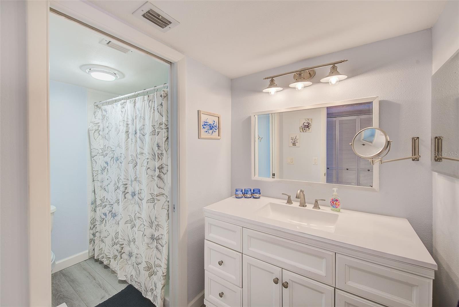 Renovated condo offering breathtaking Gulf of Mexico views from almost every room! This stunning residence has been thoughtfully updated throughout, beginning with a modern kitchen featuring sleek new cabinetry, elegant quartz countertops, and state-of-the-art appliances from trusted brands, GE and Frigidaire. The extended countertop creates a spacious breakfast bar, perfect for casual dining or entertaining. The great room opens seamlessly to the lanai, where you can enjoy uninterrupted views of the Gulf and a charming inlet often visited by playful dolphins. Luxury vinyl flooring flows throughout the home, complementing freshly painted walls, ceilings, updated woodwork, and doors to create a clean, contemporary aesthetic. The expansive primary suite offers a walk-in closet, an additional linen/storage closet, and a beautifully renovated ensuite bathroom complete with a new vanity, quartz counters, and a walk-in subway-tiled shower with modern fixtures. Wake up to serene water views through the bedroom’s large window and sliding glass doors. The comfortable front guest bedroom easily accommodates a queen-sized bed and is located adjacent to an updated guest bathroom featuring a newer vanity and resurfaced tub/shower. Additional upgrades include impact-rated windows and storm shutters on both the master window and lanai for peace of mind. This unit also includes an assigned carport and a private storage locker. Residents enjoy a wide array of amenities within this gated community, including a brand-new clubhouse with a library, fitness room, game tables, card rooms, and a variety of social clubs. Outdoor features include a waterfront boardwalk, fishing pier, community boat ramp, two pools, two cabanas with gas grills, tennis courts, and a putting green. Optional boat, RV, or kayak storage is available for a fee. Ideally located, this property provides easy access to waterfront restaurants, medical facilities, shopping centers, and the historic downtown area of New Port Richey. It’s just 20 minutes to the Tarpon Springs Sponge Docks, 45 minutes to Tampa International Airport, cruise ports, and major theme parks, and about an hour to Clearwater Beach. Several public beaches are also nearby. Please note: pets are not permitted, and there are no age restrictions. Phase 1 owners may also join a waiting list for the opportunity to purchase a boat slip. Optional turnkey furnishings are available, making this a truly move-in-ready opportunity to enjoy coastal living at its finest.