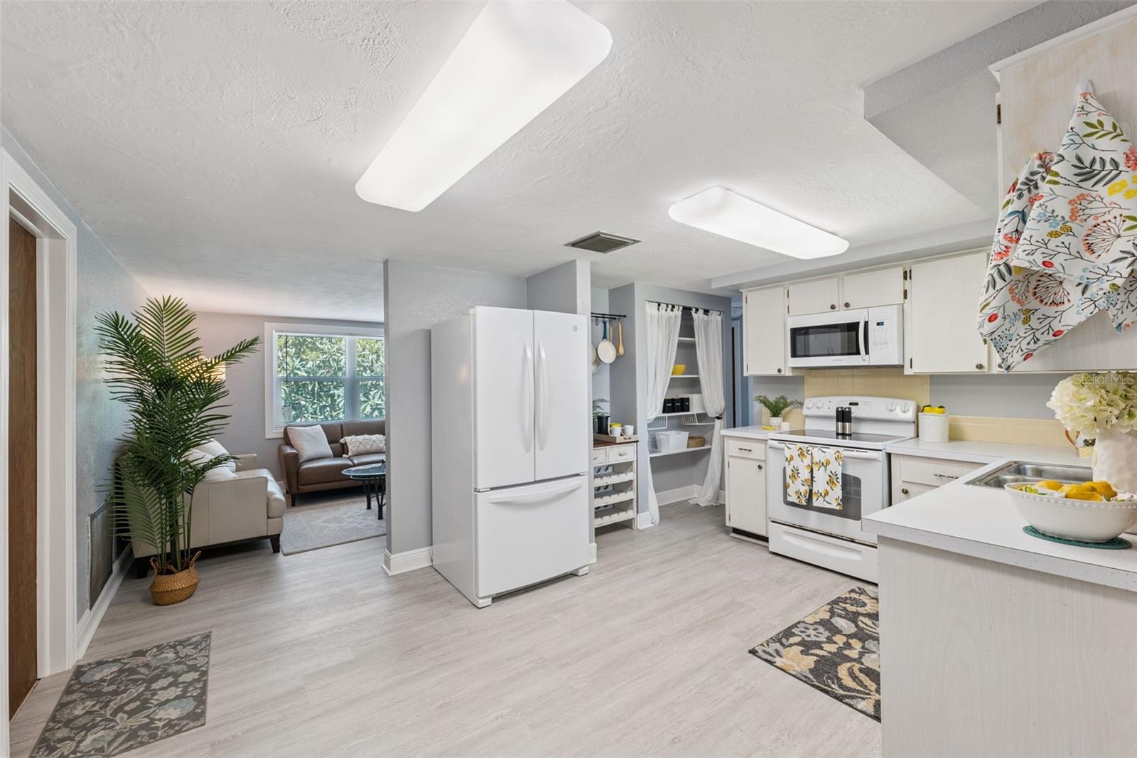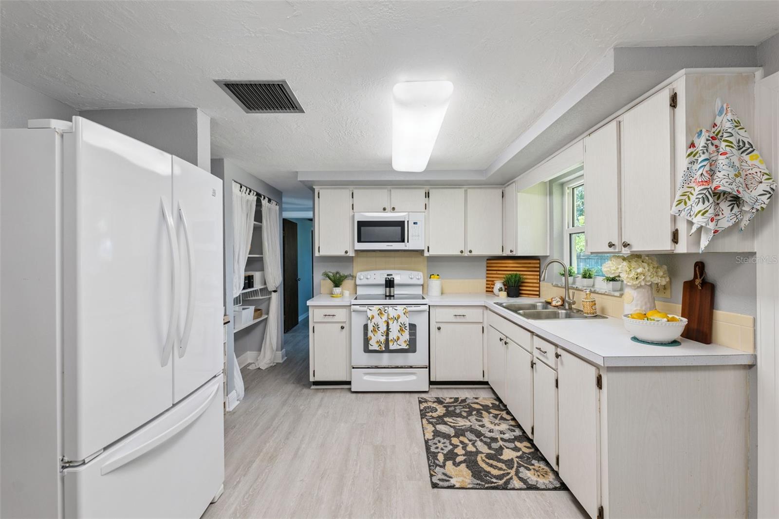 Charming, Updated & Move-In Ready! This beautifully refreshed 2 bedroom, 2 bathroom Port Richey home offers 1,201 sq ft of comfortable living space on an oversized 0.27-acre lot with NO flood insurance required. Located in Flood Zone X and equipped with hurricane impact windows, doors, and garage door, this home delivers peace of mind and potential insurance savings. Step inside to find brand-new Luxury Vinyl Plank flooring, fresh interior and exterior paint, and a welcoming layout that includes both a spacious living room and a large separate family room—perfect for entertaining or relaxing. The updated main bathroom features a modern walk-in shower, and a newly added second full bathroom includes a tub/shower combo, ideal for guests or a growing household. All toilets and faucets were replaced in 2025 for additional comfort and efficiency. The home sits on a fully fenced lot with mature oak trees, plumeria in the front yard, and a lime tree in the back. A large covered and screened patio overlooks the backyard—an ideal space for outdoor dining, pets, gardening, or even adding a pool. A private well is available for irrigation, helping keep lawn maintenance costs low. Additional features include an inside laundry room, oversized driveway, and a 1-car garage with opener. Located just minutes from Downtown New Port Richey, Sims Park, shopping, and dining, this home offers the perfect blend of convenience and comfort. Whether you’re a first-time homebuyer, downsizer, snowbird, or investor, this move-in ready property is an excellent opportunity in a desirable, no-HOA neighborhood. Welcome home to 7730 Chapel Ave—where updates, value, and Florida lifestyle come together!