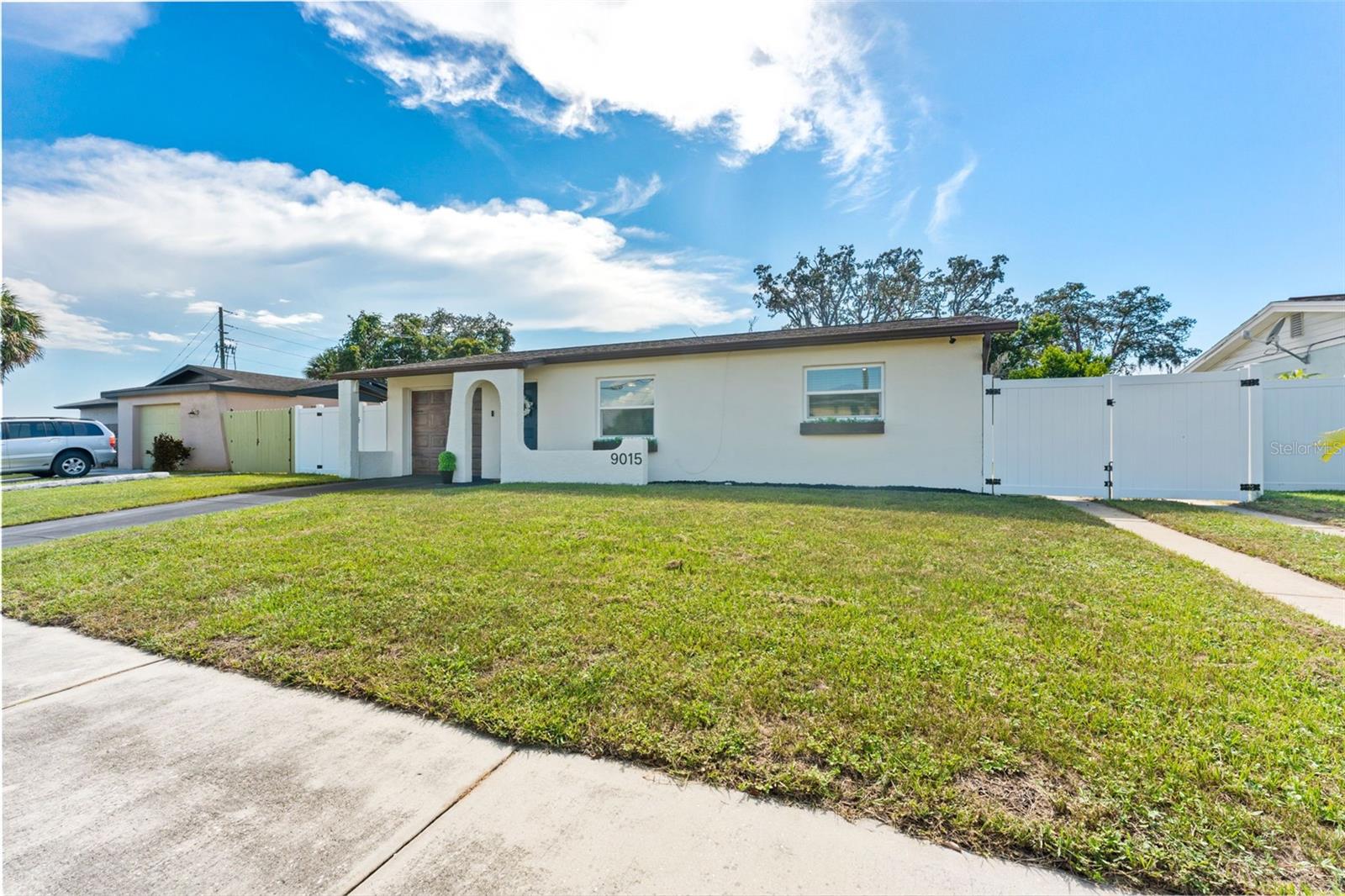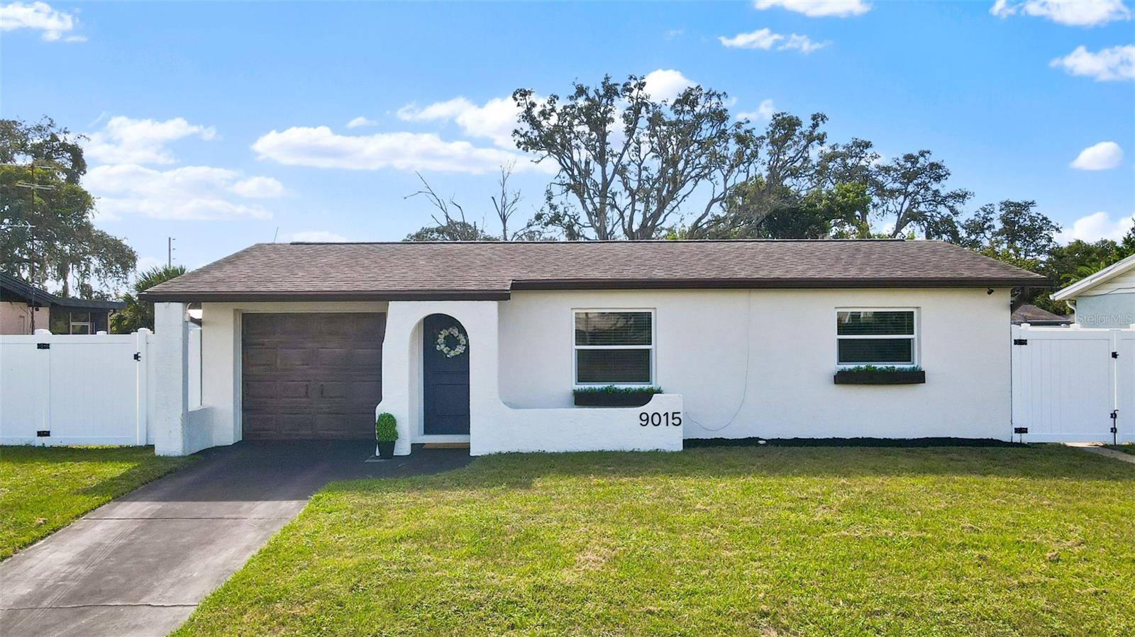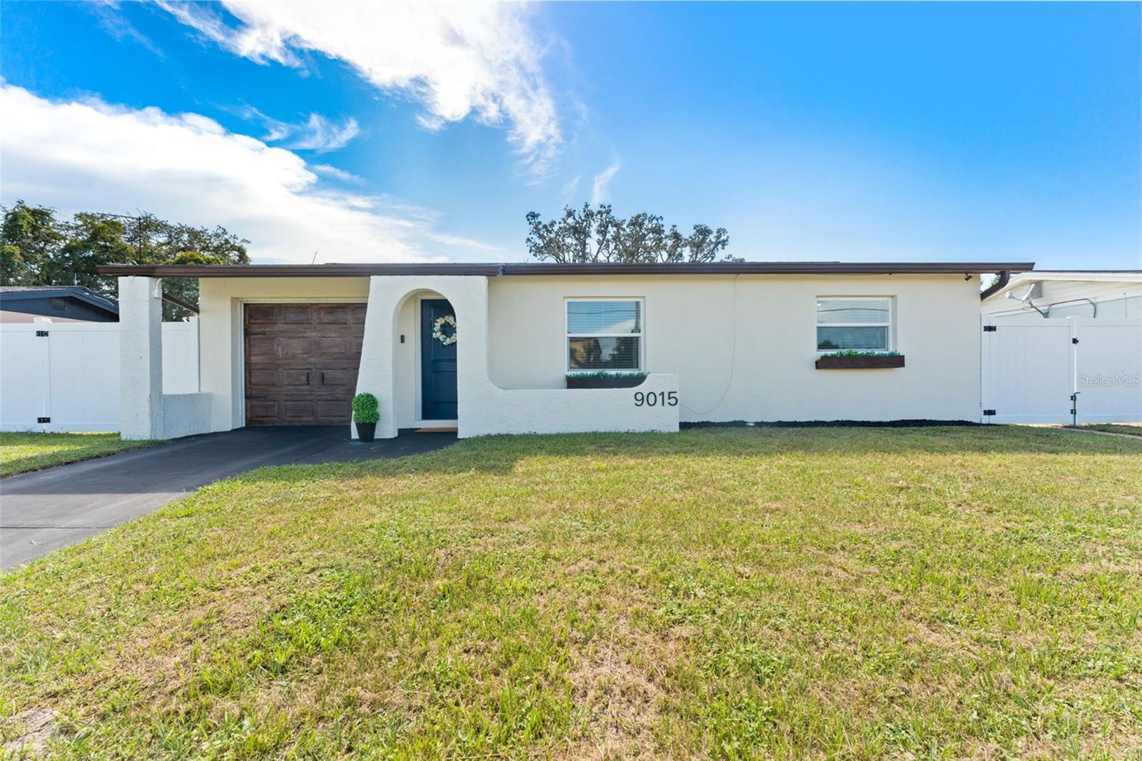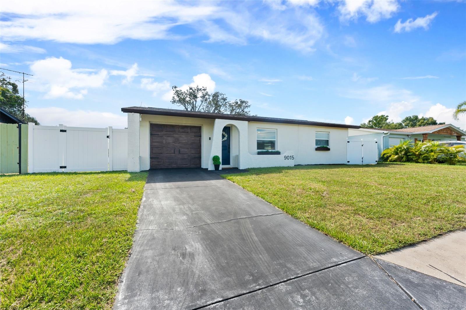 This beautifully remodeled 2-bedroom, 1-bath home with a 1-car garage offers comfort, style, and convenience. No Flood zone, no HOA, no CDD. ZERO damage from previous Hurricanes. Built in 1981, but completely updated within the last 4 years, it features an open floor plan, luxury vinyl flooring, and a remodeled kitchen with a spacious granite island and GE stainless steel appliances-including a fingerprint-resistant side-by-side refrigerator. Enjoy peace of mind with impact windows, a 14-SEER Heat Pump with new ducts, and a vinyl privacy fence with drive-through gates. The modern bathroom has luxurious tile and the bedrooms include custom built-in closets to maximize storage. Step outside to your large backyard with a patio, sparkling in-ground pool, and plenty of space to entertain including a car path big enough to park a boat or RV. Located in Port Richey, along the Gulf Coast, which is celebrated for its spectacular sunsets and abundant outdoor recreation convenient to restaurants, shopping, and even the water! Everything is fresh, modern, and designed for easy living just bring your suitcase!