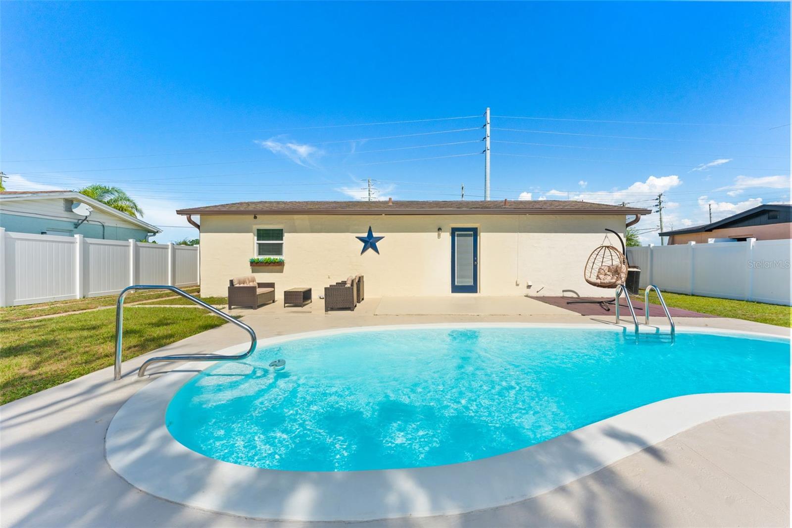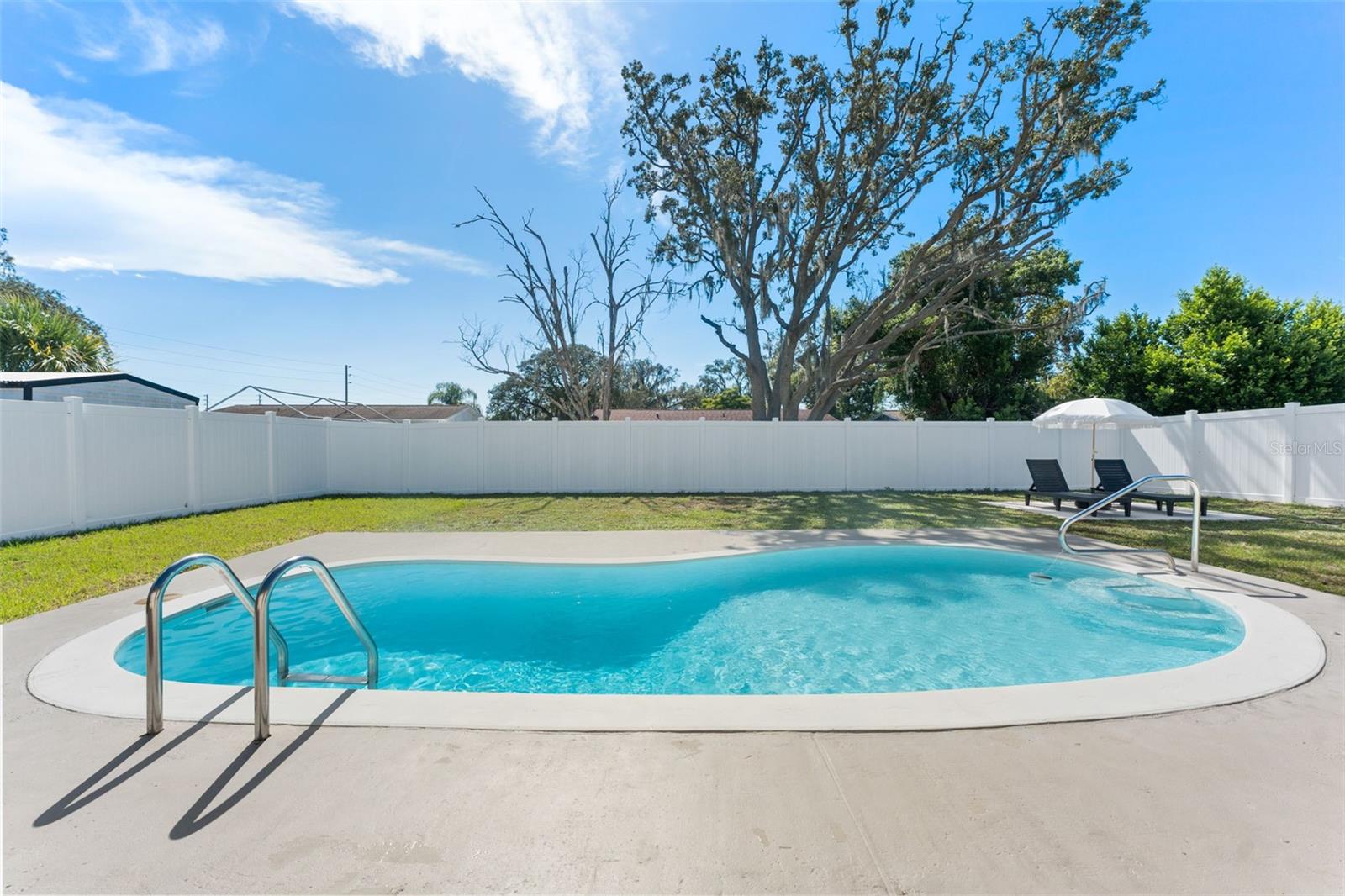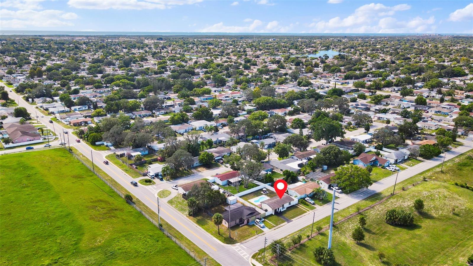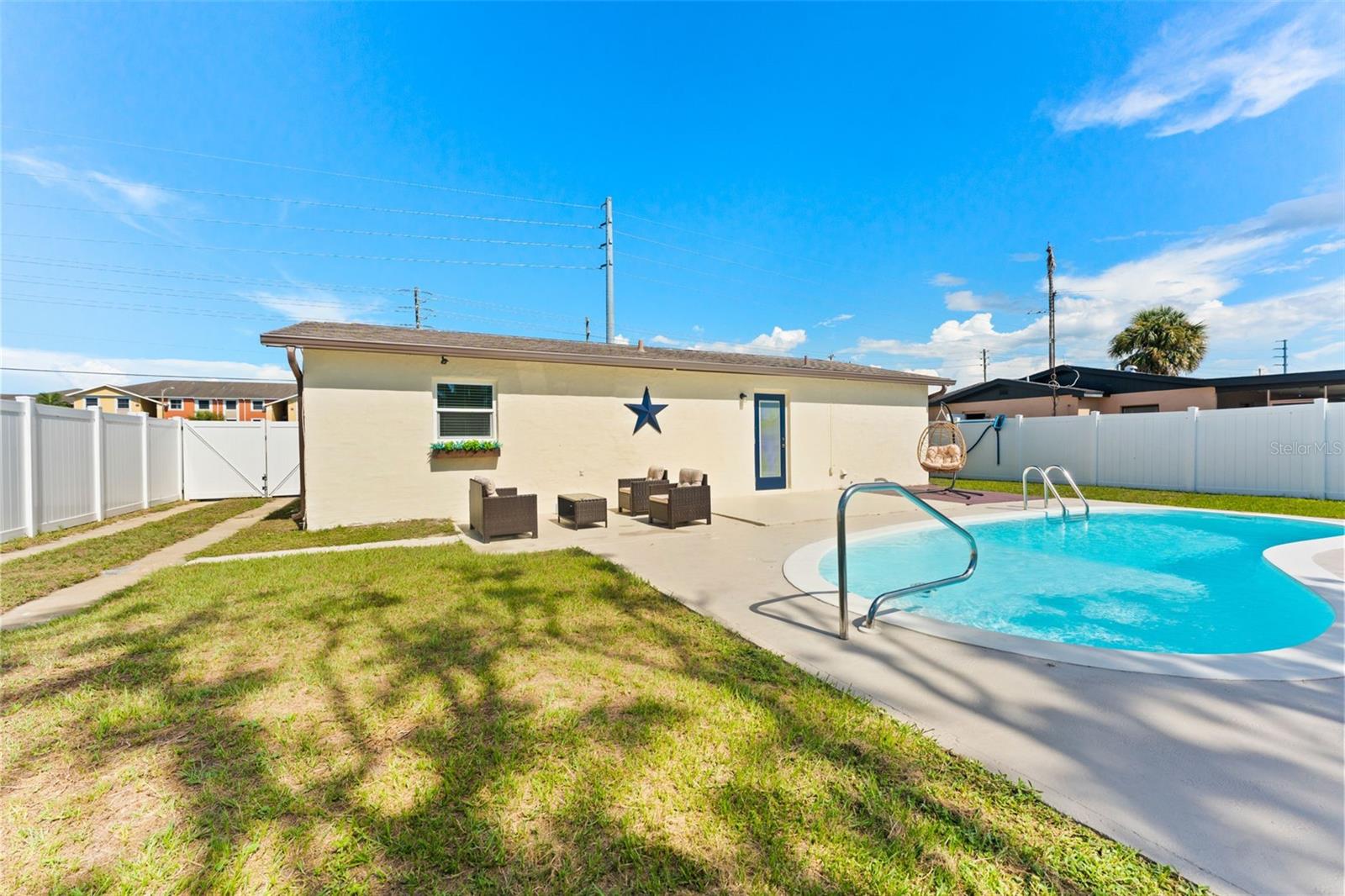 This beautifully remodeled 2-bedroom, 1-bath home with a 1-car garage offers comfort, style, and convenience. No Flood zone, no HOA, no CDD. ZERO damage from previous Hurricanes. Built in 1981, but completely updated within the last 4 years, it features an open floor plan, luxury vinyl flooring, and a remodeled kitchen with a spacious granite island and GE stainless steel appliances-including a fingerprint-resistant side-by-side refrigerator. Enjoy peace of mind with impact windows, a 14-SEER Heat Pump with new ducts, and a vinyl privacy fence with drive-through gates. The modern bathroom has luxurious tile and the bedrooms include custom built-in closets to maximize storage. Step outside to your large backyard with a patio, sparkling in-ground pool, and plenty of space to entertain including a car path big enough to park a boat or RV. Located in Port Richey, along the Gulf Coast, which is celebrated for its spectacular sunsets and abundant outdoor recreation convenient to restaurants, shopping, and even the water! Everything is fresh, modern, and designed for easy living just bring your suitcase!