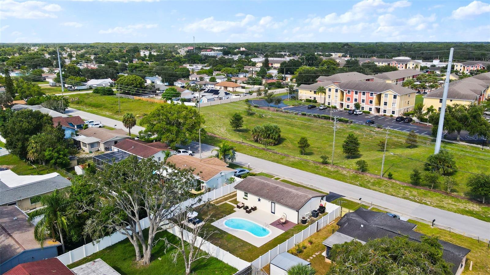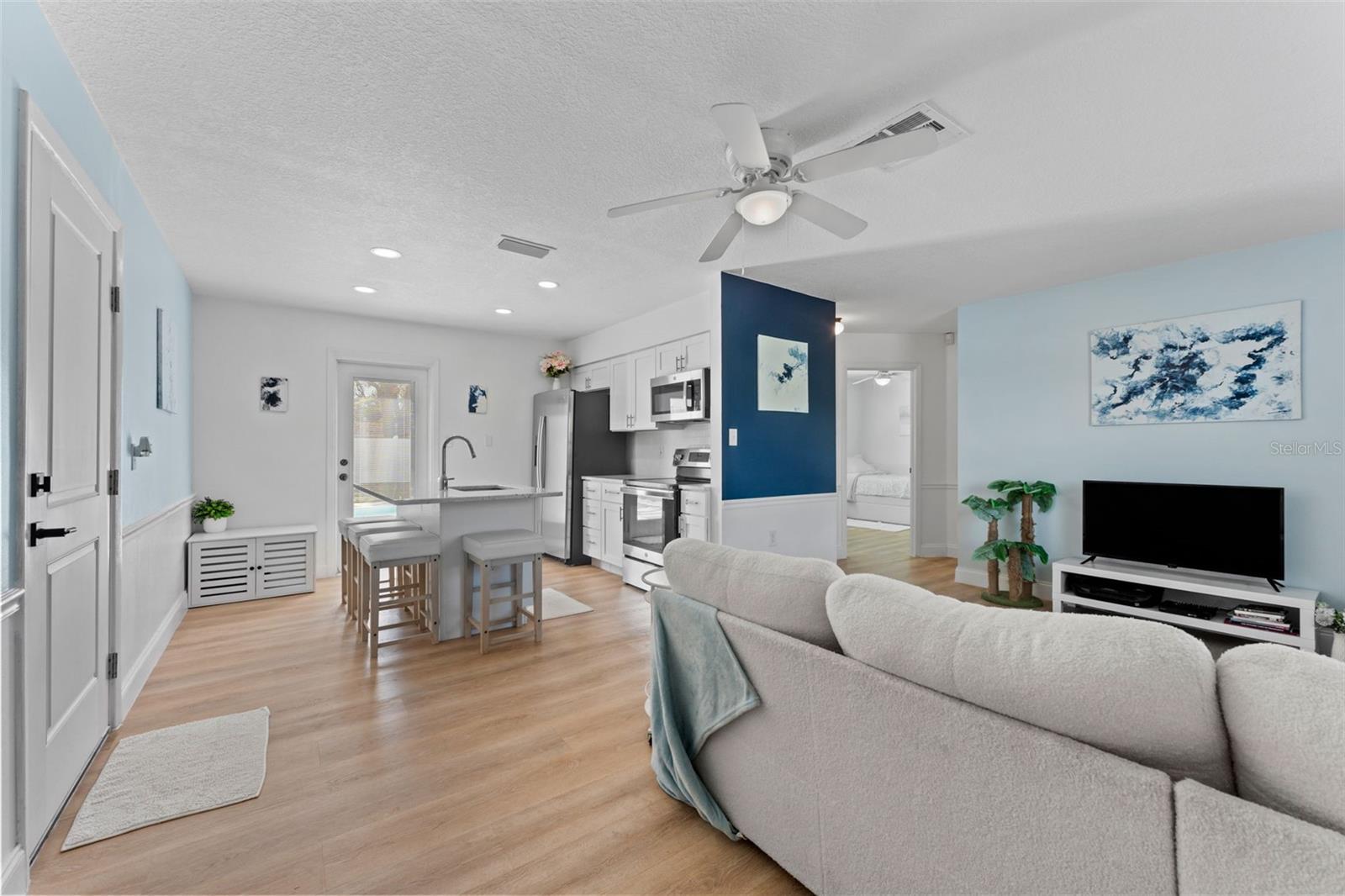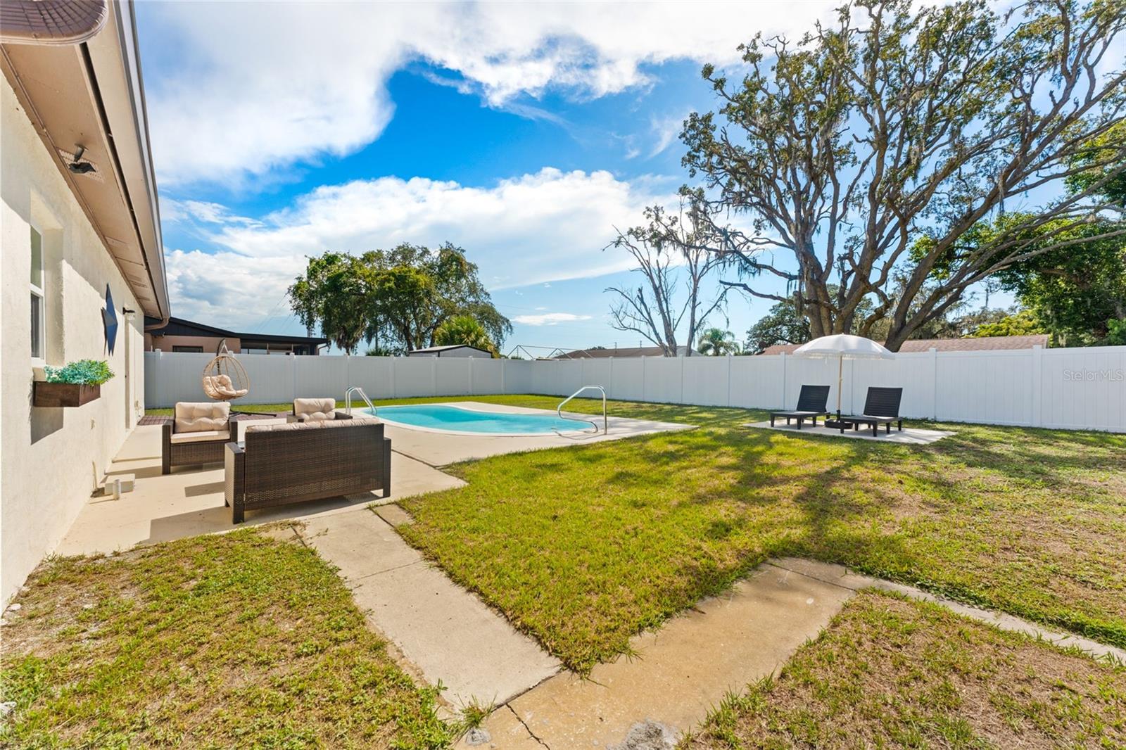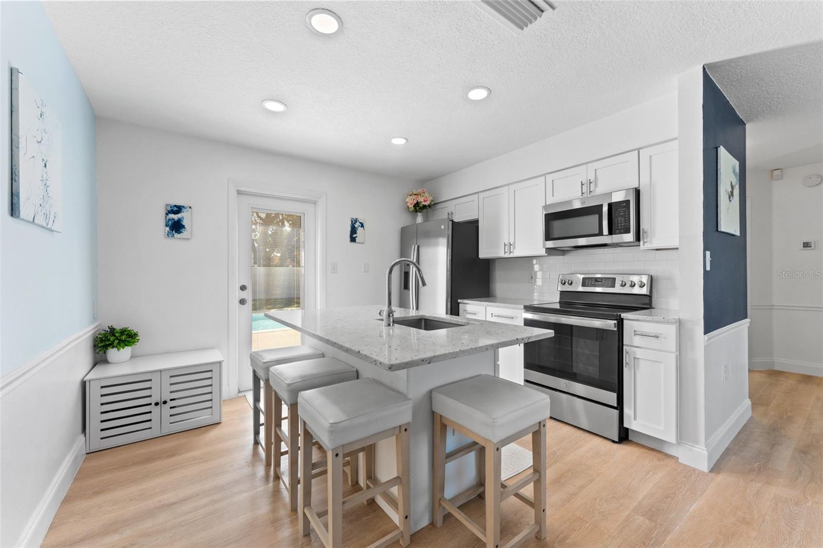 This beautifully remodeled 2-bedroom, 1-bath home with a 1-car garage offers comfort, style, and convenience. No Flood zone, no HOA, no CDD. ZERO damage from previous Hurricanes. Built in 1981, but completely updated within the last 4 years, it features an open floor plan, luxury vinyl flooring, and a remodeled kitchen with a spacious granite island and GE stainless steel appliances-including a fingerprint-resistant side-by-side refrigerator. Enjoy peace of mind with impact windows, a 14-SEER Heat Pump with new ducts, and a vinyl privacy fence with drive-through gates. The modern bathroom has luxurious tile and the bedrooms include custom built-in closets to maximize storage. Step outside to your large backyard with a patio, sparkling in-ground pool, and plenty of space to entertain including a car path big enough to park a boat or RV. Located in Port Richey, along the Gulf Coast, which is celebrated for its spectacular sunsets and abundant outdoor recreation convenient to restaurants, shopping, and even the water! Everything is fresh, modern, and designed for easy living just bring your suitcase!