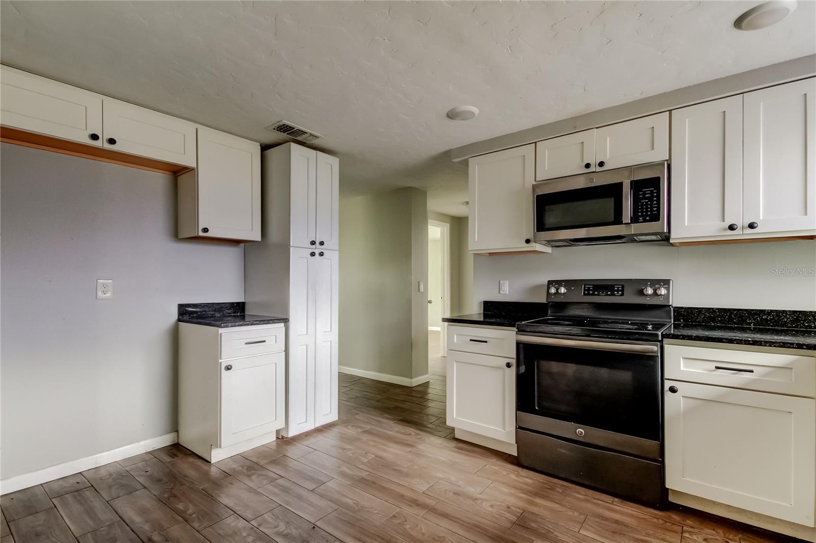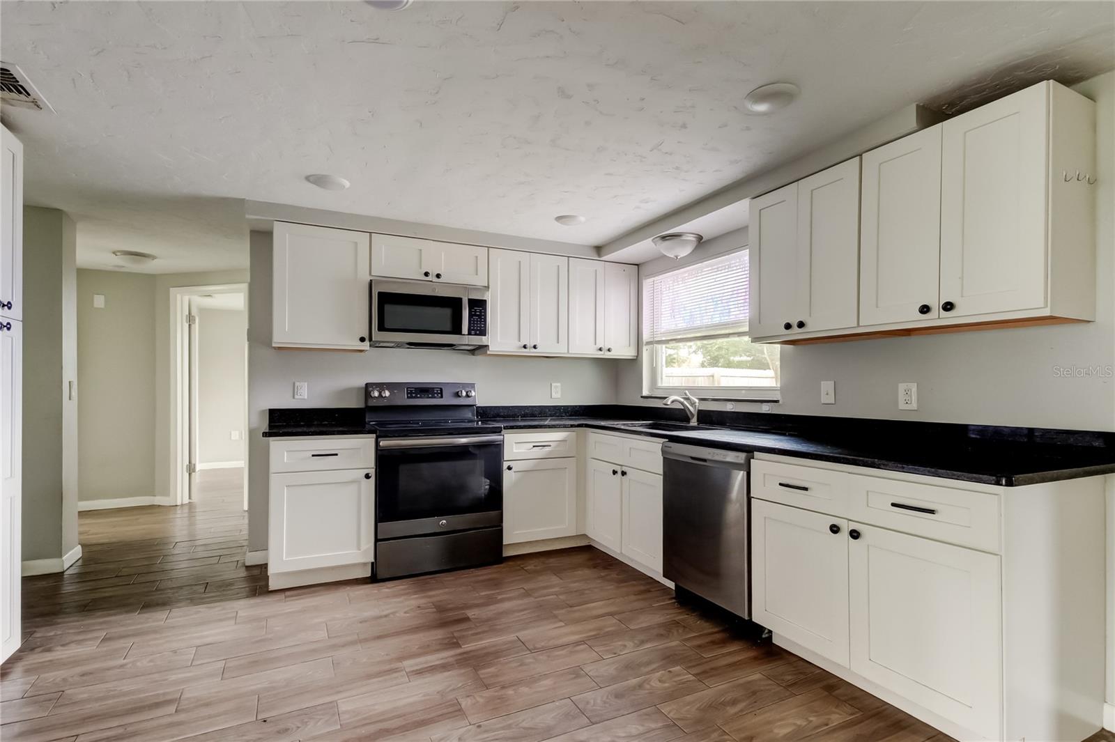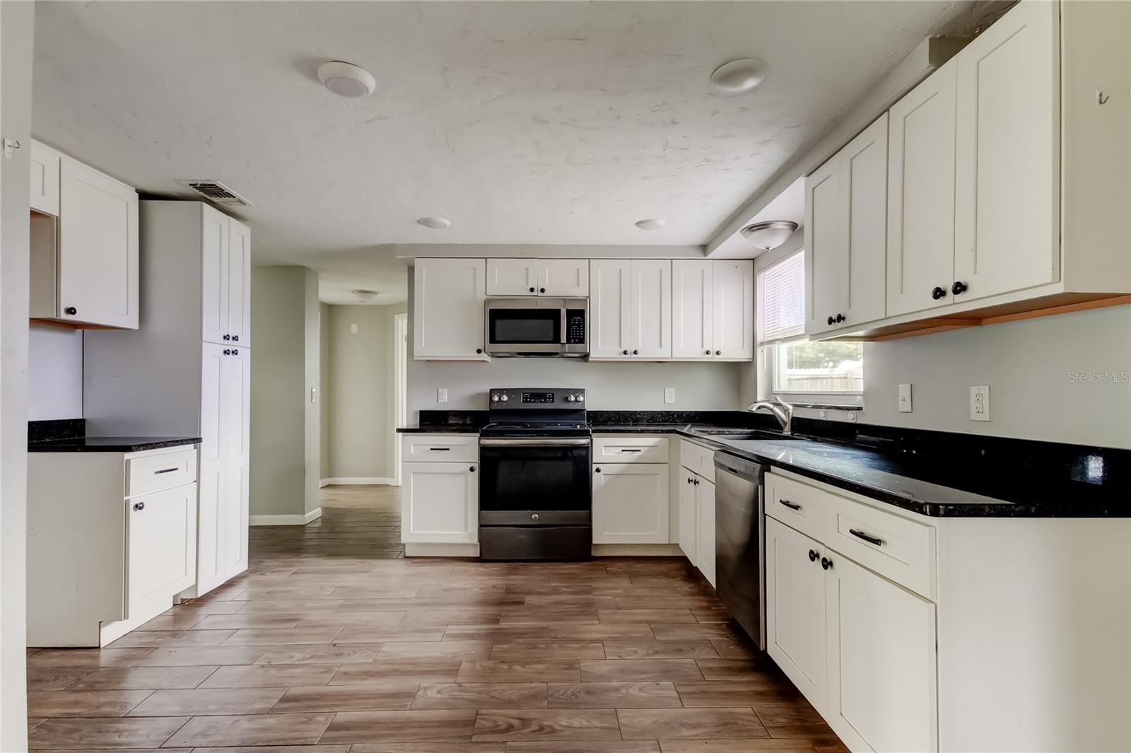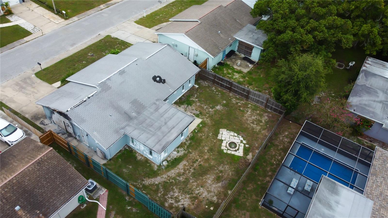 This lovely 3 bedroom, 2 bath home offers a fantastic opportunity for a savvy buyer or investor. While the garage area sadly suffered fire damage in January, the rest of the home shines with stylish upgrades and a functional layout. Step inside to attractive wood-look, plank tile flooring throughout the entire home (low maintenance - no carpet anywhere!). The kitchen has an abundance of cabinet space, a closet pantry and is complimented by granite countertops, stainless steel appliances and a cozy dinette area. The versatile split floor plan allows for comfort and privacy. The comfortable primary suite with sliders leading to the patio and spacious fenced yard, features a built-in closet and walk-in closet, and the updated ensuite bathroom enhances its appeal with earthy tile tones and a step-in shower. There are two generously sized guest bedrooms and a modern guest bath with tub and shower. Energy efficient windows assist in maximizing natural sunlight creating a brighter inviting atmosphere. You’ll appreciate the freedom of no HOA or CDD fees and your new home is located in Flood Zone X! This fabulous location is just 2 blocks from Lake Lisa Park, perfect for children and pets with its playground and green space and just minutes to schools, medical facilities, shopping plazas and dining. Explore nature trails at nearby Werner-Boyce Salt Springs State Park, kayak on its natural springs or have a relaxing beach day at Robert R. Rees Memorial Park. Take a short drive to downtown New Port Richey and enjoy its waterfront restaurants, music, retail therapy and events at Sims Park! This property is awaiting the right buyer to recognize its charm and potential!