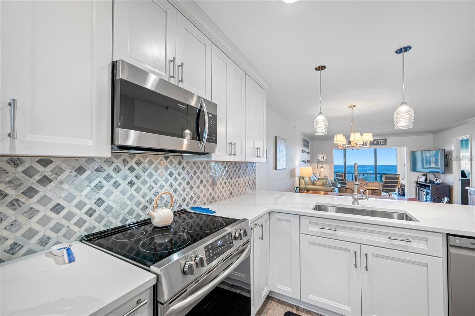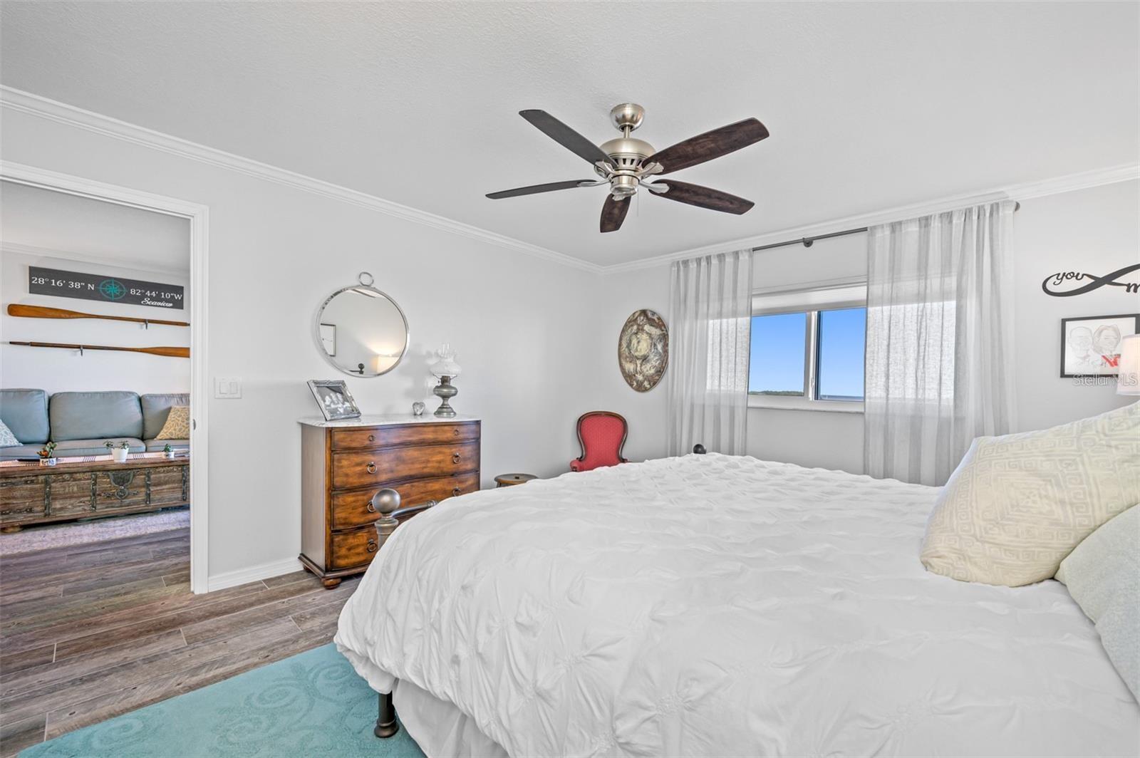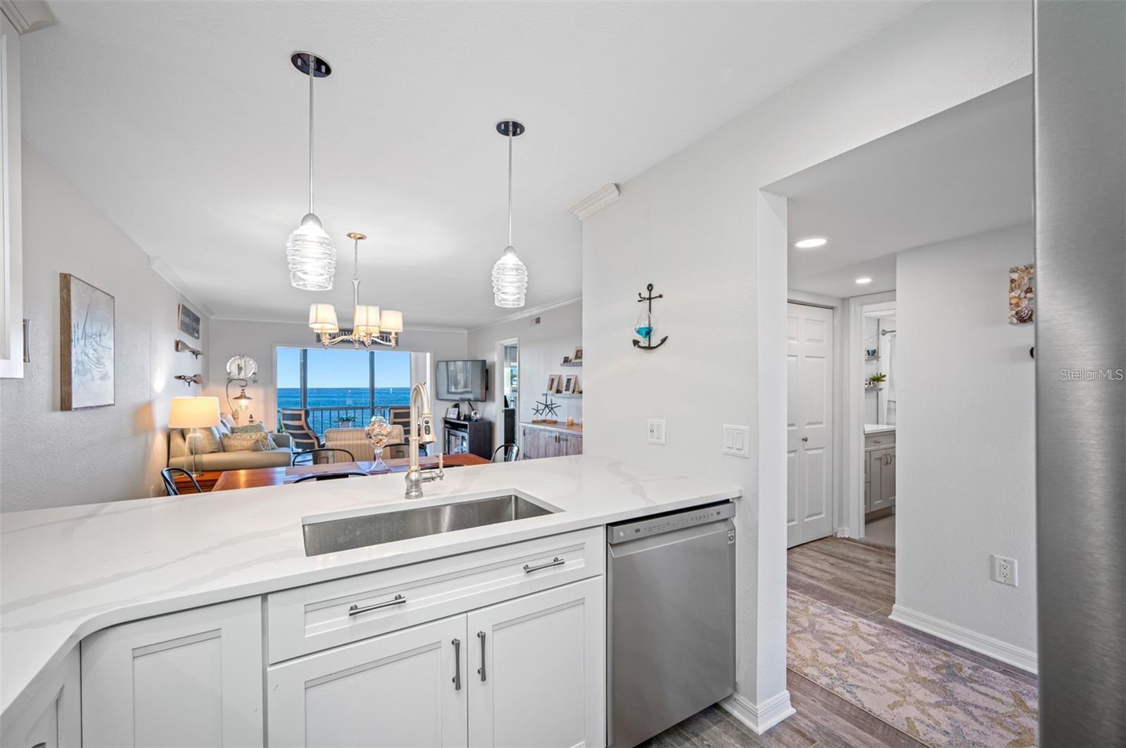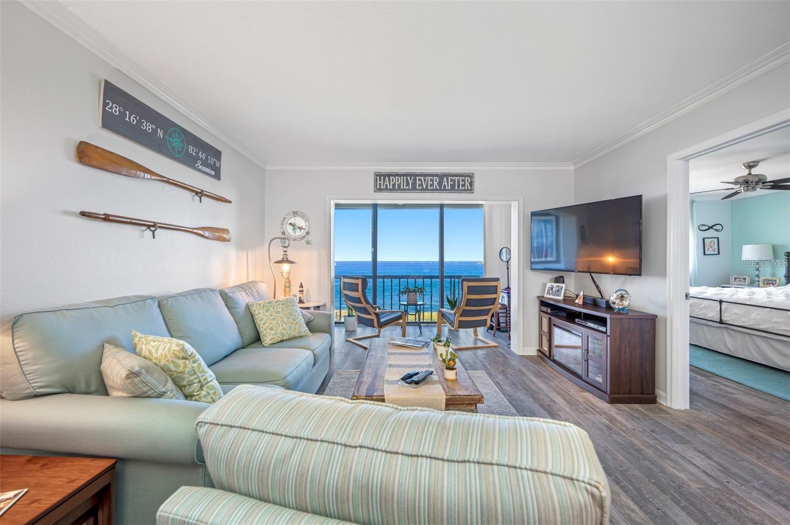 BEAUTIFULLY UPDATED, MOVE-IN READY, PARTIALLY FURNISHED condo...Immediately start enjoying the STUNNING, PANORAMIC, UNOBSTRUCTED VIEWS OF THE GULF in the EXCLUSIVE, GATED Sand Pebble Community! Enjoy BEAUTIFUL SUNSETS from this COMPLETELY REMODELED Unit with TONS OF NATURAL LIGHT + WOOD-LIKE TILE throughout! GOURMET KITCHEN with PLENTY OF COUNTER SPACE and STORAGE! LIVING ROOM with AMAZING VIEWS! LARGE PRIMARY BEDROOM with MORE VIEWS + SPA-LIKE PRIMARY BATHROOM...dual sinks, HUGE shower, & WALK-IN CLOSET with BUILT-INS + IN-WALL SAFE! Guest Bedroom with conveniently located and UPDATED guest bathroom! STUDY/DEN with CEILING TO FLOOR WINDOWS for the PERFECT VIEW of the GULF OF MEXICO! INSIDE LAUNDRY! Unit comes with ONE ASSIGNED CARPORT PARKING SPOT + STORAGE CLOSET. ELEVATOR in BUILDING! AMAZING COMMUNITY incudes: TWO HEATED SWIMMING POOLS + 24-HOUR GUARD GATE + COMMUNITY BOAT RAMP + PUTTING GREEN + TENNIS COURTS + NEW Clubhouse with FITNESS CENTER, Full KITCHEN, LIBRARY, Game Room with PING PONG & POOL TABLES! Come enjoy the Florida lifestyle! Schedule your private showing today!