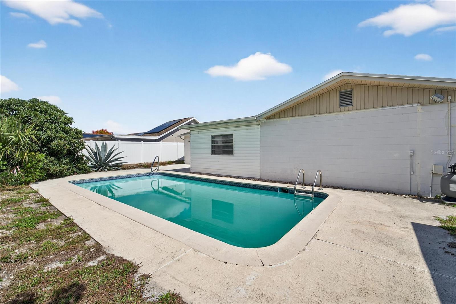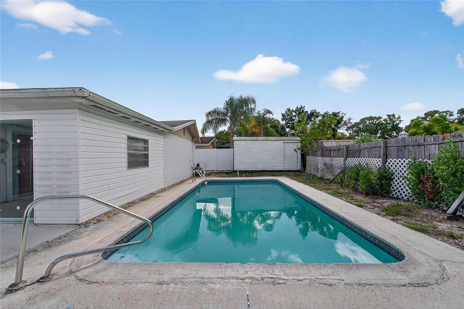 One or more photo(s) has been virtually staged. Welcome to Holiday Hill Estates — Where Comfort Meets Convenience! This charming block-constructed pool home in Port Richey offers 1,573 sq. ft. of heated living space designed for easy Florida living. Featuring 2 spacious bedrooms, 2 bathrooms, a versatile bonus room that could serve as an office or third bedroom, PLUS a Florida Room, and a 1-car oversized garage, it’s the perfect blend of practicality and potential. Step inside to find tile and laminate flooring throughout (no carpet here!), and a bright, inviting layout. The kitchen is equipped with a newer dishwasher, and the home includes a brand-new water heater and washer/dryer set — all the essentials ready for you to move right in. Major updates are already taken care of for peace of mind: The roof is only 8 years old, the HVAC system was replaced approximately 5 years ago, and the plumbing has had recent updates within the last two years. The electrical panel is brand new, providing modern reliability, and a new water heater ensures energy efficiency. You’ll also find a water softener system, a new pool pump, and even an attic antenna, meaning you can skip cable entirely if you choose. Outdoors, enjoy an in-ground pool (3–6 ft deep) with a new pool pump, ideal for weekend gatherings or a quiet evening swim. The fenced backyard offers privacy, a large storage shed, and plenty of space to garden or relax. With both a horseshoe driveway and a long side drive, parking for multiple vehicles is a breeze — even for your boat or RV. Best of all, there are no HOA fees, no CDD, and no flood zone worries (Flood Zone X) — giving you freedom and peace of mind. Located near shopping, dining, medical centers, and just a short drive to the Gulf beaches and Tampa International Airport, this home checks every box for comfort, convenience, and value. Holiday Hill Estates isn’t just a neighborhood — it’s a lifestyle. Come see why this pool home is the perfect place to start your next chapter.