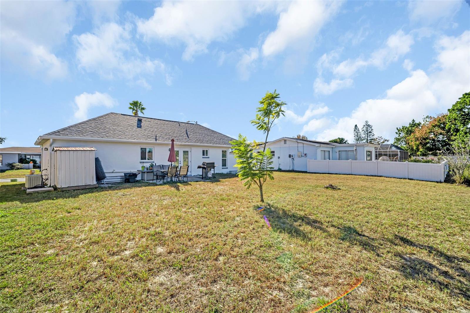 A nice Two Bedroom home sitting on a large Waterfront lot, with pretty views of the water and plenty of wildlife to watch. Build a dock and fish, or kayak across the water. Open plan Living, Features include: BRAND NEW ROOF, Dining and Kitchen, Impact Windows and Doors, with French doors leading out to a patio overlooking the water. Cathedral ceiling gives a nice airy feel to the main living area. Two bedrooms, both with newer wood laminate flooring and new closet doors. Updated bathroom with tub/shower. NO FLOOD ZONE required, home sits high above the water. Definitely worth a look!