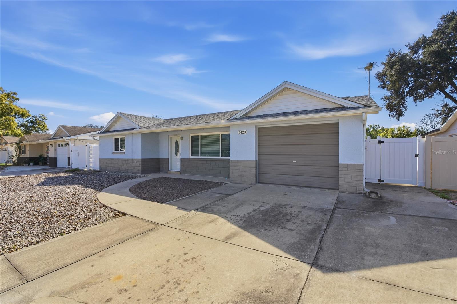 Take a look at this 2-bedroom, 2-bath, 1-car garage residence in the established community of Embassy Hills. Completely updated throughout, this move-in-ready home features a welcoming layout with premium laminate flooring, and newer tile combining style, durability, and easy maintenance. The kitchen is highlighted by custom cabinetry, while both bathrooms have been completely updated with new tile, modern vanities, updated fixtures, and stylish lighting, creating a fresh, cohesive feel. Additional conveniences include an indoor washer and dryer and the option to move right in with the home being tastefully furnished. Major improvements provide peace of mind, including a 2022 roof and hurricane rated windows and sliders. Enjoy the flexibility of NO HOA, a fenced-in yard perfect for pets or outdoor entertaining, and a double-wide driveway offering ample parking. Conveniently located near shopping, dining, parks, and Gulf Coast beaches—this home delivers comfortable, low-maintenance Florida living at its best.