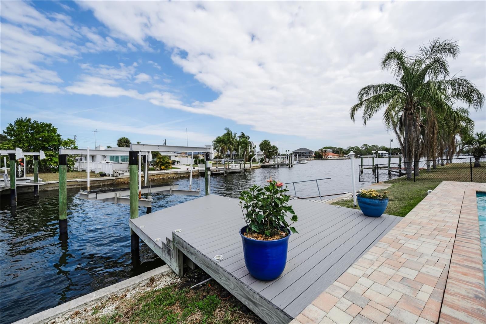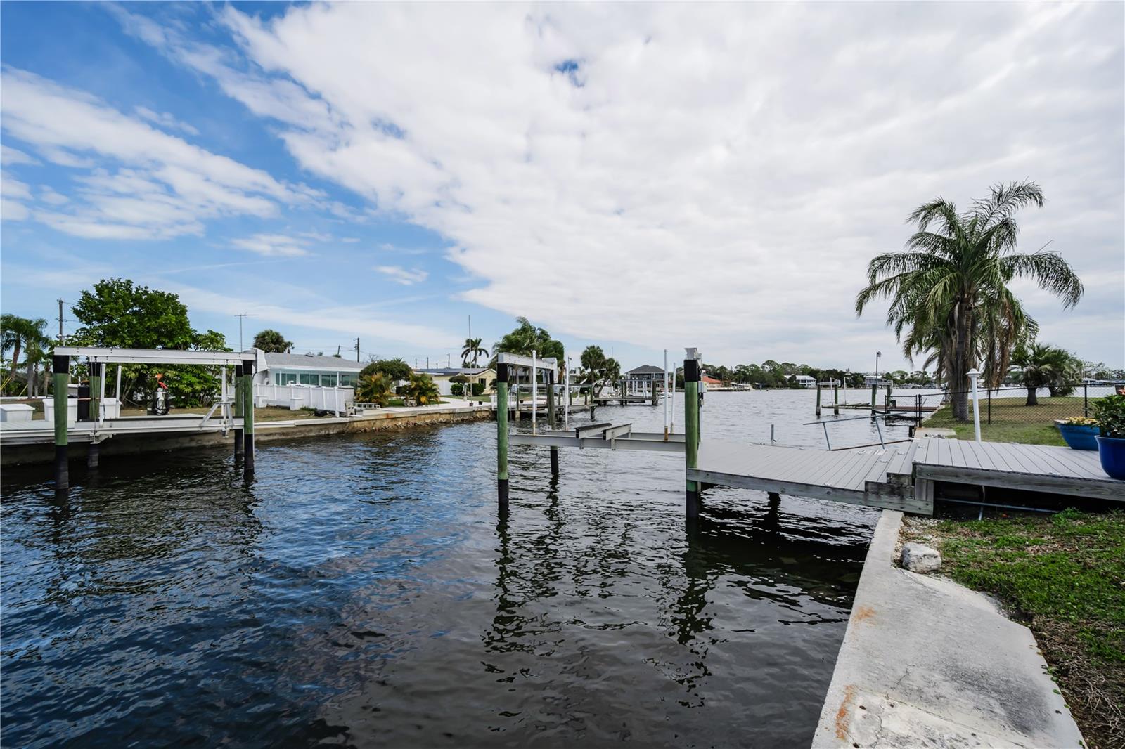 One or more photo(s) has been virtually staged. Fully Remodeled Waterfront Elegance - Wake up to peaceful waterfront views in this fully renovated, move-in-ready 3-bedroom, 2-bath coastal retreat. Located in one of Port Richey’s most desirable waterfront pockets, Harbor Isles, this home has been updated with all the latest finishes and offers the perfect blend of comfort, sophistication, and true Florida living. This property features all-new hurricane windows and hurricane-rated exterior doors, a brand-new HVAC system, and flood insurance (GFIP) prepaid for two years—giving you exceptional peace of mind and substantial value from day one. The hurricane renovations were fully permitted, ensuring every improvement was completed by qualified professionals. Inside, you’ll find a bright, open floor plan with a clean, contemporary design that flows effortlessly from room to room. Luxury flooring, designer fixtures, and abundant natural light set the tone for a home that feels both modern and inviting. The beautifully remodeled kitchen features soft-close cabinetry, stainless-steel appliances, and granite countertops, offering plenty of workspace and storage. It opens seamlessly to the dining and living areas, creating the ideal gathering space for family and friends. The primary suite provides a tranquil escape with a peaceful en suite bathroom, plenty of storage, and serene water views. The two additional bedrooms are perfect for family, guests, or easily transition into an office or flex space. The inside laundry room is spacious and offers valuable overflow storage from the kitchen. The garage and oversized driveway provide ample room to accommodate vehicles, toys, tools, or a workshop setup plus an extra-large storage closet. Step into the sunroom, where the indoors blend into outdoor living, beautifully framing the coastal waterfront backdrop. The sparkling pool and generous entertaining areas all overlook a secluded intercoastal-style setting that captures the relaxed coastal charm Florida is known for. With over 70 feet of seawall, a convenient dock, and a 10,000-lb lift rated for a 28-ft boat, you can be on the water in minutes with fast, no-bridge Gulf access to beaches. Spend your days boating, fishing, or cruising to nearby waterfront restaurants and marinas. Ideally located just minutes from Gulf beaches, Tampa Bay, Clearwater, and vibrant coastal destinations, this home offers an incredible opportunity to enjoy the Florida lifestyle at its very best. Harbor Isles ~ where peace of mind and coastal elegance come together.