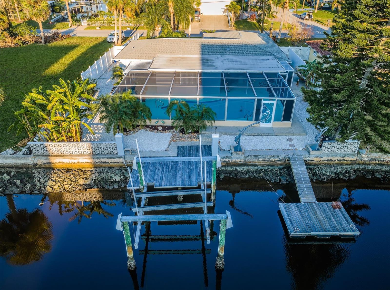 AMAZING PRICE FOR DIRECT ACCESS WATERFRONT POOL HOME!!!!OWNER SAYS SELL! UPDATED AND IMMACULATE, A MUST SEE! Relax and enjoy Florida living at its best. Direct Gulf of Mexico access, with no bridges. Only 2 miles from your dock to open water enjoy world class fishing, scallop and stone crab harvesting and Island hoping. After a fun filled day on the water cool off in the refreshing pool and barbecue your catch dockside while enjoying the incredible sunsets. If you don't feel like cooking take your boat or golf cart to one of 8 waterfront dining spots such as Hooters, Catches, Gill Dawgs or Whisky River. This coastal paradise is golf cart friendly and has many waterfront parks nearby. Almost 1500 sq ft of living space with 2 large bedrooms and 2 bathrooms featuring a split bedroom layout with plenty of storage throughout and a 2-car garage. A spacious screened in lanai and pool overlooks the beautiful tropical landscaping with fruit trees, a floating and stationary dock and a 10,000 lb boat lift. The private, fenced in yard has room for all your outdoor toys plus trailer or rv parking. Some of the recent upgrades include luxury vinyl flooring, freshly painted inside and out, new gutters, new garage service door, hurricane garage door, newer windows, new water softener and hot water heater. Check out this super clean home today before it is gone.