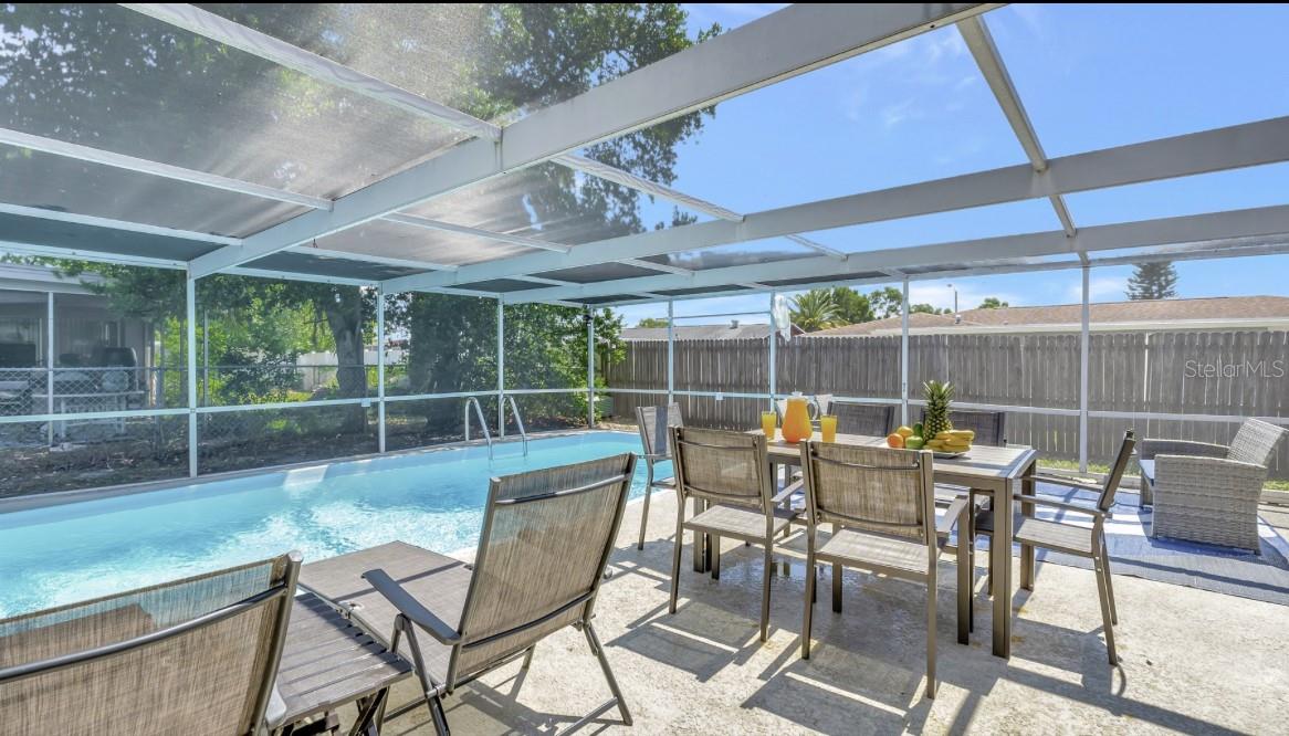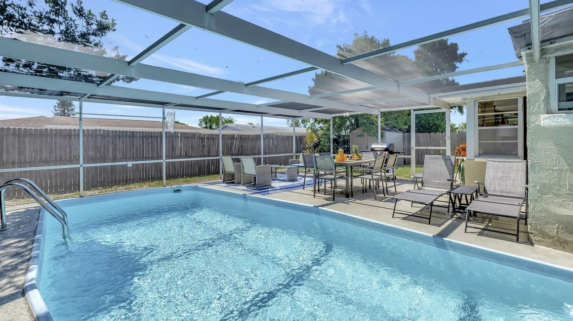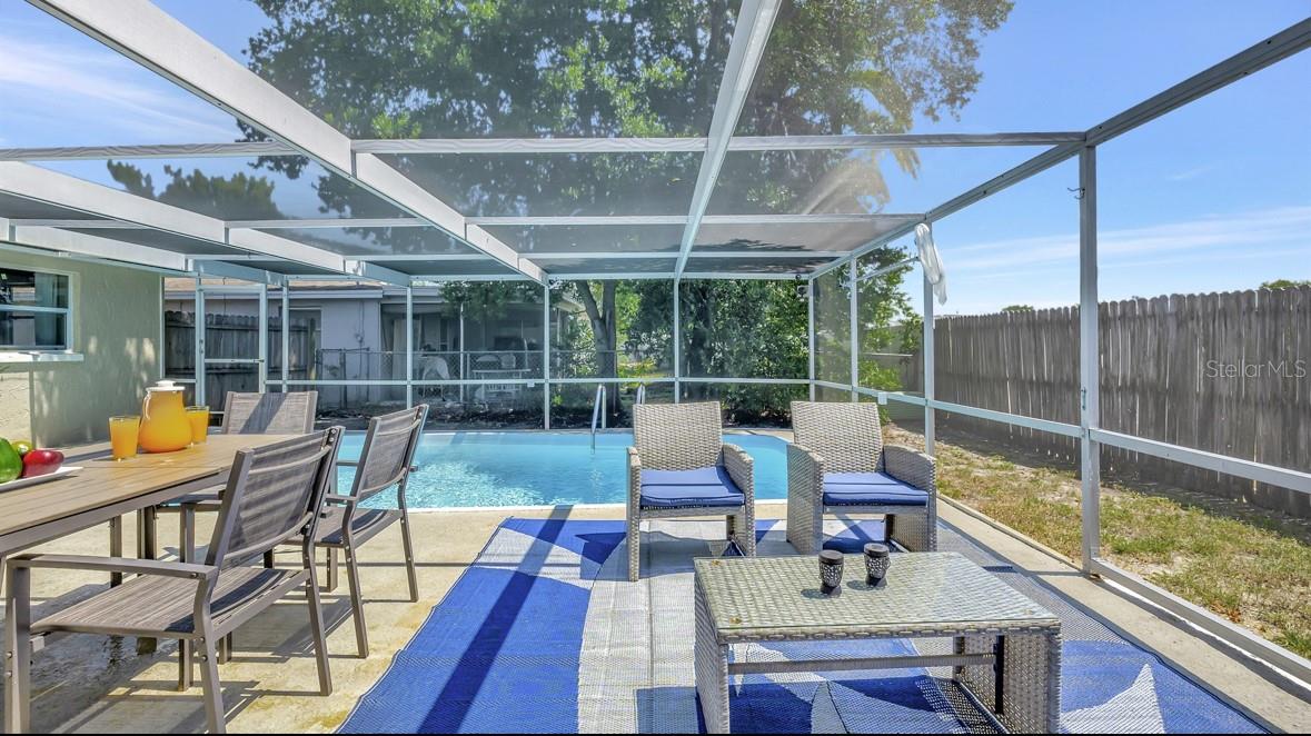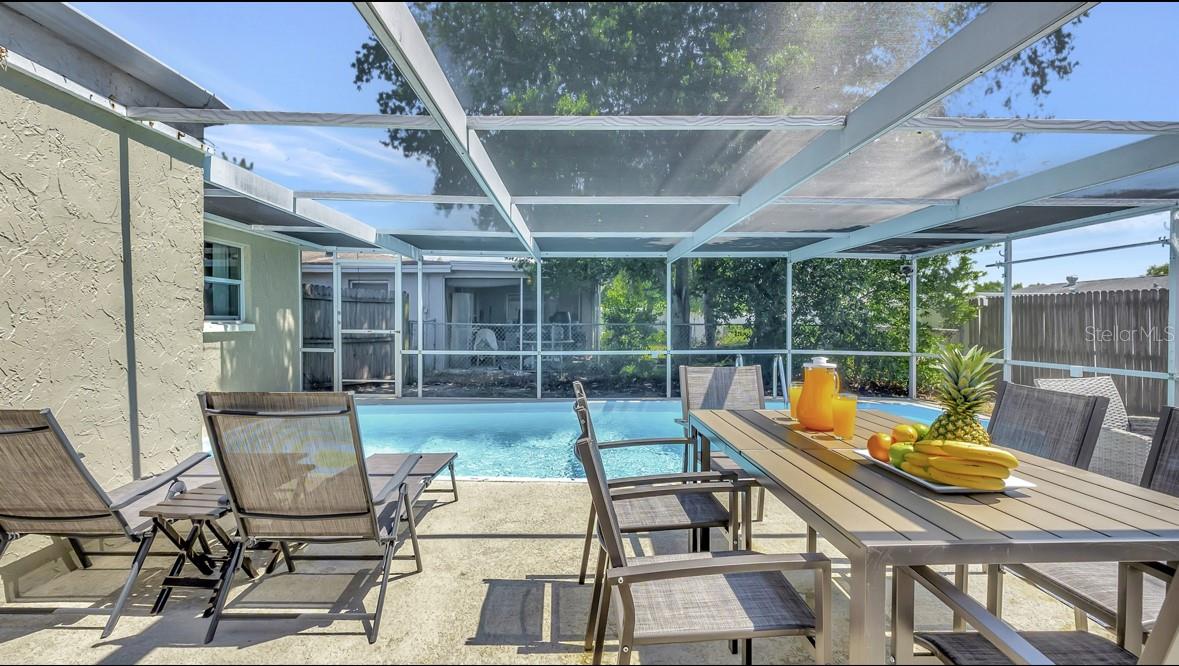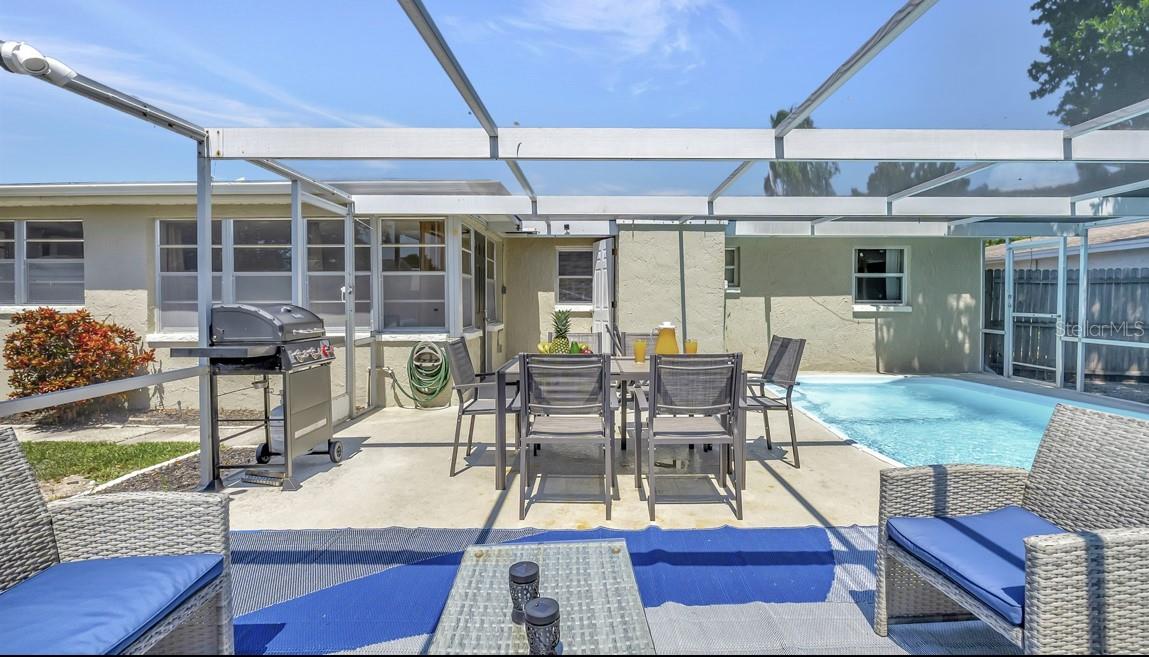 Step into a sanctuary of elegance and well-appointed comfort, where every detail has been thoughtfully designed to embrace you in luxury. From the moment you arrive, this home is sure to impress with its inviting atmosphere and harmonious blend of classic charm and modern convenience. The living room is a haven where comfort and style seamlessly converge. A perfect space to unwind after a long day. Rest your feet on a soft ottoman, while you enjoy the warmth of LVP underfoot. Whether you're seeking relaxation or a lively movie night, this space offers the ultimate retreat. Adjacent to the living room, the dining area showcases functional elegance with clean lines and thoughtful design. This inviting space comfortably seats six, making it perfect for gathering loved ones around delicious meals and creating cherished memories. In the heart of the home lies the kitchen, a dream for culinary enthusiasts. This space expertly combines the timeless appeal of wooden cupboards with the sleek efficiency of modern appliances, ready to assist in all your cooking adventures. With ample lighting and thoughtfully designed workspace, the kitchen is more than just a cooking area; it's a canvas for creating unforgettable dishes and moments. The master bedroom is a luxurious escape, featuring a spacious layout that accommodates a king-size bed, promising the ultimate comfort and room to stretch out and relax. The serene environment ensures restful nights and peaceful mornings. The second bedroom is equally inviting, illuminated by two generously sized windows that flood the space with natural light. Accommodating a cozy queen-size bed, this room is designed to provide a warm and restful atmosphere. The third bedroom offers a bright, expansive space with an extra-large closet for ample storage. This versatile room can also double as an office or den, catering to your every need. Step outside to the centerpiece of outdoor luxury – the pool area. This inviting oasis is where every day feels like a vacation. Generous seating areas provide plenty of room to soak up the sun or unwind in the shade. Sizzle up a storm on the grill, creating delectable memories with friends and family. Dive into the good life, where every day is a pool day in paradise, and experience poolside perfection. And if this all isn’t enough…. all of the furniture is included! This is a turnkey property just waiting your arrival. Welcome home to a place where elegance, comfort, and luxury invite you to create your perfect stay. No HOA, No CDD. New roof and AC. Located conveniently to US Hwy 19 with easy access to all that Tampa Bay has to offer, including beaches, restaurants, shopping, schools and hospitals. Don't miss out!