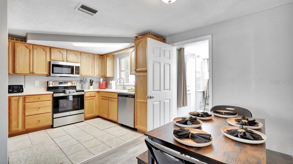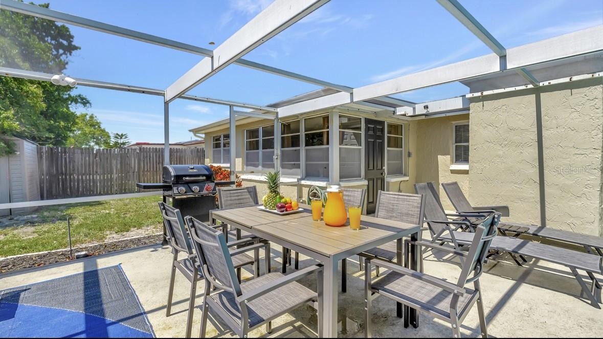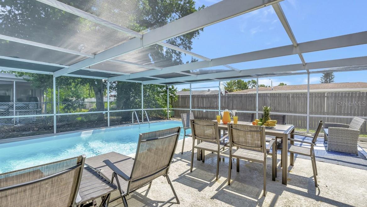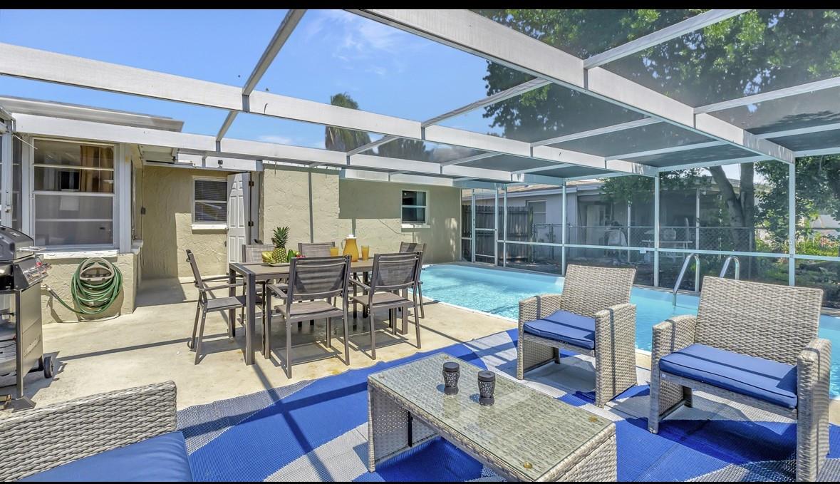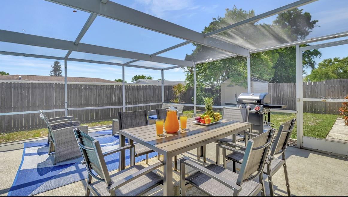Step into a sanctuary of elegance and well-appointed comfort, where every detail has been thoughtfully designed to embrace you in luxury. From the moment you arrive, this home is sure to impress with its inviting atmosphere and harmonious blend of classic charm and modern convenience. The living room is a haven where comfort and style seamlessly converge. A perfect space to unwind after a long day. Rest your feet on a soft ottoman, while you enjoy the warmth of LVP underfoot. Whether you're seeking relaxation or a lively movie night, this space offers the ultimate retreat. Adjacent to the living room, the dining area showcases functional elegance with clean lines and thoughtful design. This inviting space comfortably seats six, making it perfect for gathering loved ones around delicious meals and creating cherished memories. In the heart of the home lies the kitchen, a dream for culinary enthusiasts. This space expertly combines the timeless appeal of wooden cupboards with the sleek efficiency of modern appliances, ready to assist in all your cooking adventures. With ample lighting and thoughtfully designed workspace, the kitchen is more than just a cooking area; it's a canvas for creating unforgettable dishes and moments. The master bedroom is a luxurious escape, featuring a spacious layout that accommodates a king-size bed, promising the ultimate comfort and room to stretch out and relax. The serene environment ensures restful nights and peaceful mornings. The second bedroom is equally inviting, illuminated by two generously sized windows that flood the space with natural light. Accommodating a cozy queen-size bed, this room is designed to provide a warm and restful atmosphere. The third bedroom offers a bright, expansive space with an extra-large closet for ample storage. This versatile room can also double as an office or den, catering to your every need. Step outside to the centerpiece of outdoor luxury – the pool area. This inviting oasis is where every day feels like a vacation. Generous seating areas provide plenty of room to soak up the sun or unwind in the shade. Sizzle up a storm on the grill, creating delectable memories with friends and family. Dive into the good life, where every day is a pool day in paradise, and experience poolside perfection. And if this all isn’t enough…. all of the furniture is included! This is a turnkey property just waiting your arrival. Welcome home to a place where elegance, comfort, and luxury invite you to create your perfect stay. No HOA, No CDD. New roof and AC. Located conveniently to US Hwy 19 with easy access to all that Tampa Bay has to offer, including beaches, restaurants, shopping, schools and hospitals. Don't miss out!