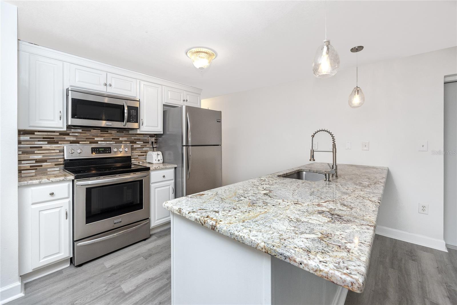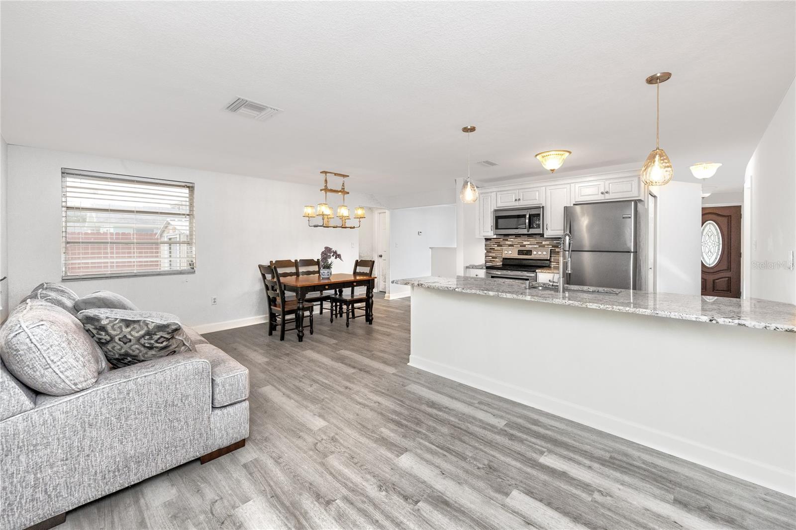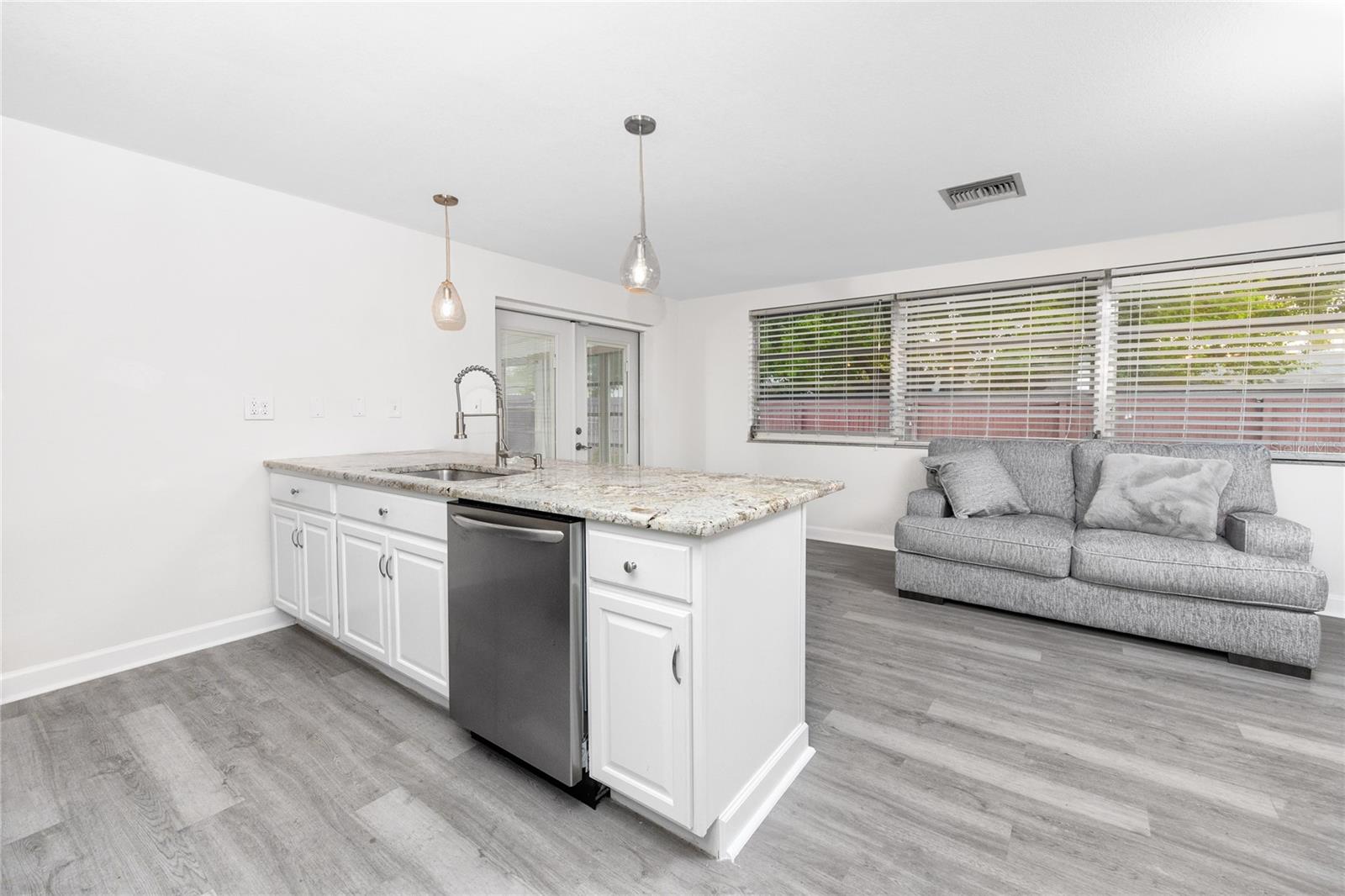 NEW REDUCED PRICE!! NEW ROOF - NO FLOOD INSURANCE - BEAUTIFULLY REMODELED HOME - 2/2 - Bonus Room could be EASILY converted to a 3rd BEDROOM - plus 1 car garage - fenced back yard! BEAUTIFUL KITCHEN CABINETS & STONE COUNTERS ** STAINLESS MATCHING APPLIANCES ** FABULOUS BATHROOMS (2) PLUS 6 panel NEW DOORS & NEW BASEBOARDS ** NEW DRYWALL, PAINT, PLUMBING, ELECTRICAL ** IRRIGATION SYSTEM ** MOST WINDOWS ARE NEW ** NEW LUXURY VINYL PLANK FLOORING ** NEW EPOXY FLOORING IN GARAGE ** MOVE RIGHT IN! NEW WASHER DRYER CONVEYS in GARAGE. Close to shopping, restaurants, schools. FABULOUS LOCATION. BLOCK HOME! WONDERFUL FLORIDA ROOM THAT LEADS TO A GREAT BACK YARD!!