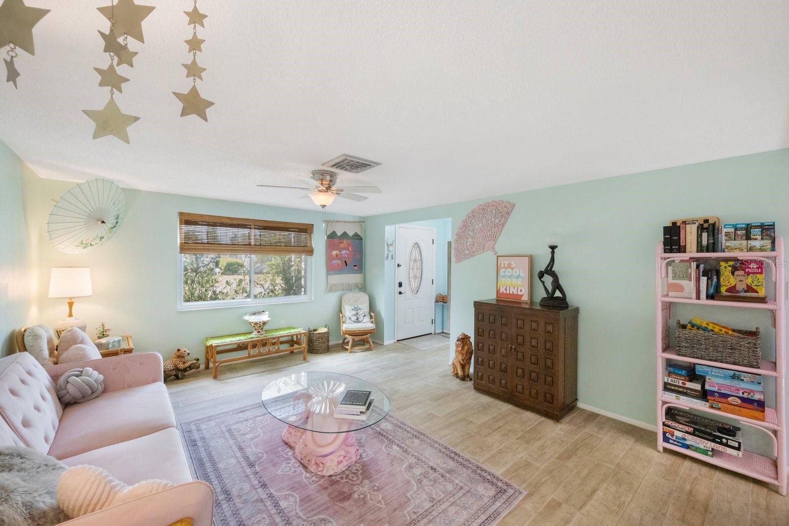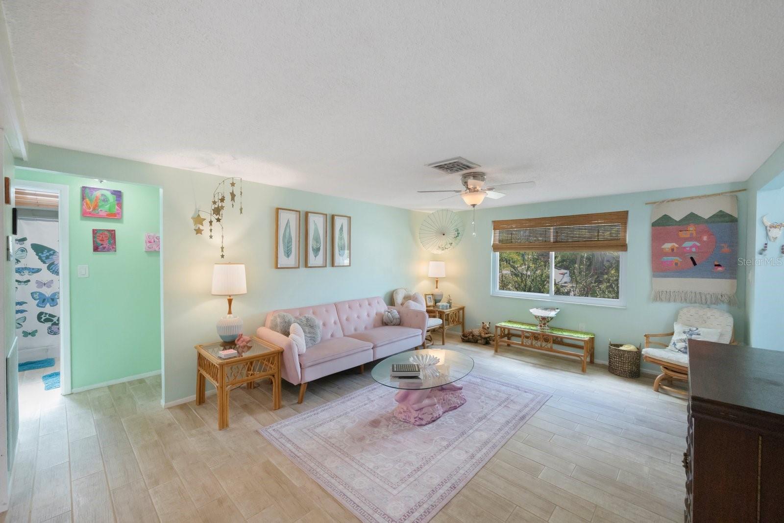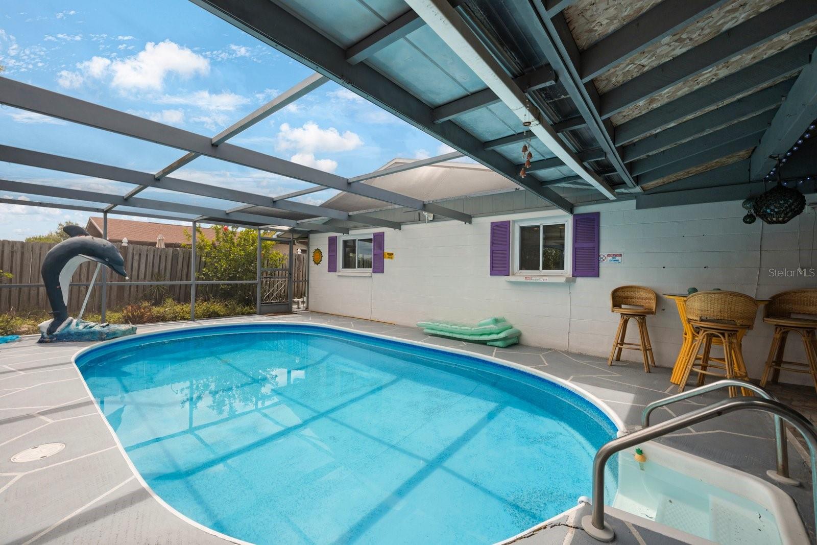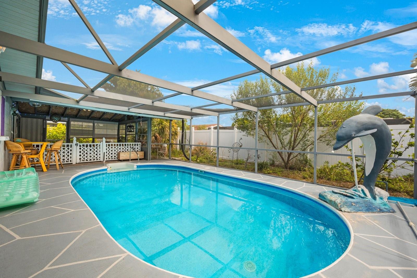 Wow, it’s beautiful, I have to have it! Those are just a few words you might use as you approach this vibrant retreat, nestled in the Embassy Hills Subdivision. This 2-bedroom, 2-bath, 1-Car Garage Pool Home is sure to check all of the boxes. The enticing eclectic design and negotiable furnishings, make for a great investment opportunity or move-in ready starter home. Once you step foot on this property you will be delighted by the charming curb appeal and lush landscaping. Make your way inside, where you’ll find NEW wood look tile flooring that flows throughout the open concept and a desirable floor plan with a place for everything. Enjoy your morning coffee in the Kitchen featuring; Ample storage space, laminate countertops, a NEW tile backsplash, recessed lighting and natural light trickling in through the NEW Kitchen skylight. Gather with friends and family in the living room, root on your favorite sports team in the family room or make your way outdoors for the ultimate pool party with a large screen enclosed patio/pool deck and saltwater pool. Before the fun winds down, make sure to challenge your friends to a game of foosball in the garage where you’ll find newly tiled floors and the second bathroom for extended bonus space. This home truly has it all with added features like; Generous room sizes, ample storage, wainscotting in the family room, skylights in the kitchen and baths, exterior storage closet on the rear patio and a small gardening shed. The lush landscaping also features; Palms, cactus, gardenias, rose bushes, a sweet potato bed, aloe, root beer tree, banana trees and more! Additional updates include; Updated main bath with NEW vanity and tile shower surround, impact rated windows and slider (2017), HVAC (2018), roof (2017), electrical panel (2016), water heater (2021), NEW interior paint and a NEW front door lock with keyless entry. This home truly makes living the Florida lifestyle easy! Located within minutes of local parks, walking trails, shops, your new favorite restaurants and so much more! Schedule your private tour today and CHECK OUT THE 3D MATTERPORT TOUR!