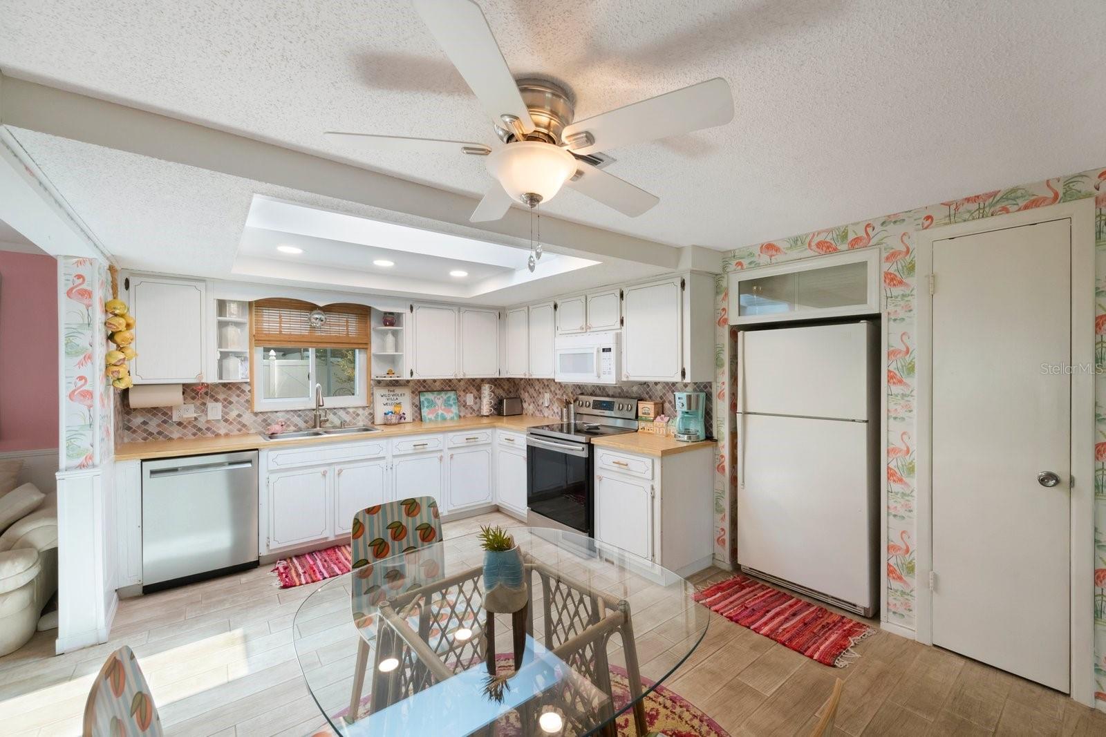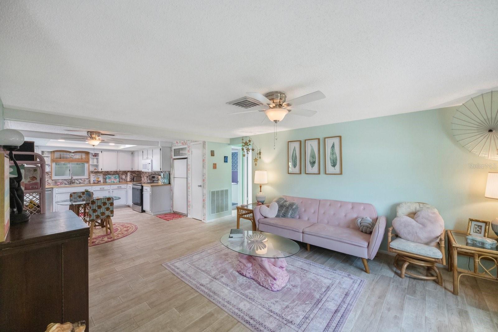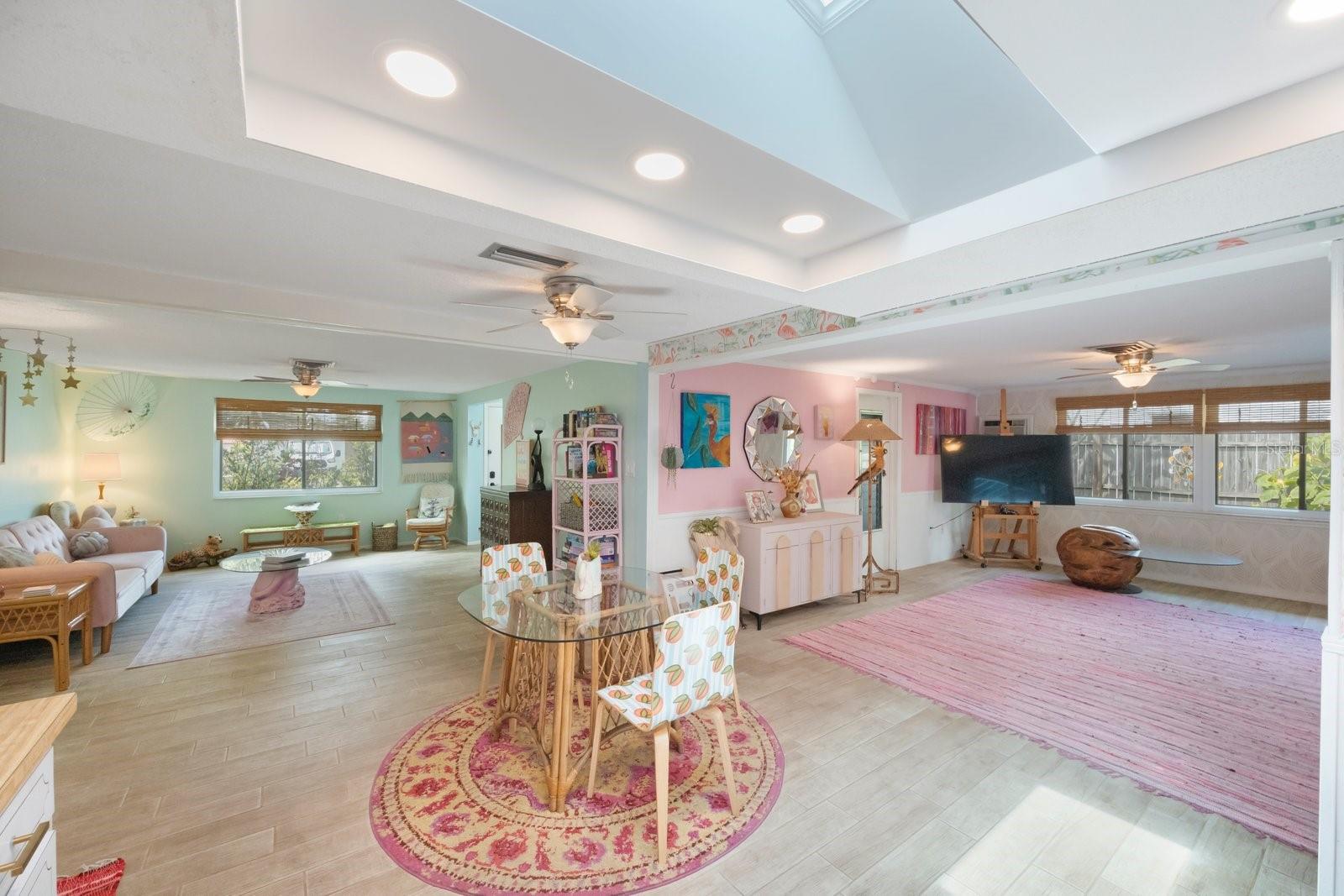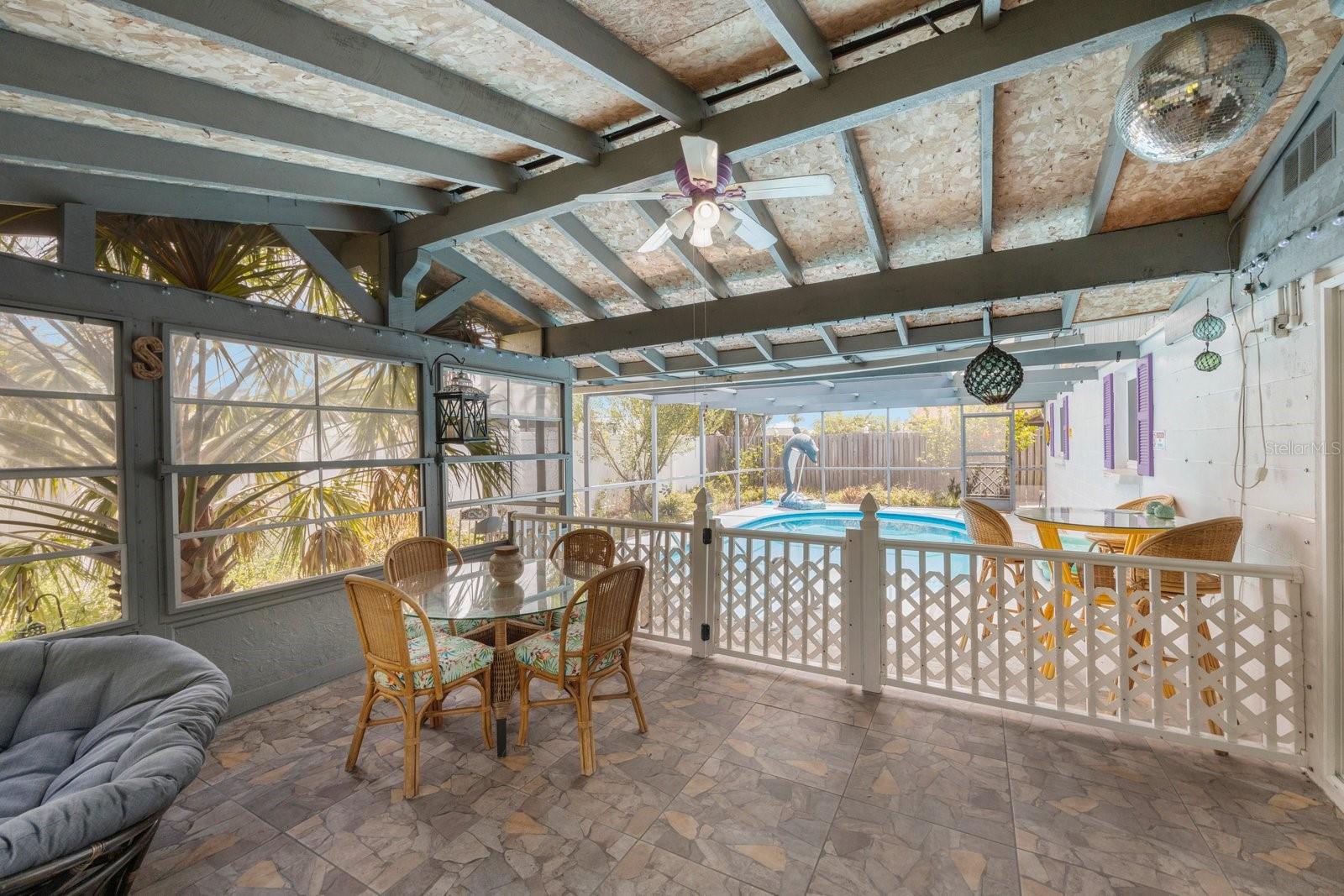 Wow, it’s beautiful, I have to have it! Those are just a few words you might use as you approach this vibrant retreat, nestled in the Embassy Hills Subdivision. This 2-bedroom, 2-bath, 1-Car Garage Pool Home is sure to check all of the boxes. The enticing eclectic design and negotiable furnishings, make for a great investment opportunity or move-in ready starter home. Once you step foot on this property you will be delighted by the charming curb appeal and lush landscaping. Make your way inside, where you’ll find NEW wood look tile flooring that flows throughout the open concept and a desirable floor plan with a place for everything. Enjoy your morning coffee in the Kitchen featuring; Ample storage space, laminate countertops, a NEW tile backsplash, recessed lighting and natural light trickling in through the NEW Kitchen skylight. Gather with friends and family in the living room, root on your favorite sports team in the family room or make your way outdoors for the ultimate pool party with a large screen enclosed patio/pool deck and saltwater pool. Before the fun winds down, make sure to challenge your friends to a game of foosball in the garage where you’ll find newly tiled floors and the second bathroom for extended bonus space. This home truly has it all with added features like; Generous room sizes, ample storage, wainscotting in the family room, skylights in the kitchen and baths, exterior storage closet on the rear patio and a small gardening shed. The lush landscaping also features; Palms, cactus, gardenias, rose bushes, a sweet potato bed, aloe, root beer tree, banana trees and more! Additional updates include; Updated main bath with NEW vanity and tile shower surround, impact rated windows and slider (2017), HVAC (2018), roof (2017), electrical panel (2016), water heater (2021), NEW interior paint and a NEW front door lock with keyless entry. This home truly makes living the Florida lifestyle easy! Located within minutes of local parks, walking trails, shops, your new favorite restaurants and so much more! Schedule your private tour today and CHECK OUT THE 3D MATTERPORT TOUR!