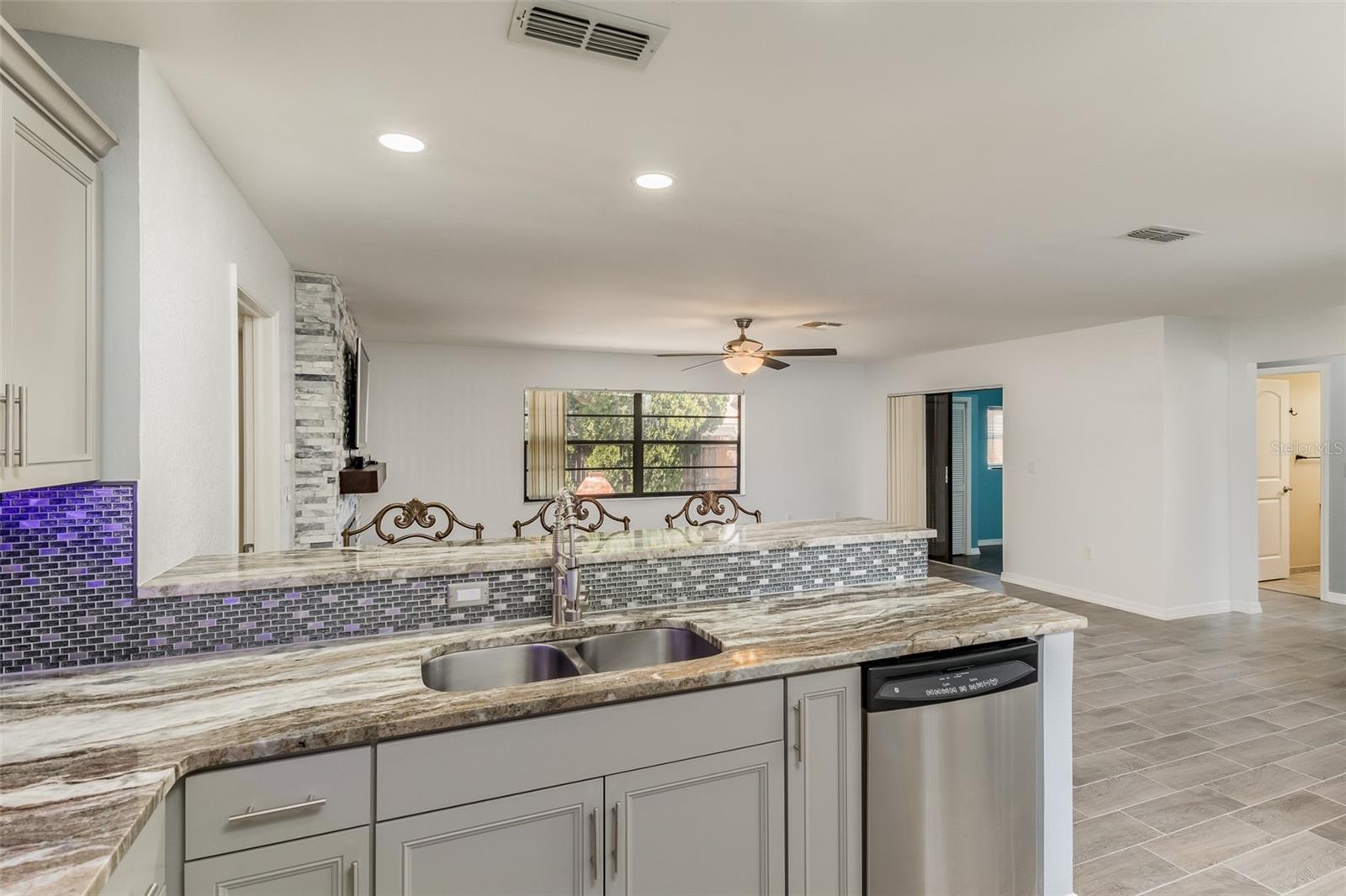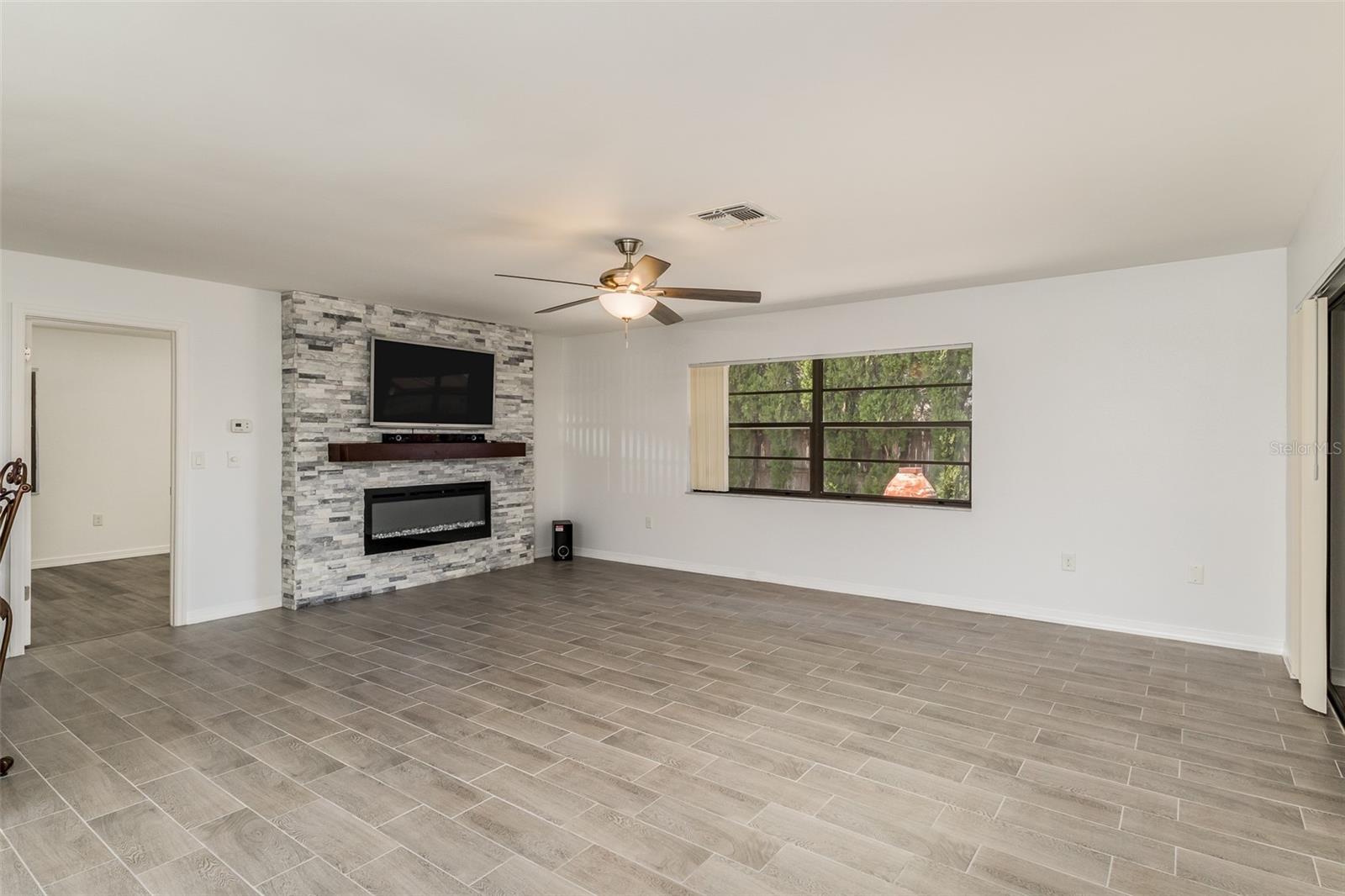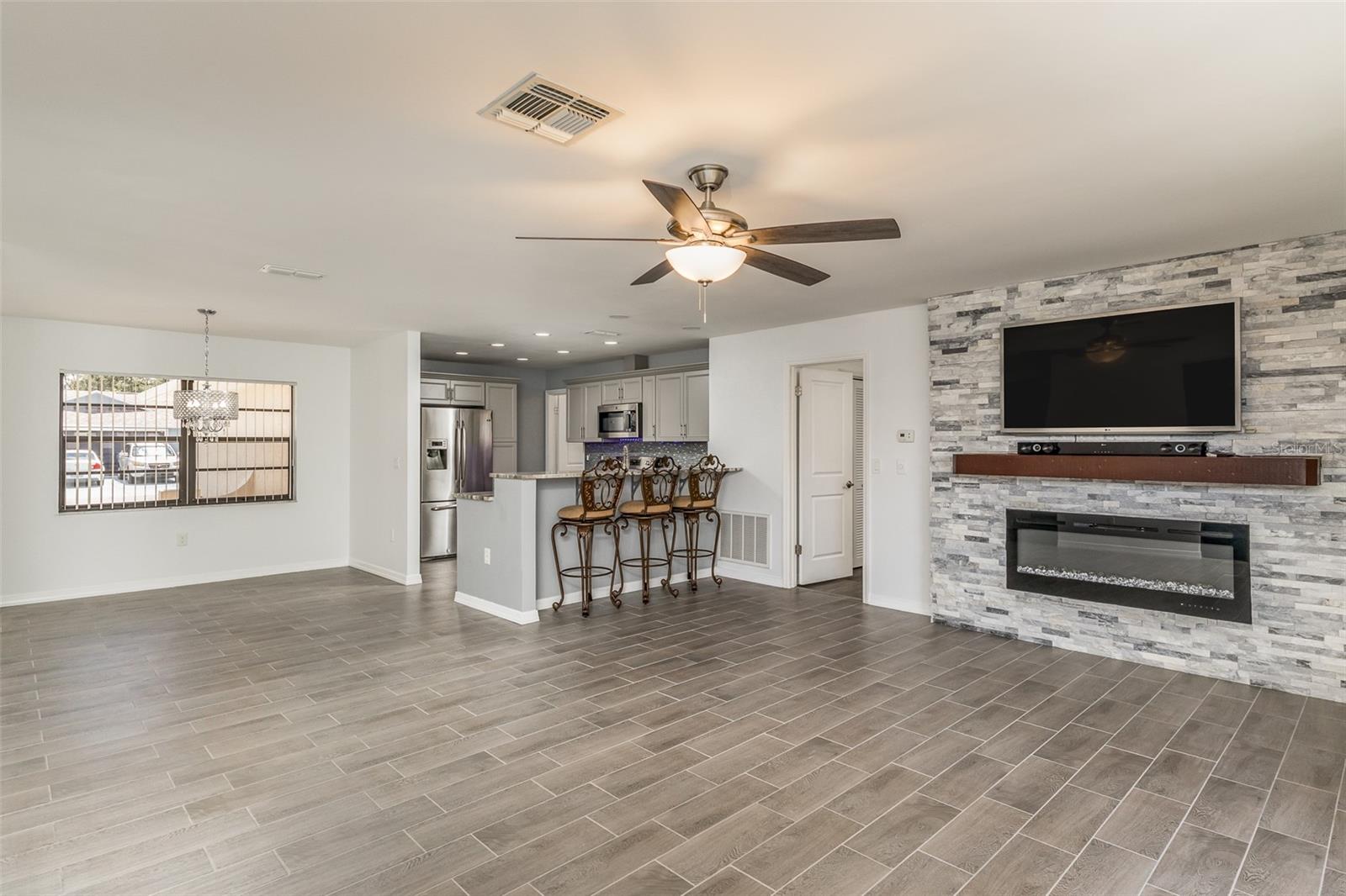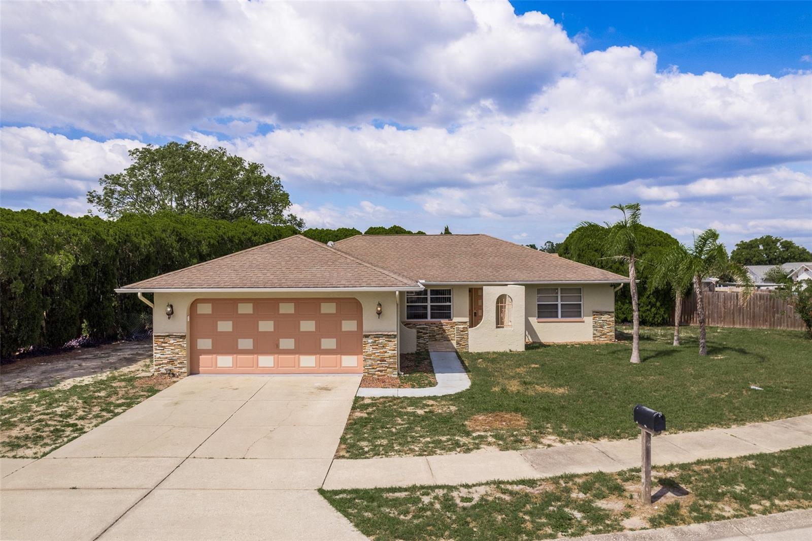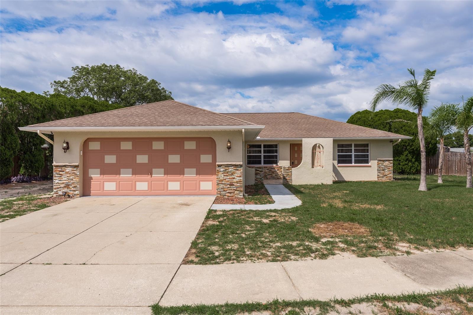 Welcome to your dream home! Nestled in a serene cul-de-sac, this stunning property offers a blend of modern elegance and practical living. With three spacious bedrooms, two beautifully updated bathrooms, and a two-car garage featuring an epoxy-painted floor and ample shelving for all your storage needs, this home is designed for comfort and convenience. As you approach, the stone accents on the exterior and the inviting courtyard-style front porch with pavers set the stage for the beauty that awaits inside. Step through the front door and be greeted by the luxurious designer wood plank tile floors that seamlessly flow through all the living areas. The focal point of the living room is the exquisite stone fireplace, complete with a mantel and a mounted TV and soundbar (which stay with the home), offering both aesthetic appeal and functional warmth on those rare chilly days. The open-plan design enhances the sense of spaciousness, making it perfect for entertaining guests. The adjacent dining area is ideally situated next to the kitchen, which boasts new cabinets, stainless steel appliances, granite countertops, a glass tile backsplash, stylish lighting, and a convenient breakfast bar. Additionally, there's a versatile small room with a vanity, sink, and cabinets that could serve as an excellent walk-in pantry.The thoughtful three-way split bedroom design ensures optimal privacy. The master bedroom features elegant laminate wood plank flooring, a generous closet, and a stunning en-suite bathroom with a double vanity, marble countertops, designer tile, and a walk-in shower. The other two bedrooms are equally spacious with ample closet space, and the second bathroom is tastefully updated with a beautiful vanity and intricate tile work in the tub and shower. The fully fenced backyard is perfect for outdoor activities. Freshly painted interior this year, and the new A/C system installed in 2023 adds to the home's appeal. Located close to shopping, dining, schools, medical facilities, golf courses, and of course, beautiful beaches, this home is a must-see. Schedule your appointment today and make this your new sanctuary!