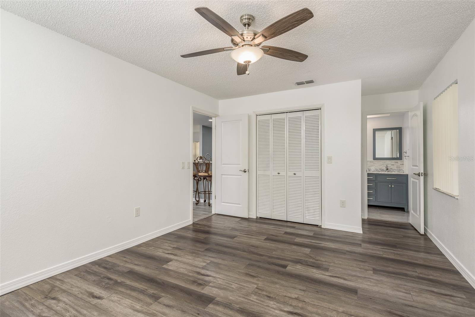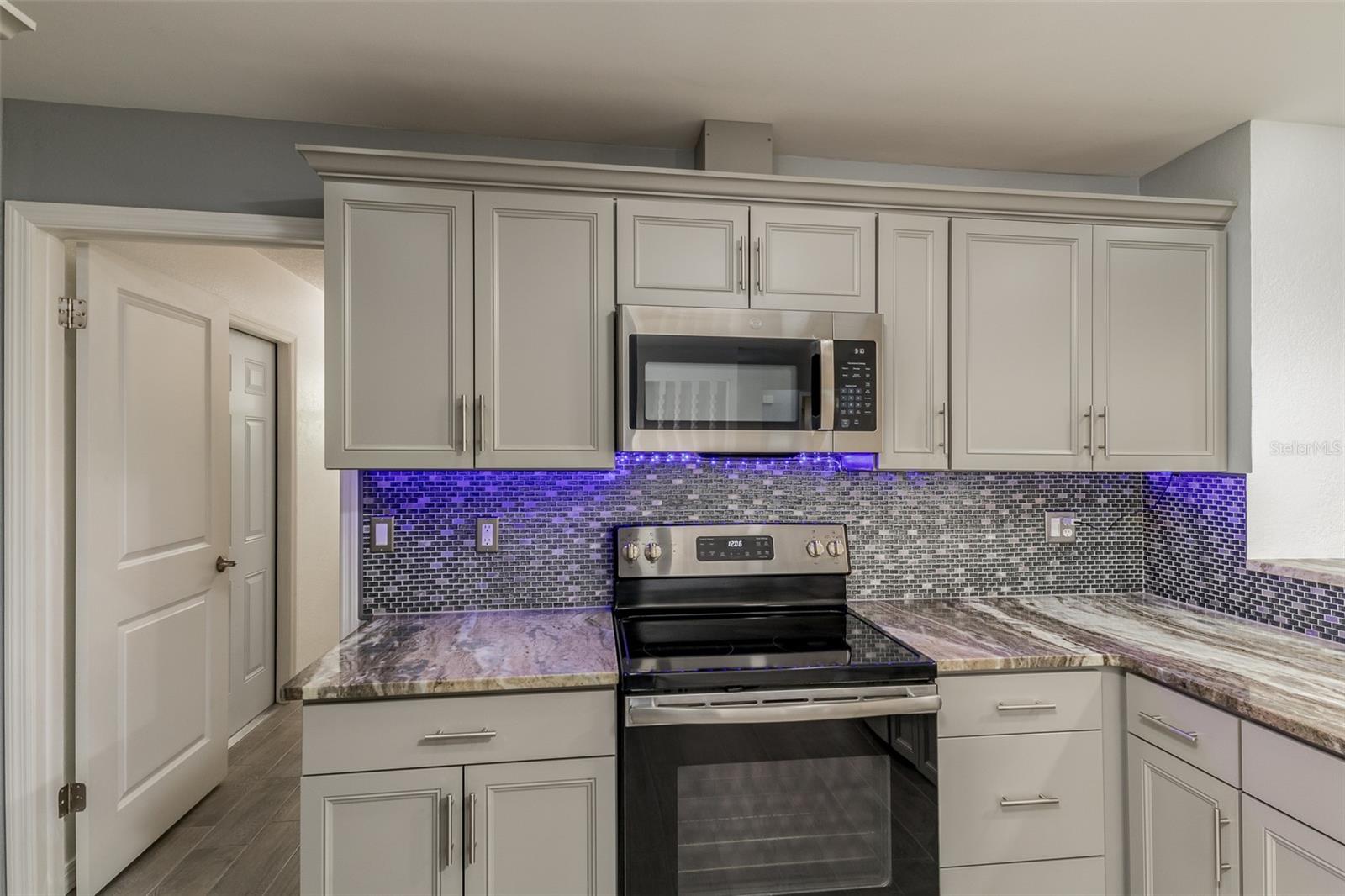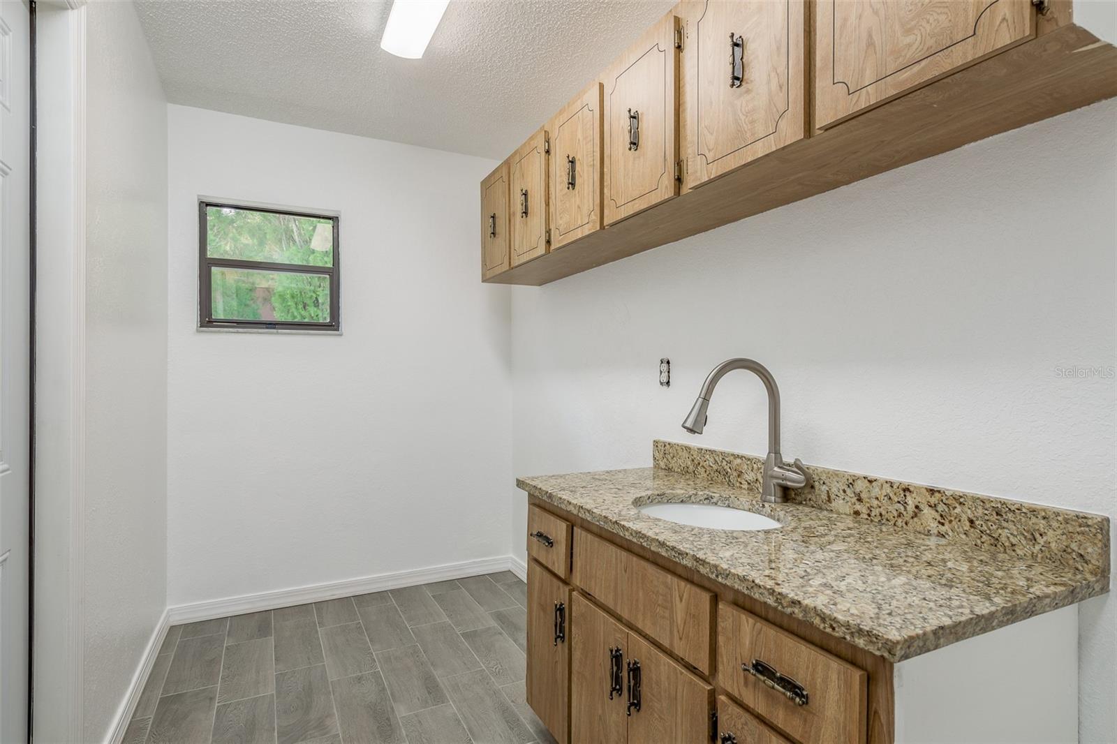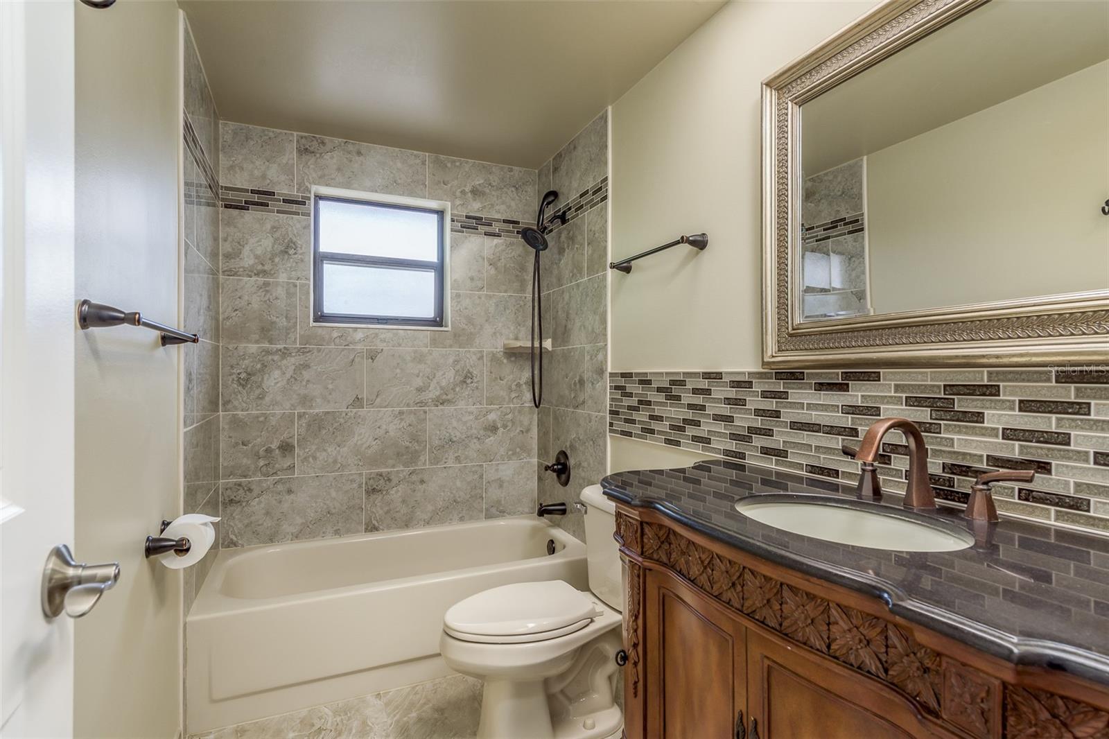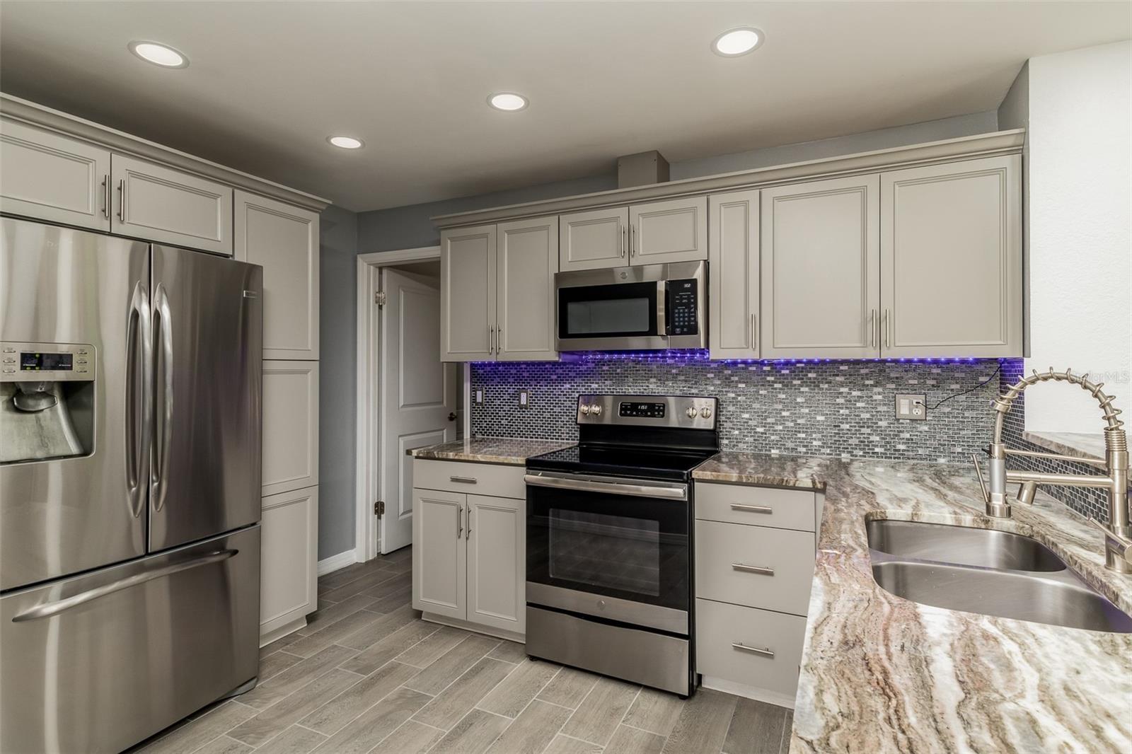 Welcome to your dream home! Nestled in a serene cul-de-sac, this stunning property offers a blend of modern elegance and practical living. With three spacious bedrooms, two beautifully updated bathrooms, and a two-car garage featuring an epoxy-painted floor and ample shelving for all your storage needs, this home is designed for comfort and convenience. As you approach, the stone accents on the exterior and the inviting courtyard-style front porch with pavers set the stage for the beauty that awaits inside. Step through the front door and be greeted by the luxurious designer wood plank tile floors that seamlessly flow through all the living areas. The focal point of the living room is the exquisite stone fireplace, complete with a mantel and a mounted TV and soundbar (which stay with the home), offering both aesthetic appeal and functional warmth on those rare chilly days. The open-plan design enhances the sense of spaciousness, making it perfect for entertaining guests. The adjacent dining area is ideally situated next to the kitchen, which boasts new cabinets, stainless steel appliances, granite countertops, a glass tile backsplash, stylish lighting, and a convenient breakfast bar. Additionally, there's a versatile small room with a vanity, sink, and cabinets that could serve as an excellent walk-in pantry.The thoughtful three-way split bedroom design ensures optimal privacy. The master bedroom features elegant laminate wood plank flooring, a generous closet, and a stunning en-suite bathroom with a double vanity, marble countertops, designer tile, and a walk-in shower. The other two bedrooms are equally spacious with ample closet space, and the second bathroom is tastefully updated with a beautiful vanity and intricate tile work in the tub and shower. The fully fenced backyard is perfect for outdoor activities. Freshly painted interior this year, and the new A/C system installed in 2023 adds to the home's appeal. Located close to shopping, dining, schools, medical facilities, golf courses, and of course, beautiful beaches, this home is a must-see. Schedule your appointment today and make this your new sanctuary!