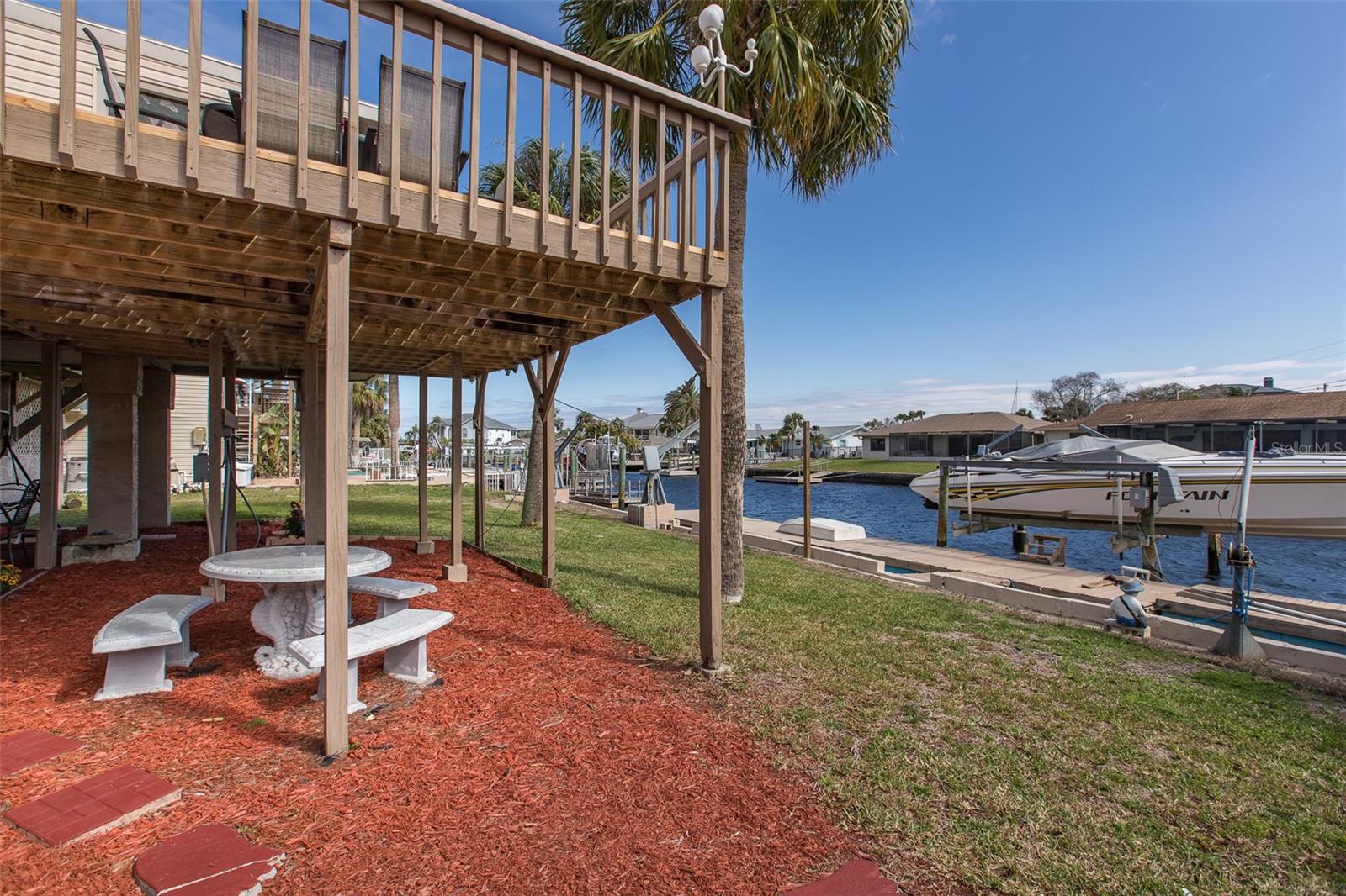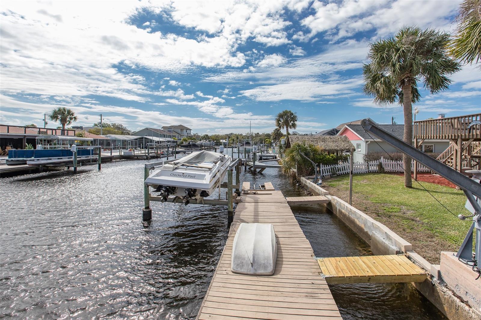 UNPRECEDENTED $100,000.00 PRICE REDUCTION! STILTED HOME LOW ,LOW FLOOD INSURANCE. DO NOT WAIT AND MISS OUT ON A DEEP WATER CANAL LOCATED IN BEAUTIFUL HARBOR ISLES!!! JUST MINUTES FROM THE GULF OF MEXICO!! LIVE THE WATERFRONT LIFESTYLE!!! ENJOY DAILY SUNSETS AND SUNRISES! This hard to find, BOATERS DREAM HOME awaits your arrival. Stilted for Flood Zone insurance savings. Situated on a .26 acre lot with plenty of room for a pool. The canal is one of the deepest canals in Port Richey with DIRECT ACCESS TO THE GULF OF MEXICO. Bring your BIG BOATS AND SAILBOATS. NO TIDAL RESTRICTIONS, NO BRIDGES IN THE WAY. Just jump in your boat and within minutes you are cruising in the OPEN GULF OF MEXICO. Maybe a mid afternoon boat ride down to CLEARWATER, Tarpon Springs, Madeira Beach or Weeki Wachee will excite you. Your OPTIONS and ADVENTURES are limitless. Or perhaps a leisurely ride down the Cottee River to Whiskey Joes, Hooters, Catches, Crab Shack, Sims Park and much more. The area is a waterfront boating community that is nestled in the beautiful neighborhood of HARBOR ISLES. A place to LOVE your neighbors and to call home. AND now to the home. This architecturally pleasing home is a gem. So unique, with amazing soaring cathedral ceilings, wood esthetics, beams and so much more. 2/2/2 with a possible 3 bedroom option in the LOFT area, WOOD BURNING STONE FIREPLACE. The homes CHARMS are endless. 3 balconies with incredible views, oversized back sundeck perfect for entertaining, LARGE !st floor space underneath with endless options. Can be turned into a possible 5 car garage, additional living space, or whatever your heart desires. Get captured by the ambiance of this beautiful, unique, HARD TO FIND HOME! Now let's talk about the fast growing area. The area has all your needs met, BEACHES, restaurants, shopping, medical facilities, Easy access to US Hwy 19 and now a straight shot to the SUNCOAST PKWY(completion of the RIDGE RD extension). SEE YOURSELF ENJOYING THIS DREAM LIFE! GOLF CART FRIENDLY COMMUNITY! CAN BE SOLD FURNISHED. LOW FLOOD INSURANCE!!!