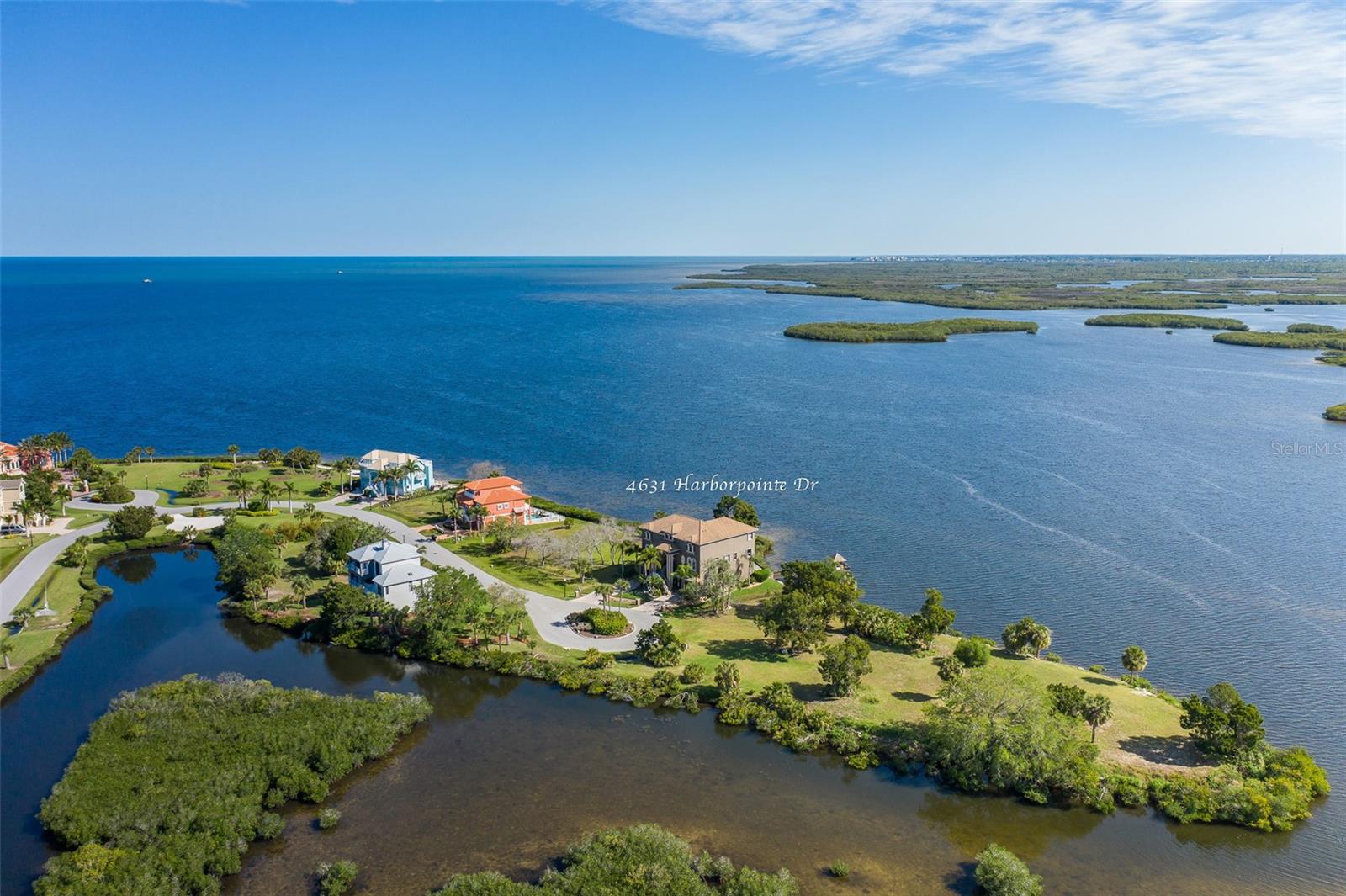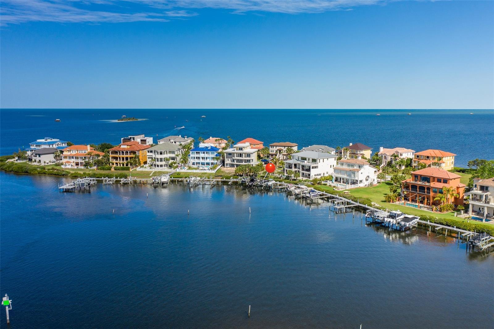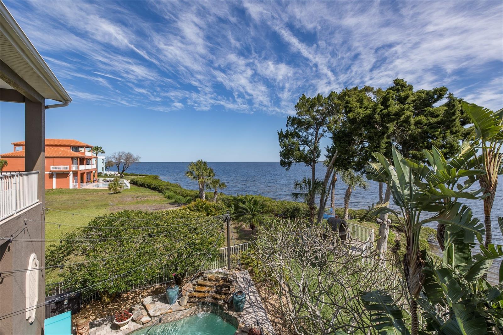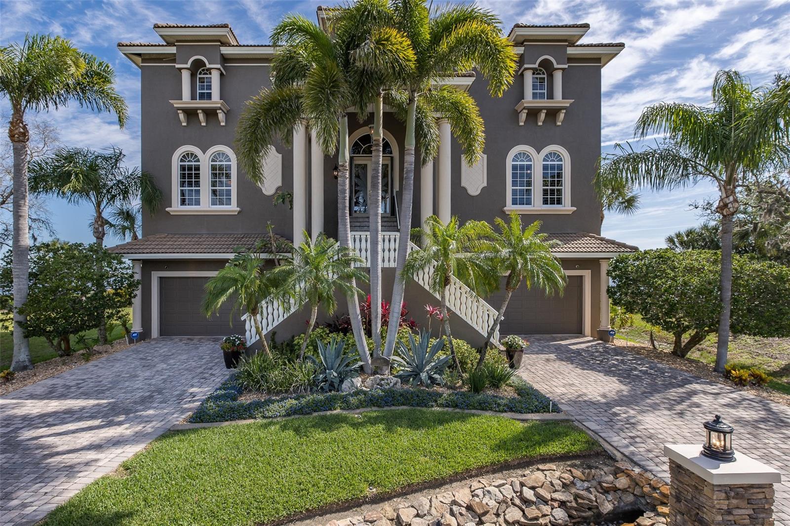REDUCED!! LIVE THE ULTIMATE SALT LIFE IN THIS GULF FRONT DREAM HOME IN DOUBLE GATED HARBORPOINTE! Enjoy the sweeping water views and the easy access DIRECT TO THE GULF from this elegant, waterfront home located in the double gated community of Harborpointe. Built to meticulous standards, this home is concrete block construction on all 3 levels from slab to roof and the list of extra features is extensive: 3 STOP ELEVATOR, sauna, climate controlled 800 bottle walk-in wine cellar, walk-in cigar humidor, central vacuum system, and a garage that will accommodate 7 vehicles, PLUS a separate storage room and another room ideal for a home gym or workshop/hobby space. Enter this home through double doors and step into the grand family room with finished in place hardwood floors, 23 foot ceilings, crown molding, a gas fireplace, a wet bar and glass doors leading to the balcony with gorgeous WIDE WATER VIEWS for as far as the the eye can see. The kitchen is appointed with wood cabinets, granite countertops, double wall ovens and a warming drawer. A generous sized dining room provides an ideal space for entertaining and the formal living room is yet another space to take in the exceptional water views. The grand, curved staircase leads up to the second level which is open to the first floor and features 2 additional bedrooms PLUS the luxurious master suite AND a separate, private den/office. The master suite has a gas fireplace, a private balcony with STUNNING Gulf views, and a wonderful spa-like bathroom complete with a jetted tub, a walk-in sauna, spacious closets with built in organizers and an oversized shower. When it's time to relax and unwind head outside to the gas heated POOL and SPA WITH WATERFALL, which is surrounded by lush foliage and offers privacy and more views of the water. There is an outdoor kitchen and a poolside gas fire pit and an observation deck and tiki hut that extends out over the water. A community marina provides an assigned boat slip #22 with a lift which will accommodate up to a 34 ft boat. Come enjoy the WATERFRONT LIFESTYLE with every possible comfort in place. This home has been meticulously maintained with many upgrades thoughtfully constructed with no detail overlooked. Soothing colors, neutral decor and plenty of natural light, this home is a must see! Upgrades: *New Stone sinks in Master Bedroom *New faucets in polished bronze *New cabinet hardware in polished bronze (hinges, pulls, and handles) *2 new a/c units *New gas hot water heater *New ceiling fans in all bedrooms, tiki hut, balconies and pool area *Pool converted to salt water *New aqualink installed for remote pool operation *New polaris pool cleaner *New pool fire feature and pool valves *New fireplace in family room *new touches faucet in kitchen and new faucets at each utility sink location *completely revamped tiki hut with new added structural support, custom railings, resin decking, underwater lighting, water, electric ladder and tv *New ADT alarm system with smoke detection *New Ring camera doorbell and at boat slip in Marina *upgraded landscaping and added stone as well as boulders installed along shoreline *New stainless steel grills (2) and upgraded outdoor kitchen on second level with grill, sink. electric hood vent with lighting *new landscape lighting with remote operation *tesla charging station *New added A/C vents installed on upper level *New ice makers and wine chillers