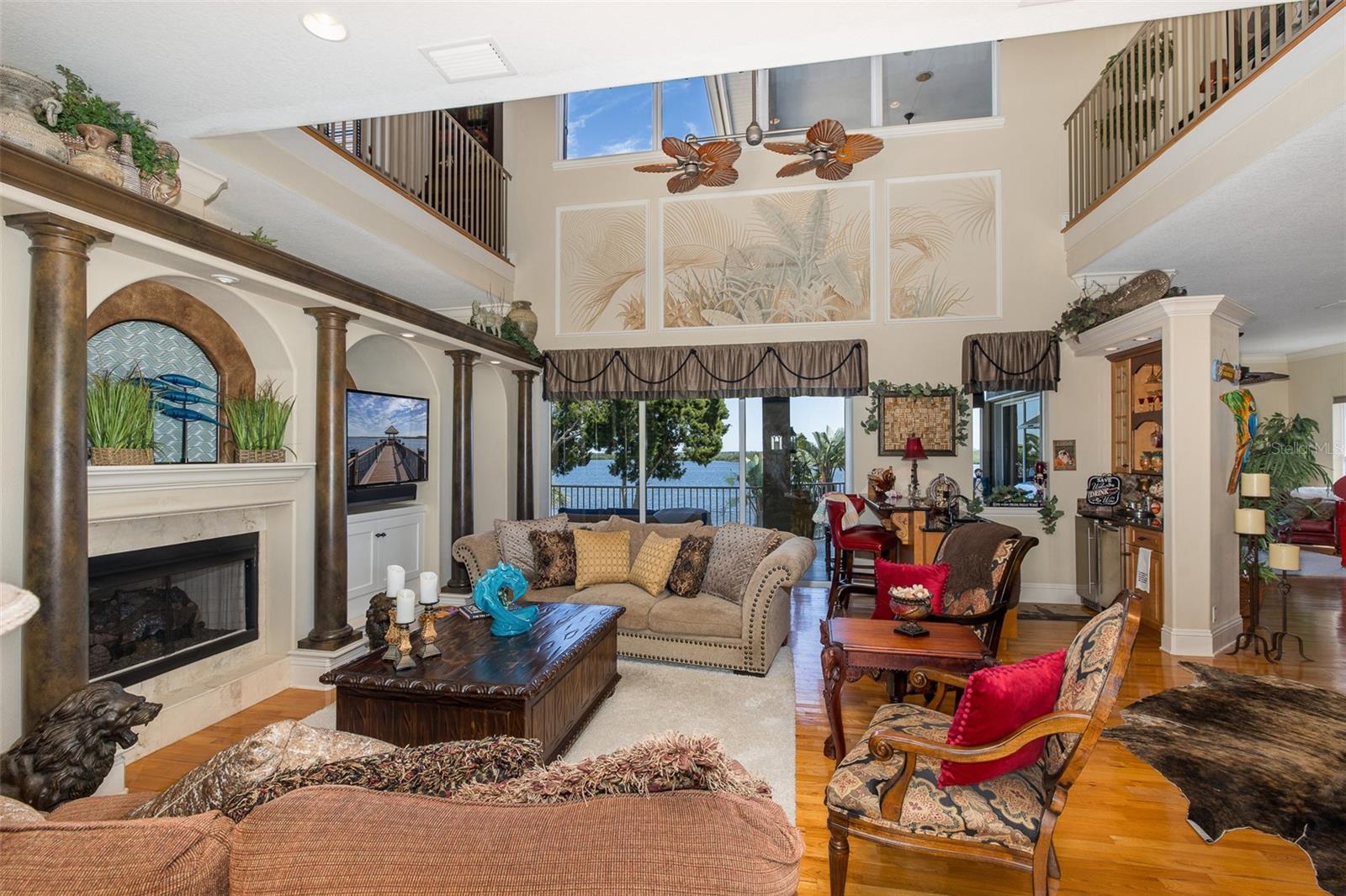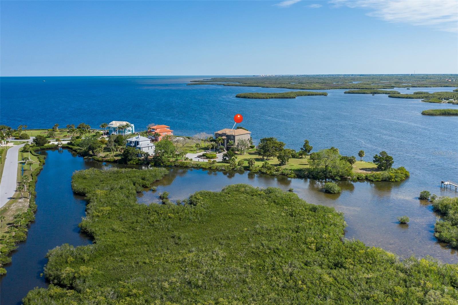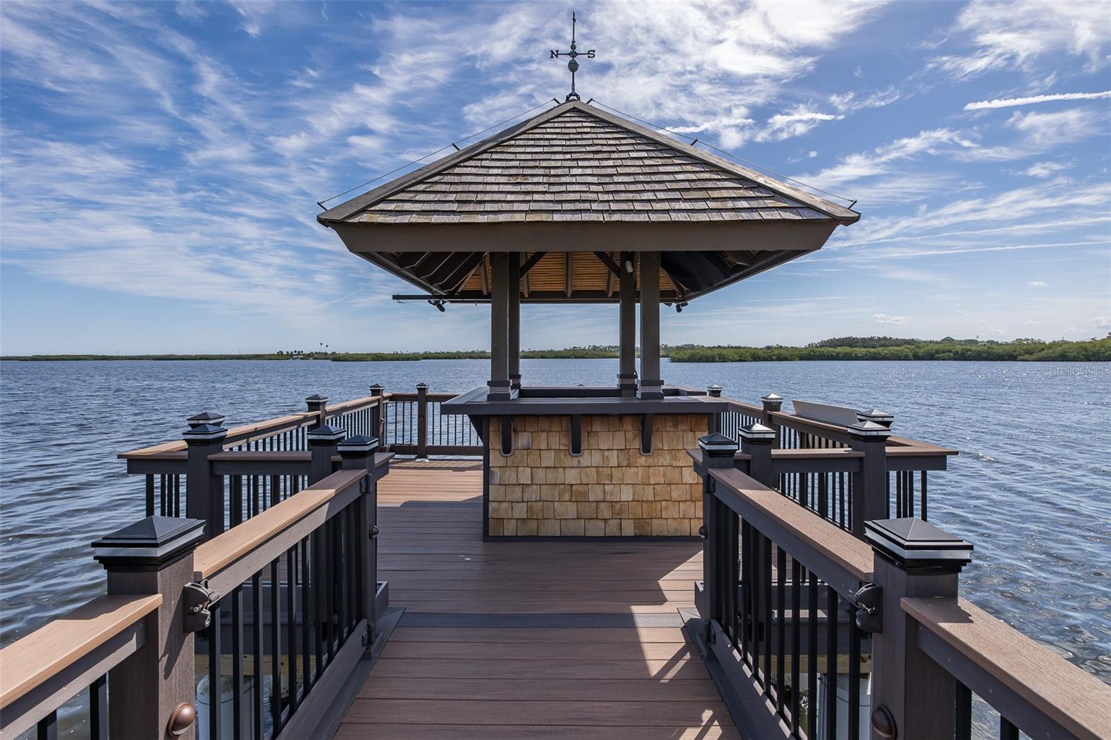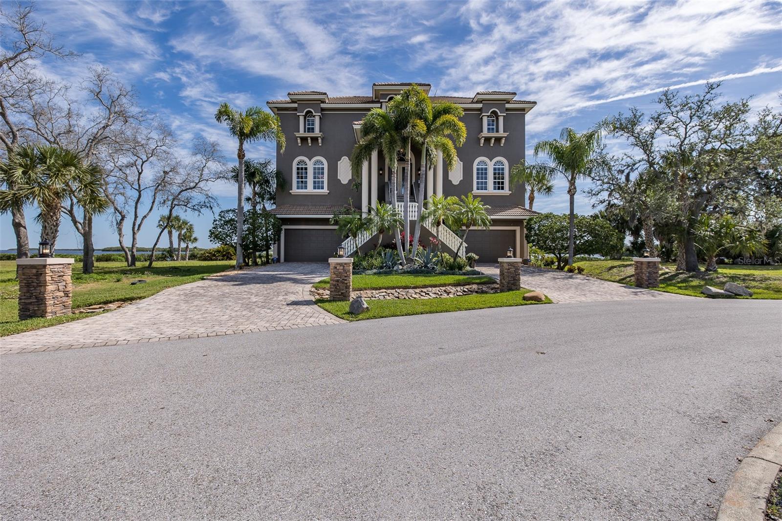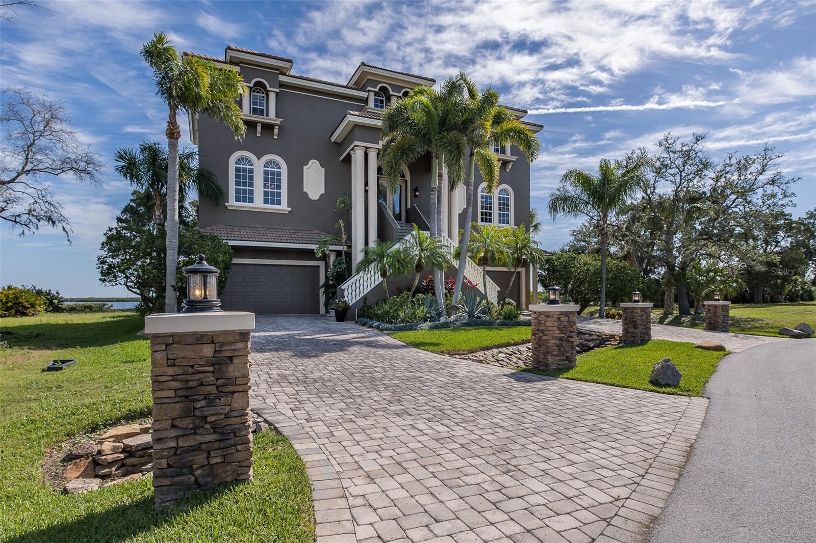 REDUCED!! LIVE THE ULTIMATE SALT LIFE IN THIS GULF FRONT DREAM HOME IN DOUBLE GATED HARBORPOINTE! Enjoy the sweeping water views and the easy access DIRECT TO THE GULF from this elegant, waterfront home located in the double gated community of Harborpointe. Built to meticulous standards, this home is concrete block construction on all 3 levels from slab to roof and the list of extra features is extensive: 3 STOP ELEVATOR, sauna, climate controlled 800 bottle walk-in wine cellar, walk-in cigar humidor, central vacuum system, and a garage that will accommodate 7 vehicles, PLUS a separate storage room and another room ideal for a home gym or workshop/hobby space. Enter this home through double doors and step into the grand family room with finished in place hardwood floors, 23 foot ceilings, crown molding, a gas fireplace, a wet bar and glass doors leading to the balcony with gorgeous WIDE WATER VIEWS for as far as the the eye can see. The kitchen is appointed with wood cabinets, granite countertops, double wall ovens and a warming drawer. A generous sized dining room provides an ideal space for entertaining and the formal living room is yet another space to take in the exceptional water views. The grand, curved staircase leads up to the second level which is open to the first floor and features 2 additional bedrooms PLUS the luxurious master suite AND a separate, private den/office. The master suite has a gas fireplace, a private balcony with STUNNING Gulf views, and a wonderful spa-like bathroom complete with a jetted tub, a walk-in sauna, spacious closets with built in organizers and an oversized shower. When it's time to relax and unwind head outside to the gas heated POOL and SPA WITH WATERFALL, which is surrounded by lush foliage and offers privacy and more views of the water. There is an outdoor kitchen and a poolside gas fire pit and an observation deck and tiki hut that extends out over the water. A community marina provides an assigned boat slip #22 with a lift which will accommodate up to a 34 ft boat. Come enjoy the WATERFRONT LIFESTYLE with every possible comfort in place. This home has been meticulously maintained with many upgrades thoughtfully constructed with no detail overlooked. Soothing colors, neutral decor and plenty of natural light, this home is a must see! Upgrades: *New Stone sinks in Master Bedroom *New faucets in polished bronze *New cabinet hardware in polished bronze (hinges, pulls, and handles) *2 new a/c units *New gas hot water heater *New ceiling fans in all bedrooms, tiki hut, balconies and pool area *Pool converted to salt water *New aqualink installed for remote pool operation *New polaris pool cleaner *New pool fire feature and pool valves *New fireplace in family room *new touches faucet in kitchen and new faucets at each utility sink location *completely revamped tiki hut with new added structural support, custom railings, resin decking, underwater lighting, water, electric ladder and tv *New ADT alarm system with smoke detection *New Ring camera doorbell and at boat slip in Marina *upgraded landscaping and added stone as well as boulders installed along shoreline *New stainless steel grills (2) and upgraded outdoor kitchen on second level with grill, sink. electric hood vent with lighting *new landscape lighting with remote operation *tesla charging station *New added A/C vents installed on upper level *New ice makers and wine chillers