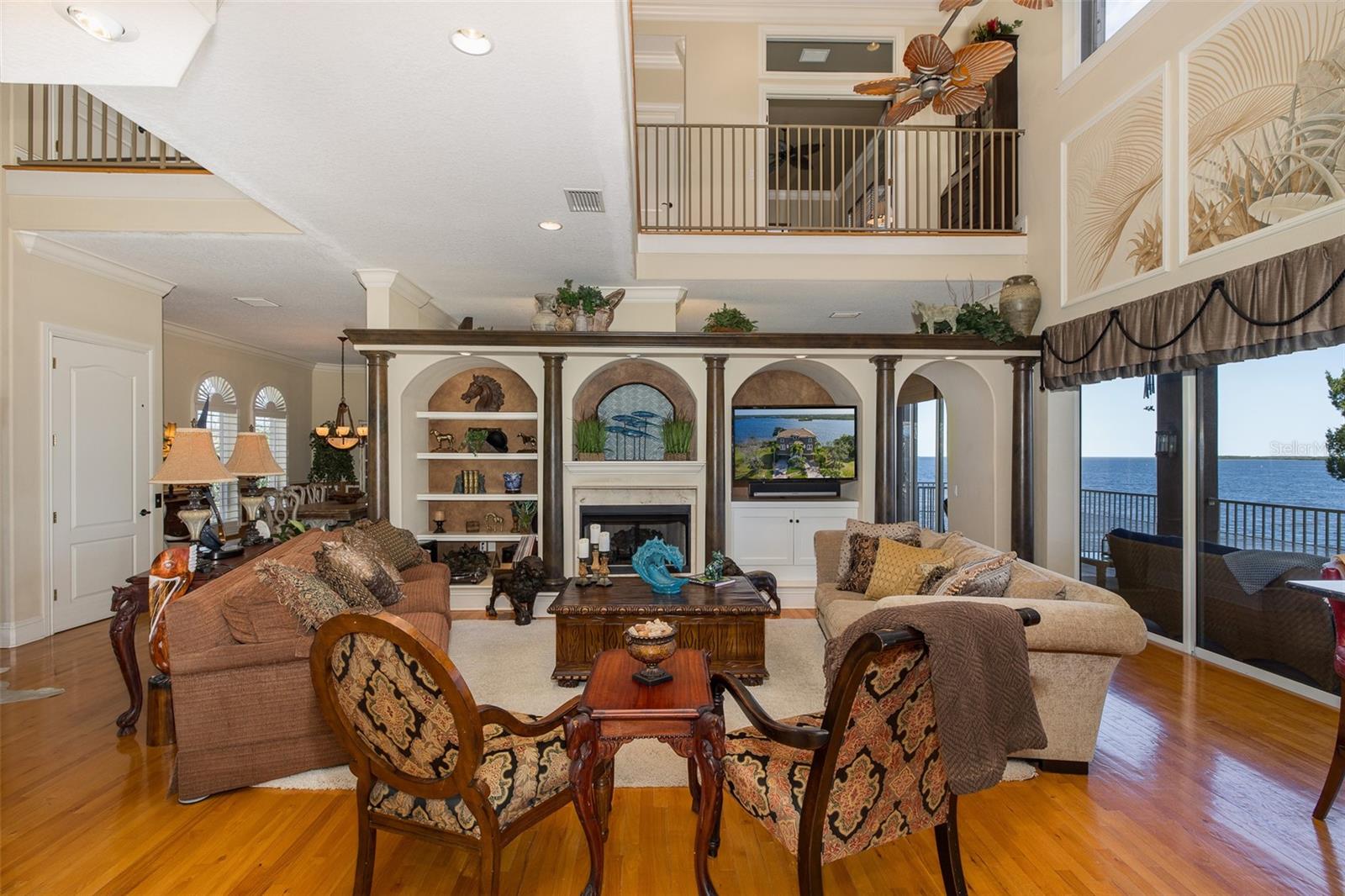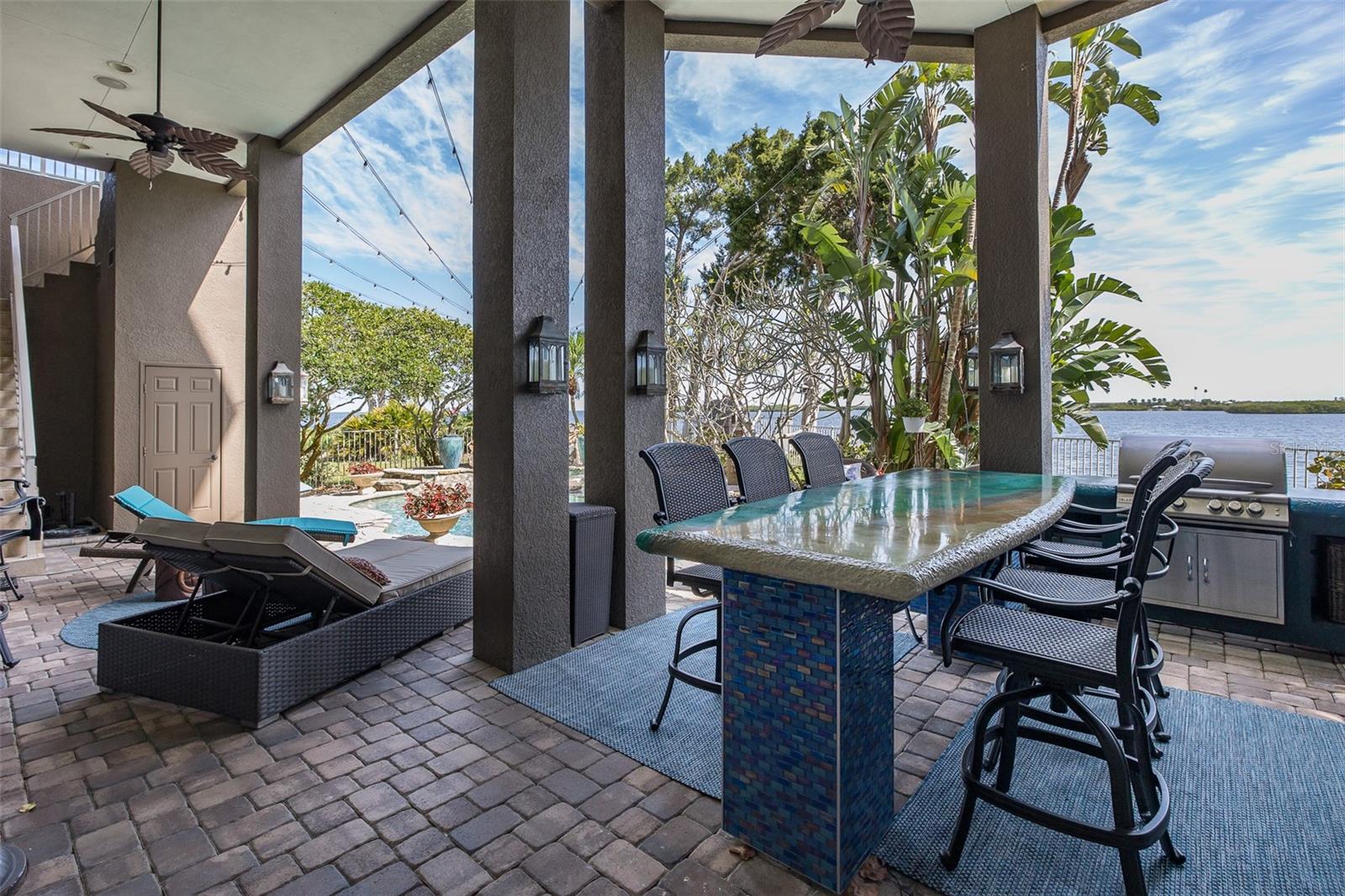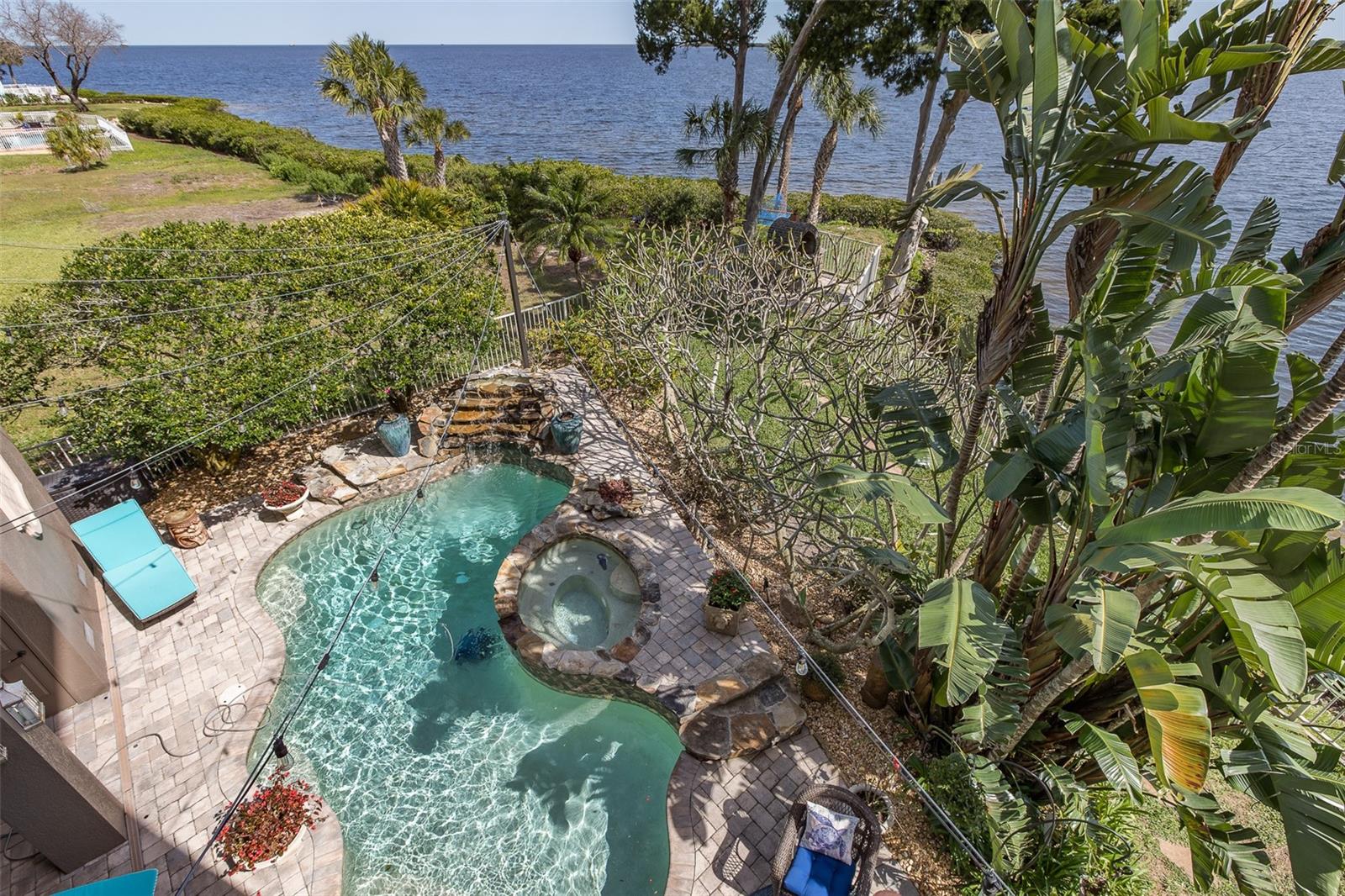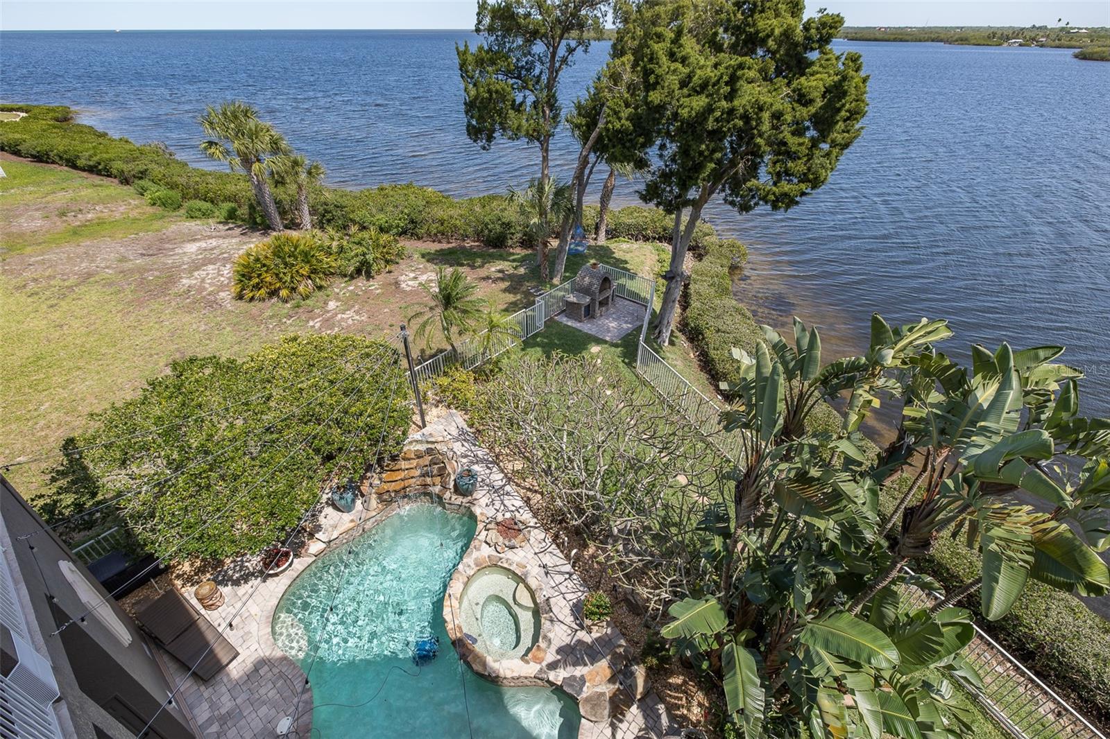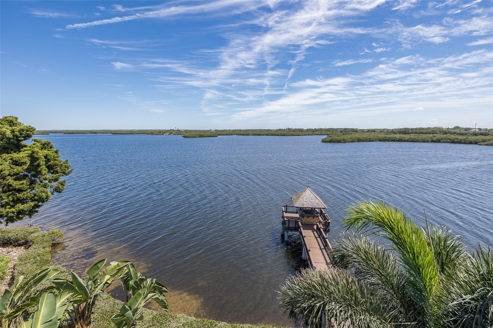 REDUCED!! LIVE THE ULTIMATE SALT LIFE IN THIS GULF FRONT DREAM HOME IN DOUBLE GATED HARBORPOINTE! Enjoy the sweeping water views and the easy access DIRECT TO THE GULF from this elegant, waterfront home located in the double gated community of Harborpointe. Built to meticulous standards, this home is concrete block construction on all 3 levels from slab to roof and the list of extra features is extensive: 3 STOP ELEVATOR, sauna, climate controlled 800 bottle walk-in wine cellar, walk-in cigar humidor, central vacuum system, and a garage that will accommodate 7 vehicles, PLUS a separate storage room and another room ideal for a home gym or workshop/hobby space. Enter this home through double doors and step into the grand family room with finished in place hardwood floors, 23 foot ceilings, crown molding, a gas fireplace, a wet bar and glass doors leading to the balcony with gorgeous WIDE WATER VIEWS for as far as the the eye can see. The kitchen is appointed with wood cabinets, granite countertops, double wall ovens and a warming drawer. A generous sized dining room provides an ideal space for entertaining and the formal living room is yet another space to take in the exceptional water views. The grand, curved staircase leads up to the second level which is open to the first floor and features 2 additional bedrooms PLUS the luxurious master suite AND a separate, private den/office. The master suite has a gas fireplace, a private balcony with STUNNING Gulf views, and a wonderful spa-like bathroom complete with a jetted tub, a walk-in sauna, spacious closets with built in organizers and an oversized shower. When it's time to relax and unwind head outside to the gas heated POOL and SPA WITH WATERFALL, which is surrounded by lush foliage and offers privacy and more views of the water. There is an outdoor kitchen and a poolside gas fire pit and an observation deck and tiki hut that extends out over the water. A community marina provides an assigned boat slip #22 with a lift which will accommodate up to a 34 ft boat. Come enjoy the WATERFRONT LIFESTYLE with every possible comfort in place. This home has been meticulously maintained with many upgrades thoughtfully constructed with no detail overlooked. Soothing colors, neutral decor and plenty of natural light, this home is a must see! Upgrades: *New Stone sinks in Master Bedroom *New faucets in polished bronze *New cabinet hardware in polished bronze (hinges, pulls, and handles) *2 new a/c units *New gas hot water heater *New ceiling fans in all bedrooms, tiki hut, balconies and pool area *Pool converted to salt water *New aqualink installed for remote pool operation *New polaris pool cleaner *New pool fire feature and pool valves *New fireplace in family room *new touches faucet in kitchen and new faucets at each utility sink location *completely revamped tiki hut with new added structural support, custom railings, resin decking, underwater lighting, water, electric ladder and tv *New ADT alarm system with smoke detection *New Ring camera doorbell and at boat slip in Marina *upgraded landscaping and added stone as well as boulders installed along shoreline *New stainless steel grills (2) and upgraded outdoor kitchen on second level with grill, sink. electric hood vent with lighting *new landscape lighting with remote operation *tesla charging station *New added A/C vents installed on upper level *New ice makers and wine chillers