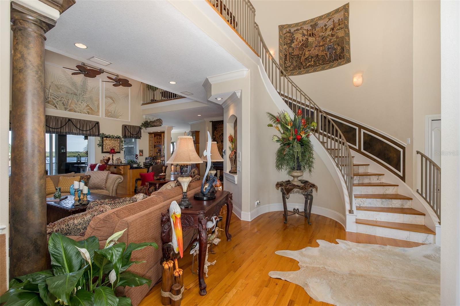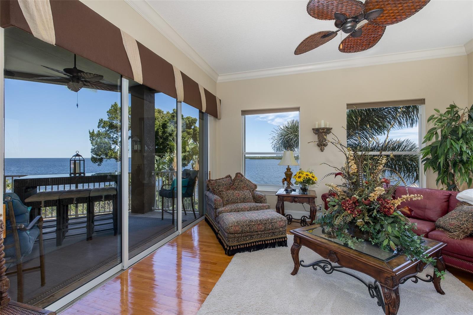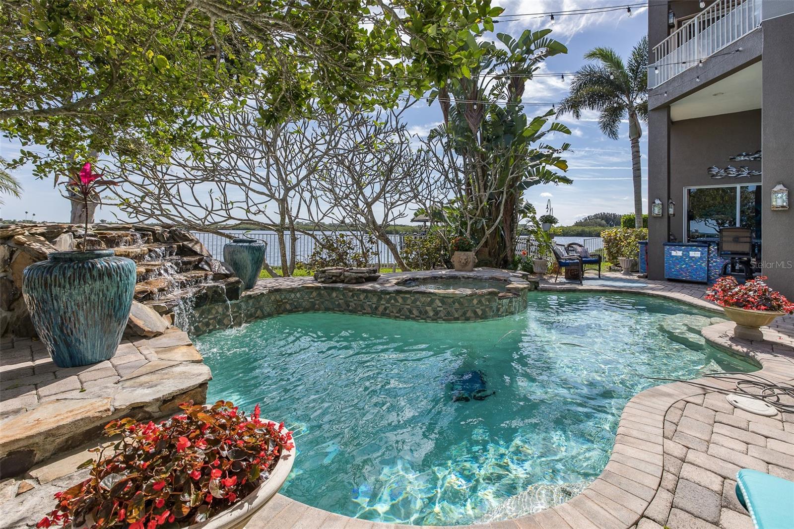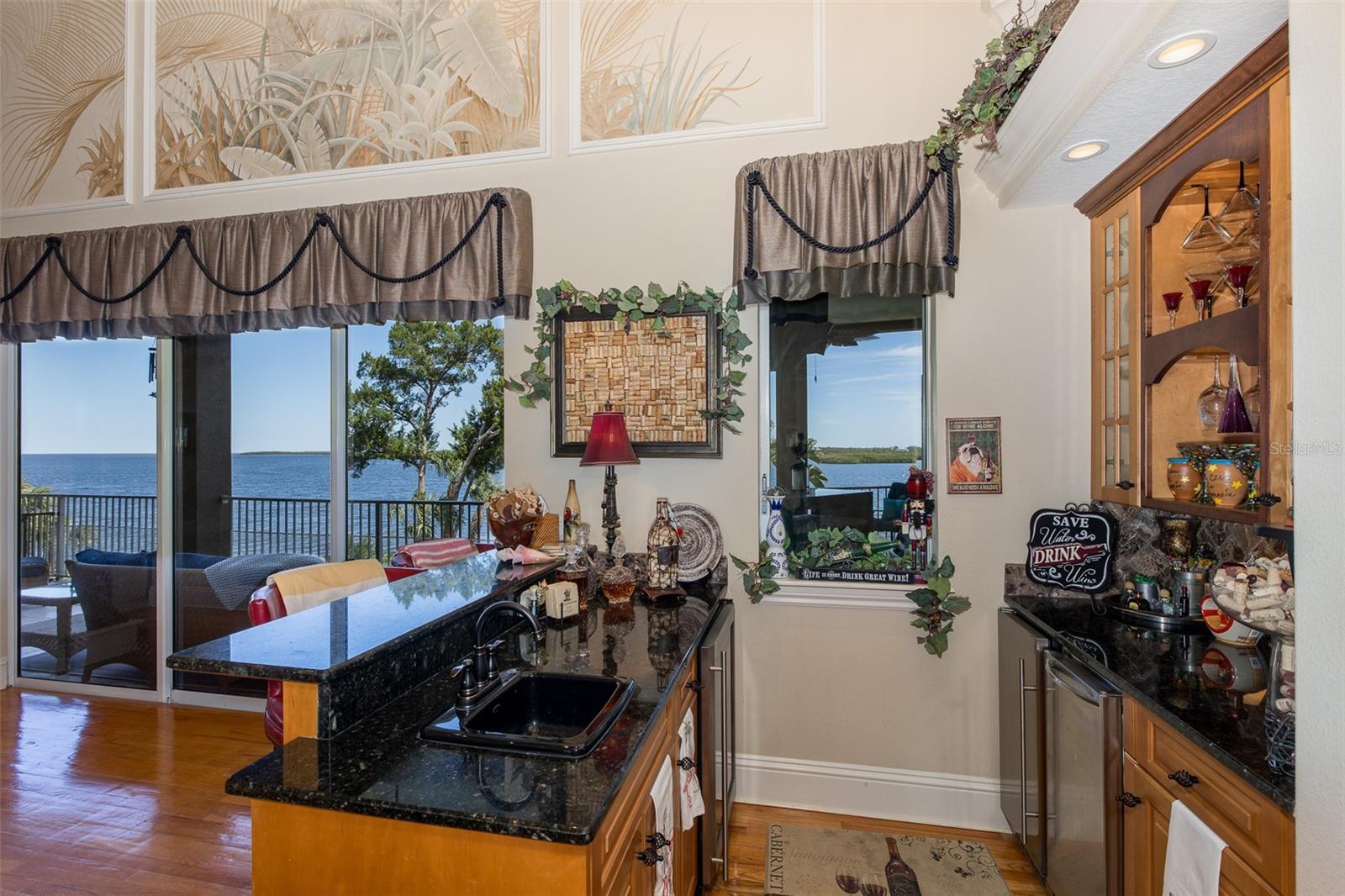 REDUCED!! LIVE THE ULTIMATE SALT LIFE IN THIS GULF FRONT DREAM HOME IN DOUBLE GATED HARBORPOINTE! Enjoy the sweeping water views and the easy access DIRECT TO THE GULF from this elegant, waterfront home located in the double gated community of Harborpointe. Built to meticulous standards, this home is concrete block construction on all 3 levels from slab to roof and the list of extra features is extensive: 3 STOP ELEVATOR, sauna, climate controlled 800 bottle walk-in wine cellar, walk-in cigar humidor, central vacuum system, and a garage that will accommodate 7 vehicles, PLUS a separate storage room and another room ideal for a home gym or workshop/hobby space. Enter this home through double doors and step into the grand family room with finished in place hardwood floors, 23 foot ceilings, crown molding, a gas fireplace, a wet bar and glass doors leading to the balcony with gorgeous WIDE WATER VIEWS for as far as the the eye can see. The kitchen is appointed with wood cabinets, granite countertops, double wall ovens and a warming drawer. A generous sized dining room provides an ideal space for entertaining and the formal living room is yet another space to take in the exceptional water views. The grand, curved staircase leads up to the second level which is open to the first floor and features 2 additional bedrooms PLUS the luxurious master suite AND a separate, private den/office. The master suite has a gas fireplace, a private balcony with STUNNING Gulf views, and a wonderful spa-like bathroom complete with a jetted tub, a walk-in sauna, spacious closets with built in organizers and an oversized shower. When it's time to relax and unwind head outside to the gas heated POOL and SPA WITH WATERFALL, which is surrounded by lush foliage and offers privacy and more views of the water. There is an outdoor kitchen and a poolside gas fire pit and an observation deck and tiki hut that extends out over the water. A community marina provides an assigned boat slip #22 with a lift which will accommodate up to a 34 ft boat. Come enjoy the WATERFRONT LIFESTYLE with every possible comfort in place. This home has been meticulously maintained with many upgrades thoughtfully constructed with no detail overlooked. Soothing colors, neutral decor and plenty of natural light, this home is a must see! Upgrades: *New Stone sinks in Master Bedroom *New faucets in polished bronze *New cabinet hardware in polished bronze (hinges, pulls, and handles) *2 new a/c units *New gas hot water heater *New ceiling fans in all bedrooms, tiki hut, balconies and pool area *Pool converted to salt water *New aqualink installed for remote pool operation *New polaris pool cleaner *New pool fire feature and pool valves *New fireplace in family room *new touches faucet in kitchen and new faucets at each utility sink location *completely revamped tiki hut with new added structural support, custom railings, resin decking, underwater lighting, water, electric ladder and tv *New ADT alarm system with smoke detection *New Ring camera doorbell and at boat slip in Marina *upgraded landscaping and added stone as well as boulders installed along shoreline *New stainless steel grills (2) and upgraded outdoor kitchen on second level with grill, sink. electric hood vent with lighting *new landscape lighting with remote operation *tesla charging station *New added A/C vents installed on upper level *New ice makers and wine chillers