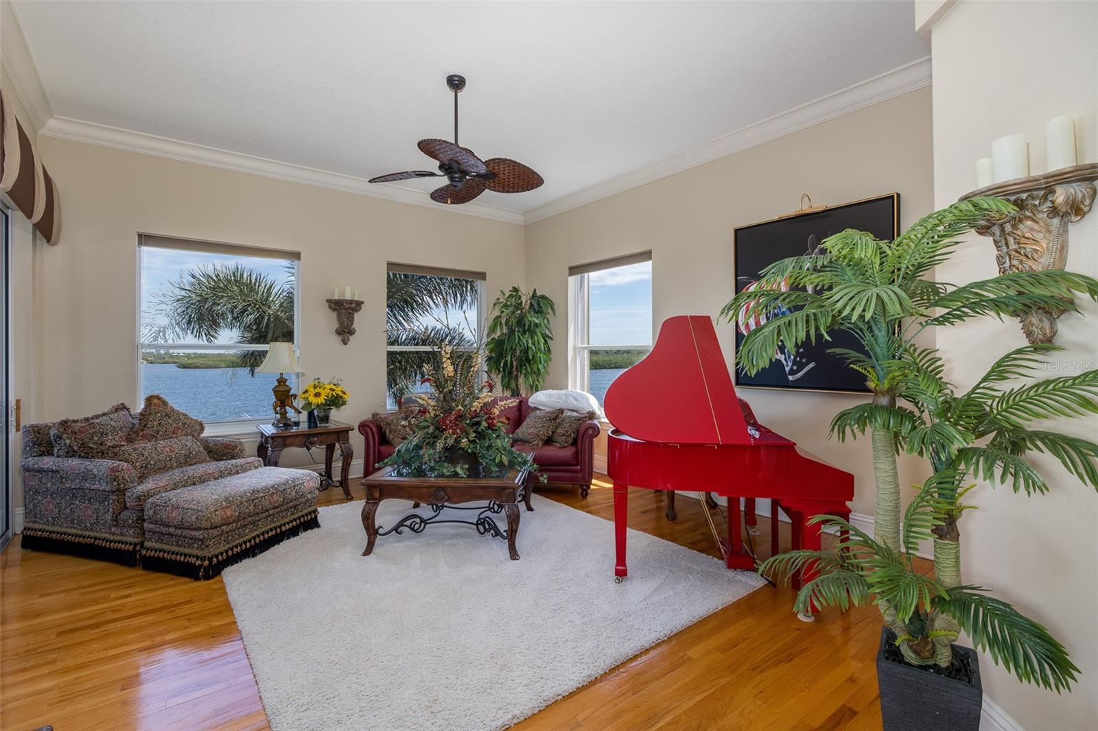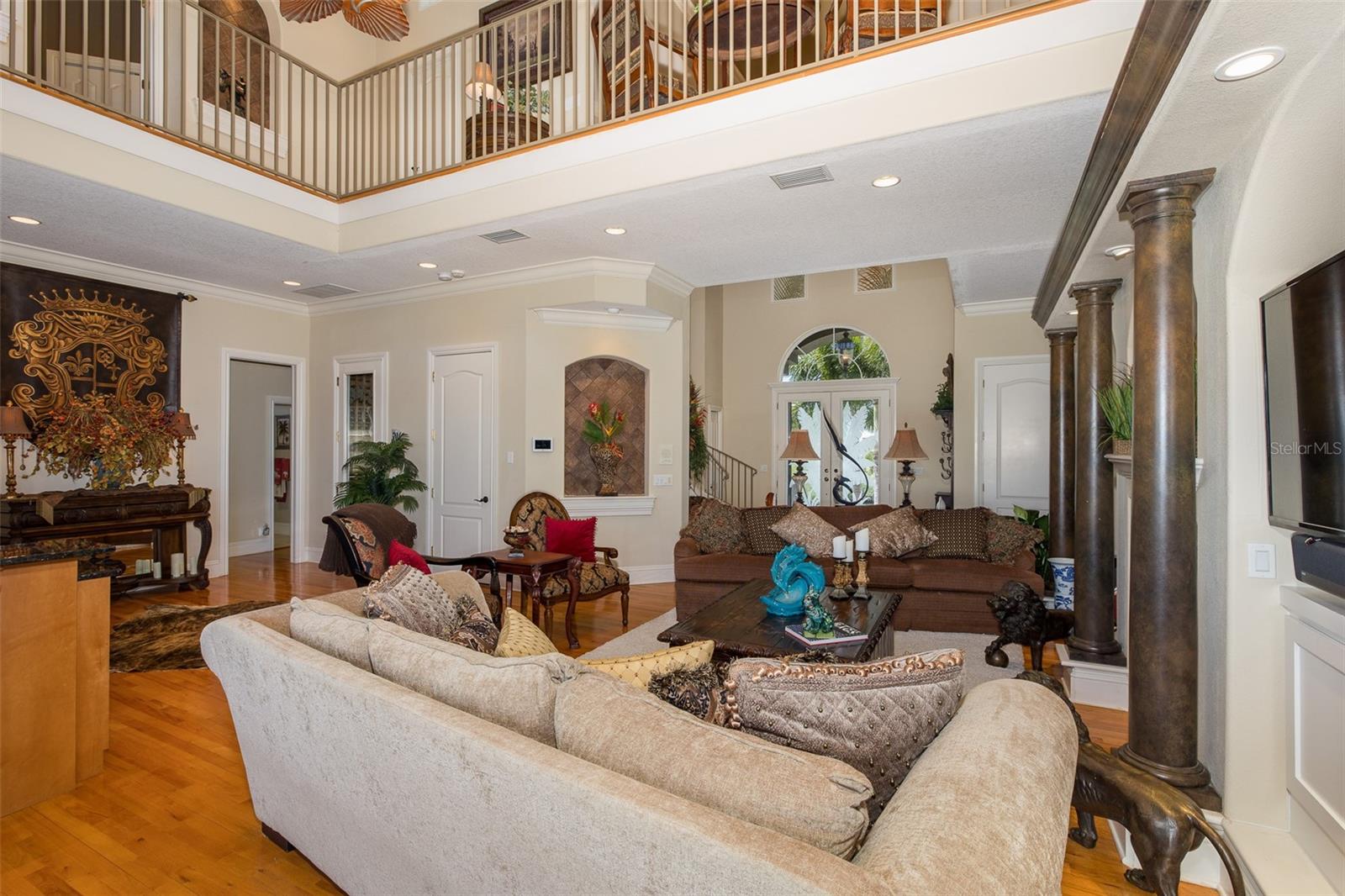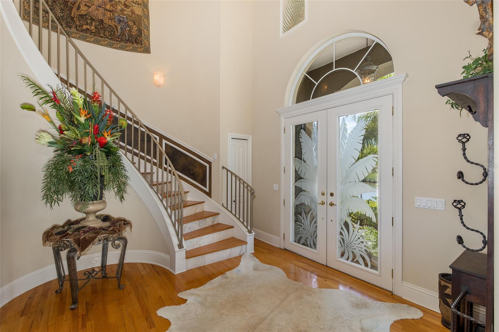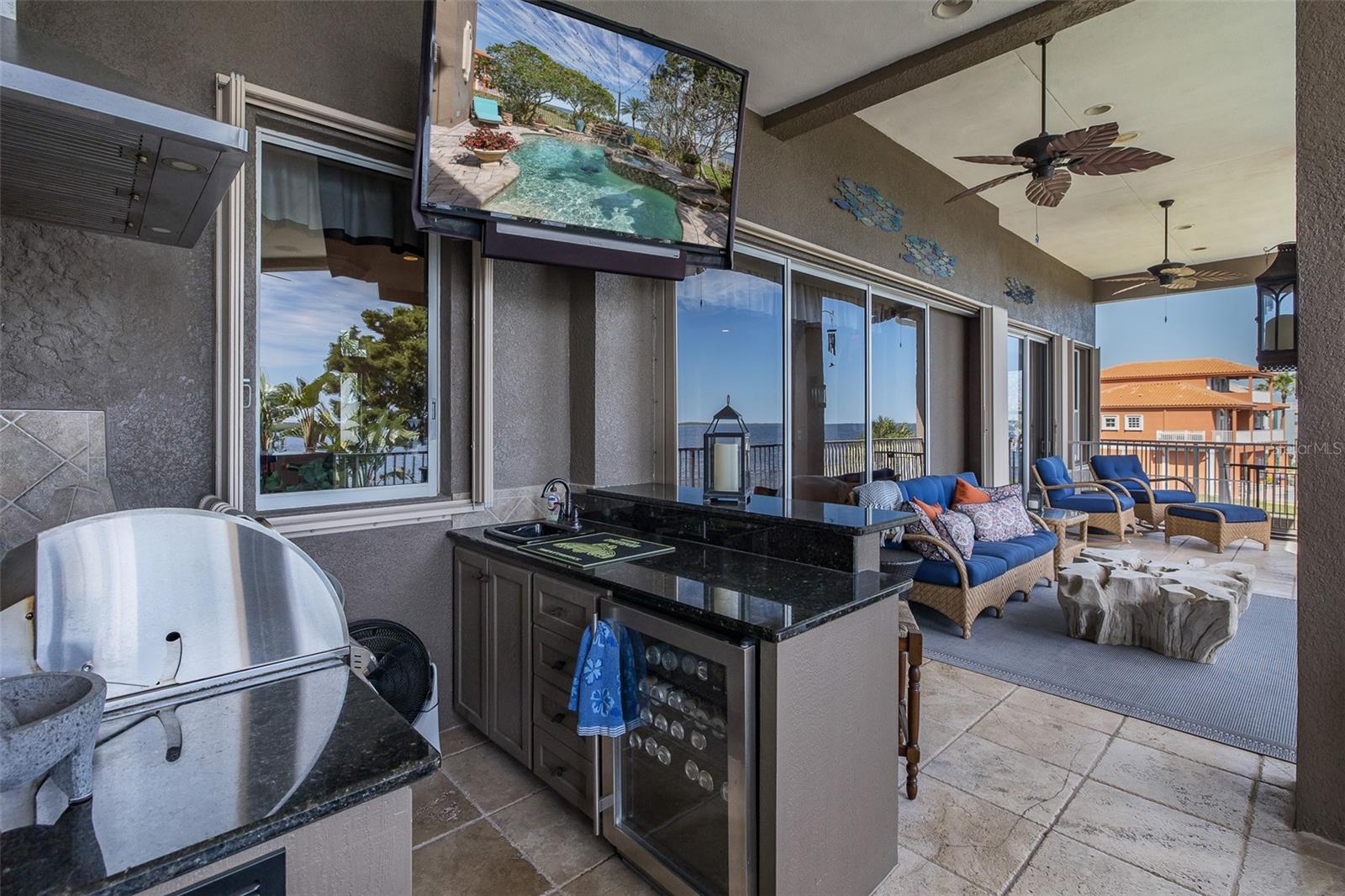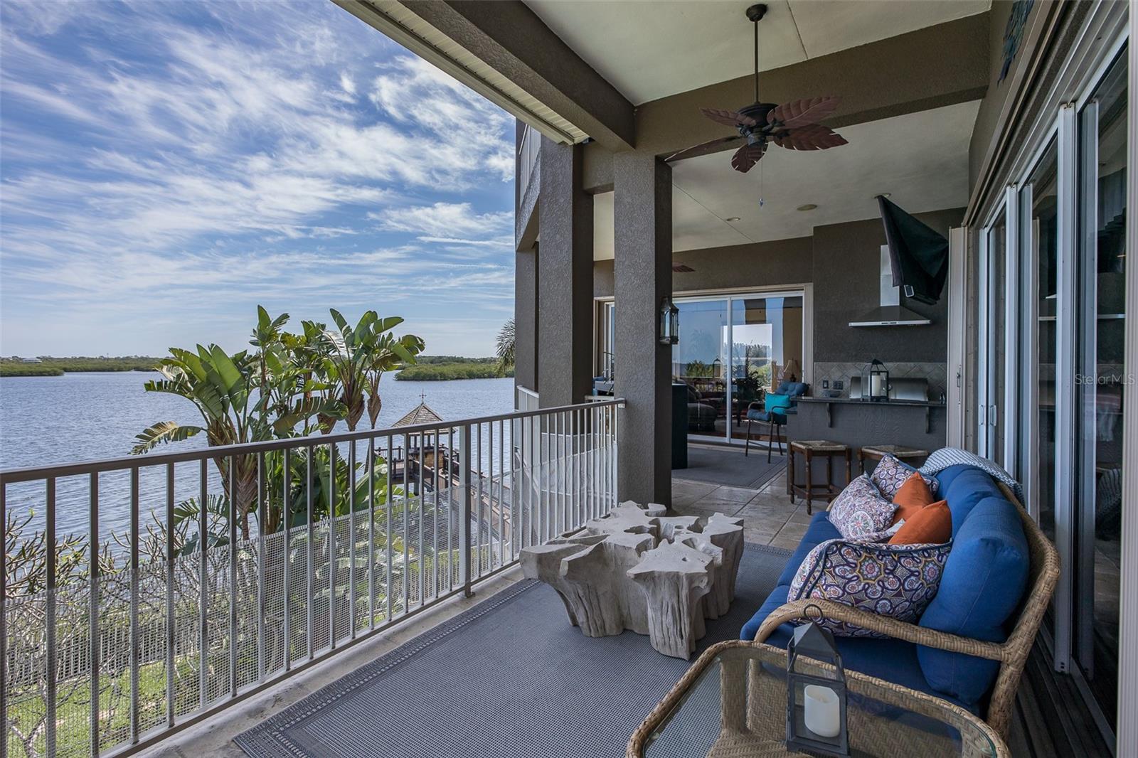 REDUCED!! LIVE THE ULTIMATE SALT LIFE IN THIS GULF FRONT DREAM HOME IN DOUBLE GATED HARBORPOINTE! Enjoy the sweeping water views and the easy access DIRECT TO THE GULF from this elegant, waterfront home located in the double gated community of Harborpointe. Built to meticulous standards, this home is concrete block construction on all 3 levels from slab to roof and the list of extra features is extensive: 3 STOP ELEVATOR, sauna, climate controlled 800 bottle walk-in wine cellar, walk-in cigar humidor, central vacuum system, and a garage that will accommodate 7 vehicles, PLUS a separate storage room and another room ideal for a home gym or workshop/hobby space. Enter this home through double doors and step into the grand family room with finished in place hardwood floors, 23 foot ceilings, crown molding, a gas fireplace, a wet bar and glass doors leading to the balcony with gorgeous WIDE WATER VIEWS for as far as the the eye can see. The kitchen is appointed with wood cabinets, granite countertops, double wall ovens and a warming drawer. A generous sized dining room provides an ideal space for entertaining and the formal living room is yet another space to take in the exceptional water views. The grand, curved staircase leads up to the second level which is open to the first floor and features 2 additional bedrooms PLUS the luxurious master suite AND a separate, private den/office. The master suite has a gas fireplace, a private balcony with STUNNING Gulf views, and a wonderful spa-like bathroom complete with a jetted tub, a walk-in sauna, spacious closets with built in organizers and an oversized shower. When it's time to relax and unwind head outside to the gas heated POOL and SPA WITH WATERFALL, which is surrounded by lush foliage and offers privacy and more views of the water. There is an outdoor kitchen and a poolside gas fire pit and an observation deck and tiki hut that extends out over the water. A community marina provides an assigned boat slip #22 with a lift which will accommodate up to a 34 ft boat. Come enjoy the WATERFRONT LIFESTYLE with every possible comfort in place. This home has been meticulously maintained with many upgrades thoughtfully constructed with no detail overlooked. Soothing colors, neutral decor and plenty of natural light, this home is a must see! Upgrades: *New Stone sinks in Master Bedroom *New faucets in polished bronze *New cabinet hardware in polished bronze (hinges, pulls, and handles) *2 new a/c units *New gas hot water heater *New ceiling fans in all bedrooms, tiki hut, balconies and pool area *Pool converted to salt water *New aqualink installed for remote pool operation *New polaris pool cleaner *New pool fire feature and pool valves *New fireplace in family room *new touches faucet in kitchen and new faucets at each utility sink location *completely revamped tiki hut with new added structural support, custom railings, resin decking, underwater lighting, water, electric ladder and tv *New ADT alarm system with smoke detection *New Ring camera doorbell and at boat slip in Marina *upgraded landscaping and added stone as well as boulders installed along shoreline *New stainless steel grills (2) and upgraded outdoor kitchen on second level with grill, sink. electric hood vent with lighting *new landscape lighting with remote operation *tesla charging station *New added A/C vents installed on upper level *New ice makers and wine chillers