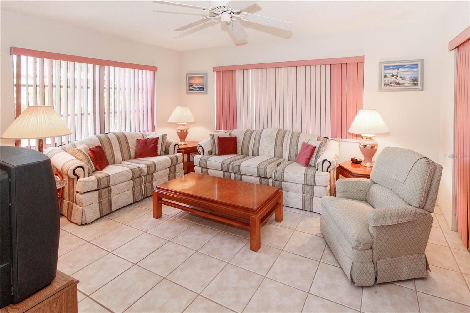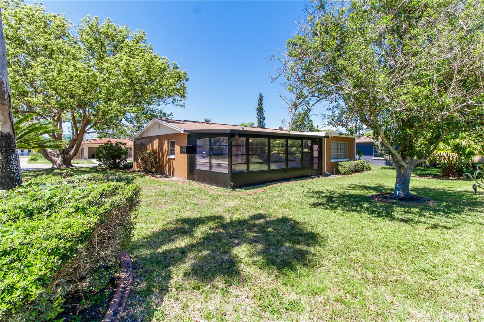 Nestled in a serene neighborhood, this well-maintained home is located on a desirable corner lot. Boasting 2 generous sized bedrooms with walk in closets in both, 2 full baths and a large fully enclosed lanai with a window a/c unit adding an additional 240 sq feet of living space. Experience the joy of indoor-outdoor living with a sun porch bathed in natural light from all angles, offering the ideal spot for relaxation or entertainment. Additionally, the Florida room, with its sliding door leading to the sun porch, adds extra versatility to the living space. This home has a nice open floor plan that includes a formal living room, Florida room, dining area, kitchen with pantry and tile throughout. Updates include a new hot water heater, new roof and a freshly painted exterior, ensuring comfort and curb appeal. Plus, a new roof was just installed, providing peace of mind for the years ahead. With its impeccable maintenance and inviting ambiance, this home is ready to welcome you with open arms. Don't miss the chance to make it yours and create lasting memories in this cozy haven! Home has a fully repaired sink hole with engineer report in hand.