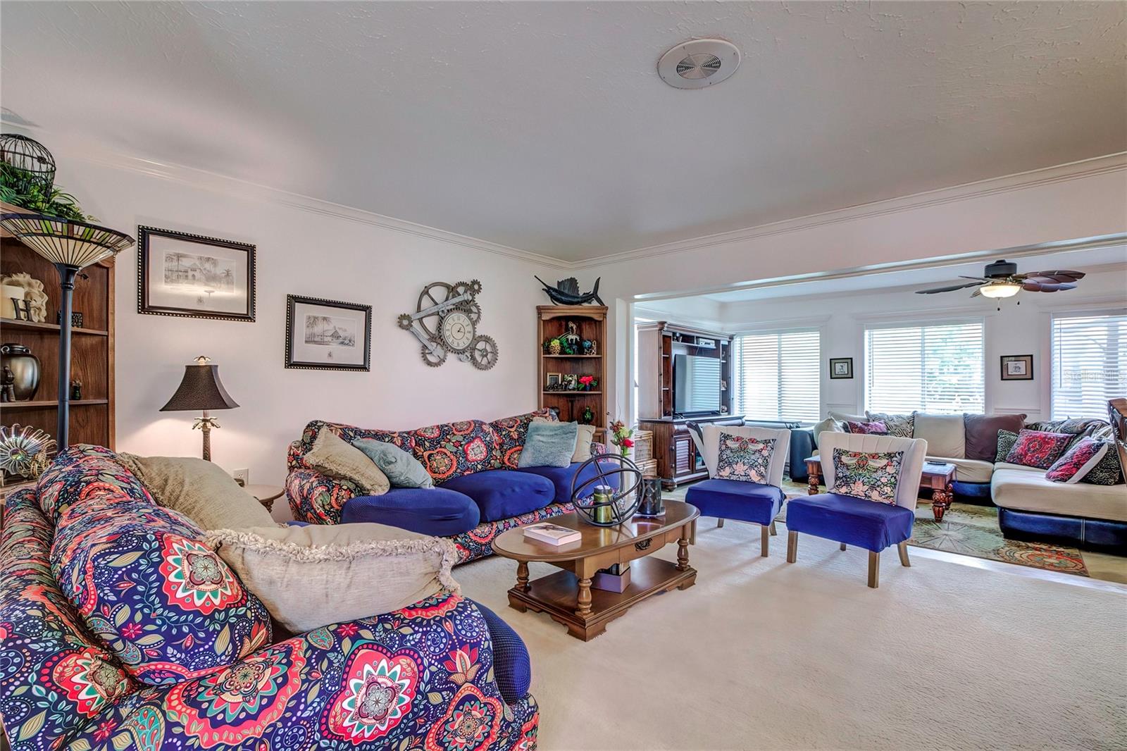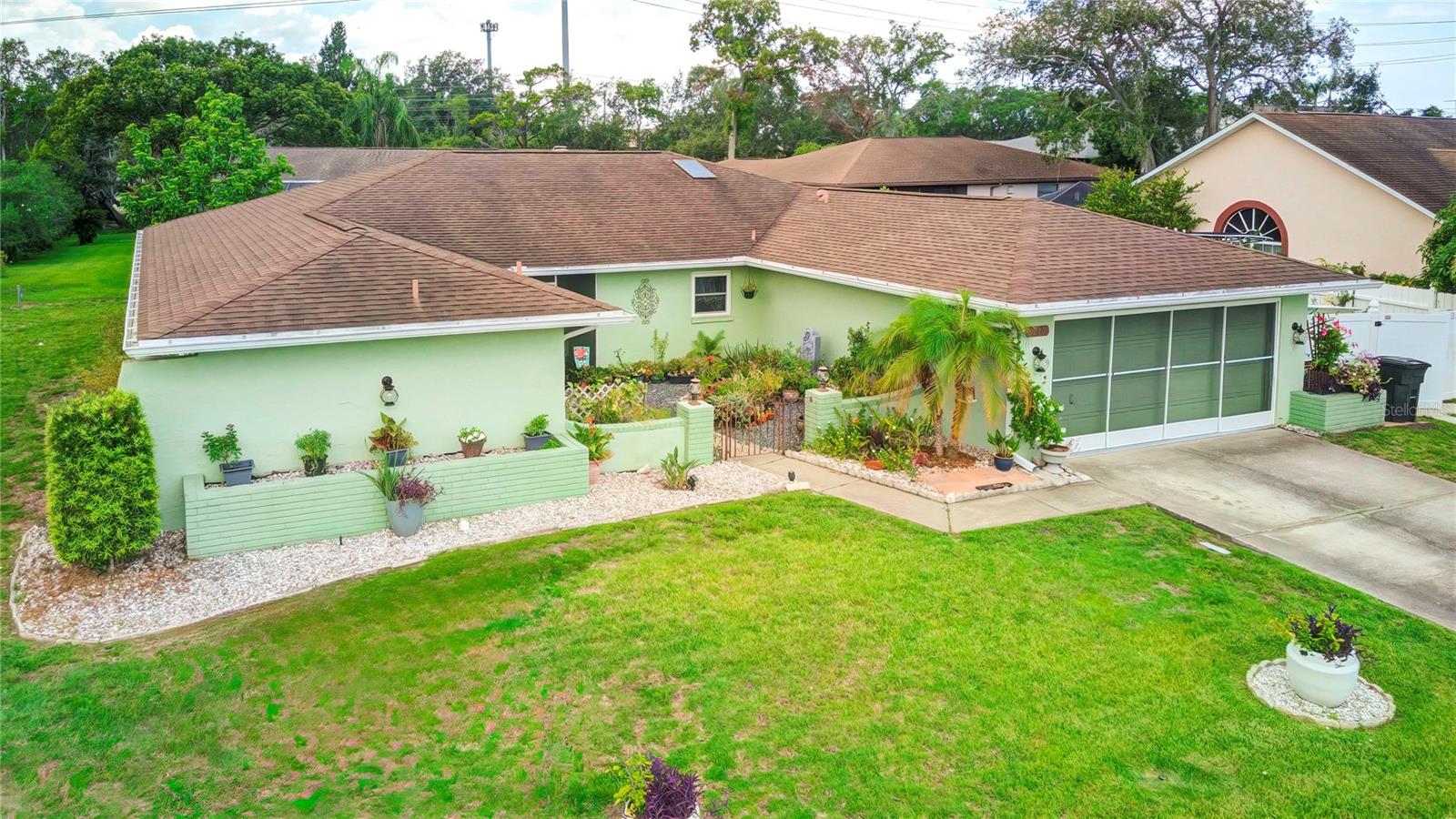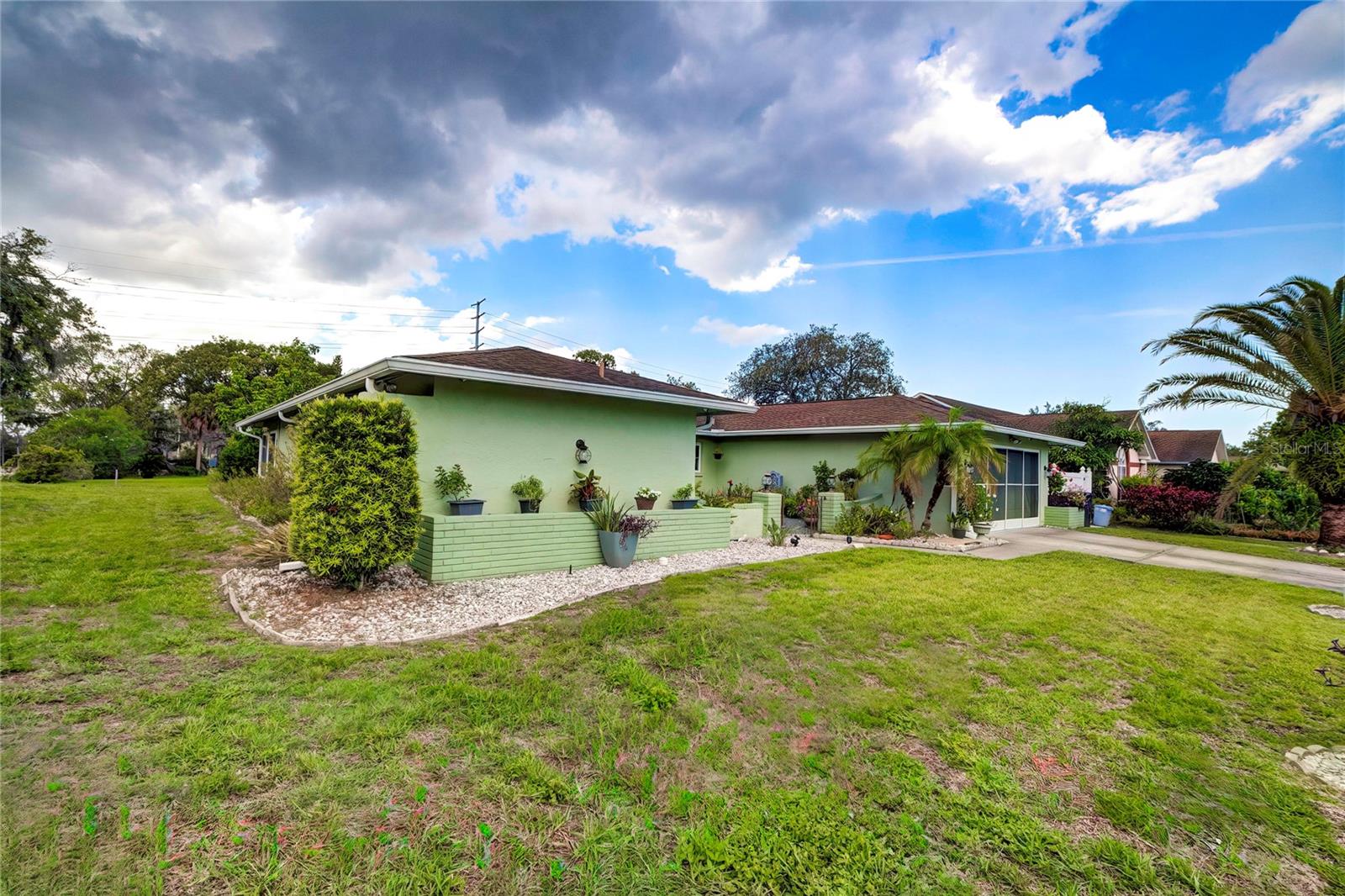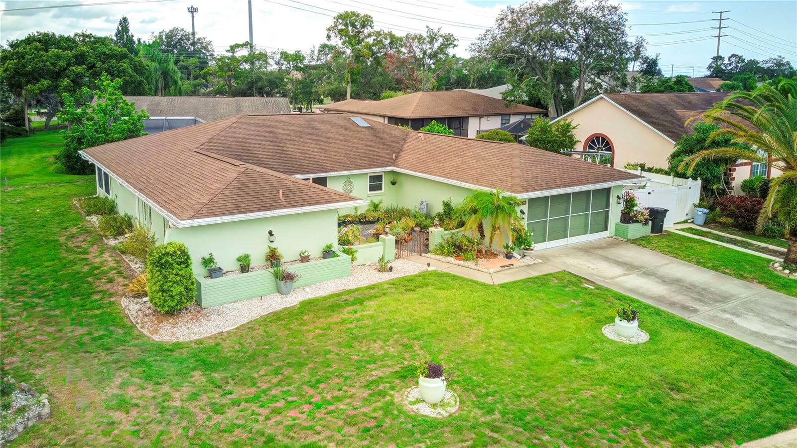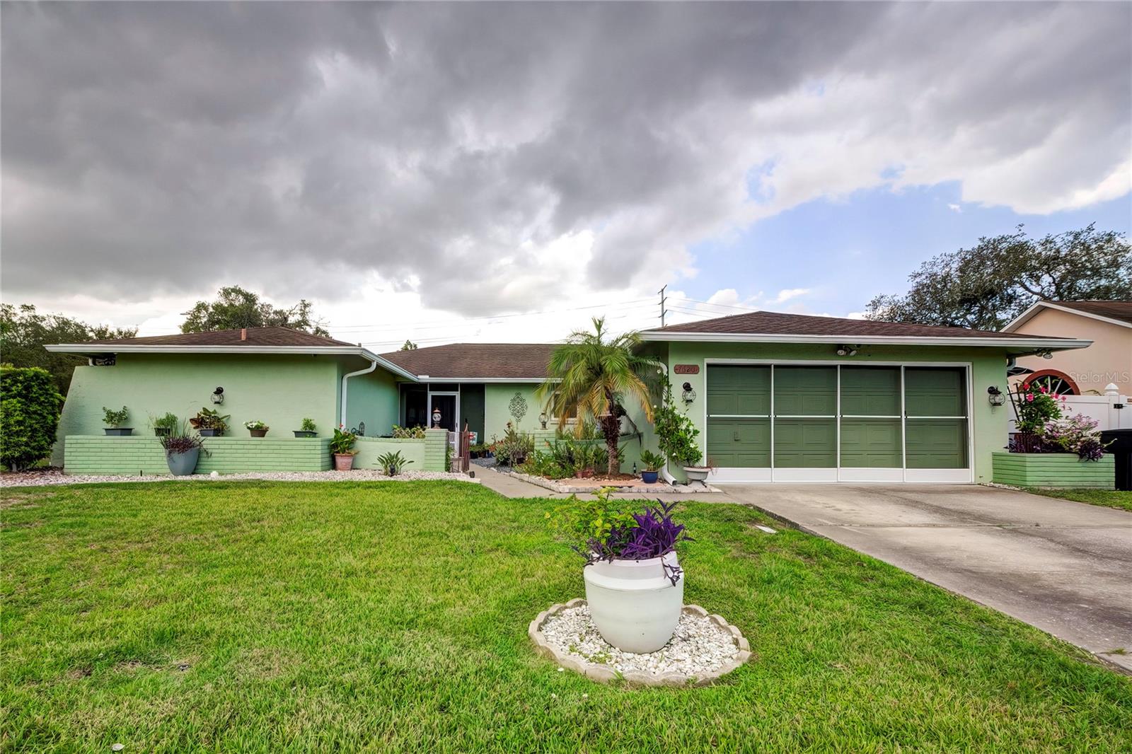 TWO HURRICANES and NO PROBLEMS!!! Not a drop of WATER and the Hurricane Shutters were in place!!! Safe and DRY!!!!!DON'T LET THIS BEAUTIFUL HOME PASS YOU BY! OPEN WITH 3 SEPARATE SEATING AREAS ITS A HIDDEN GEM. NO FLOOD INSURANCE HERE!! Could have a 4th bedroom. Great for entertaining or relaxing. Outside patio off enclosed Florida room area ideal for grilling or outdoor entertaining. Kitchen has abundant cabinet storage and open to the family room which has built in cabinets and a wet bar. Split bedrooms for additional privacy. Florida room has impact windows with beautiful wood trim and crown molding which continues through formal living/dining area. The formal dining area can easily seat 8-10 around a table. There is a swan 9 security camera system that stays with a viewing screen. The inside of this home has an easy flow to it for comfortable living. This home is situated on a corner lot with tons of wonderful plantings including a garden that can add to your table should you desire to continue caring for these delightful plantings. Tucked away right off Ridge Road in this welcoming area that is close to shopping and dining.