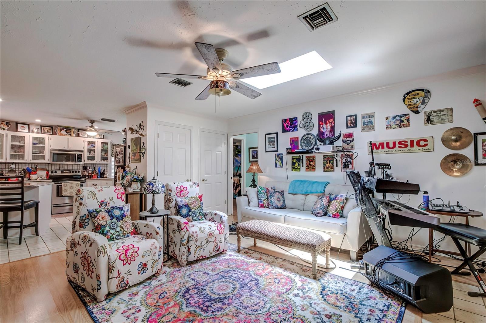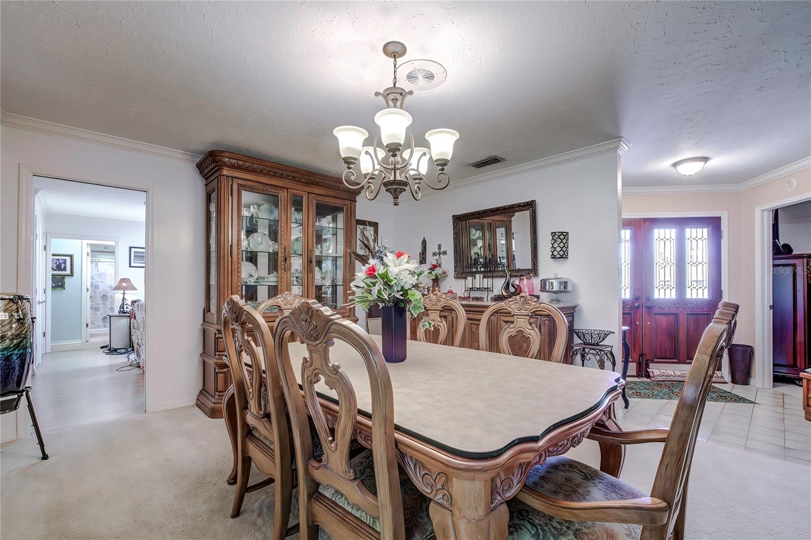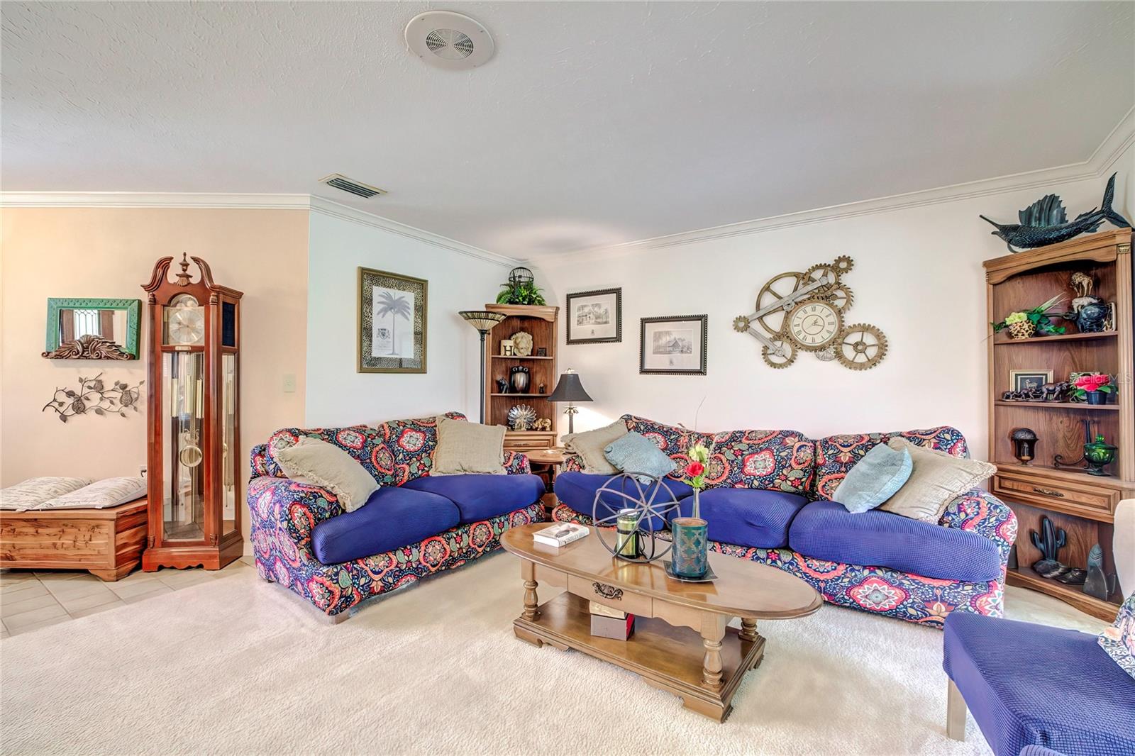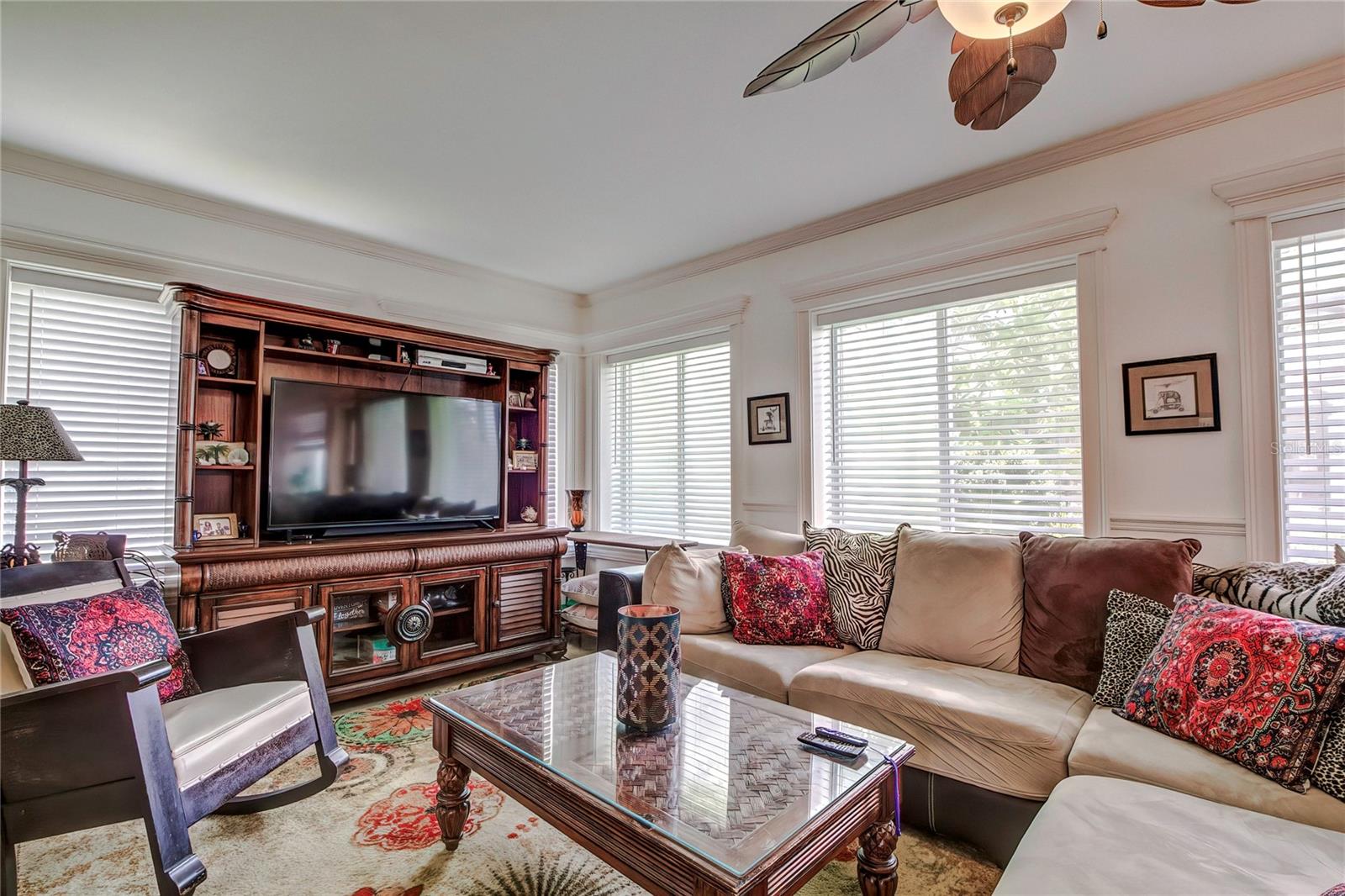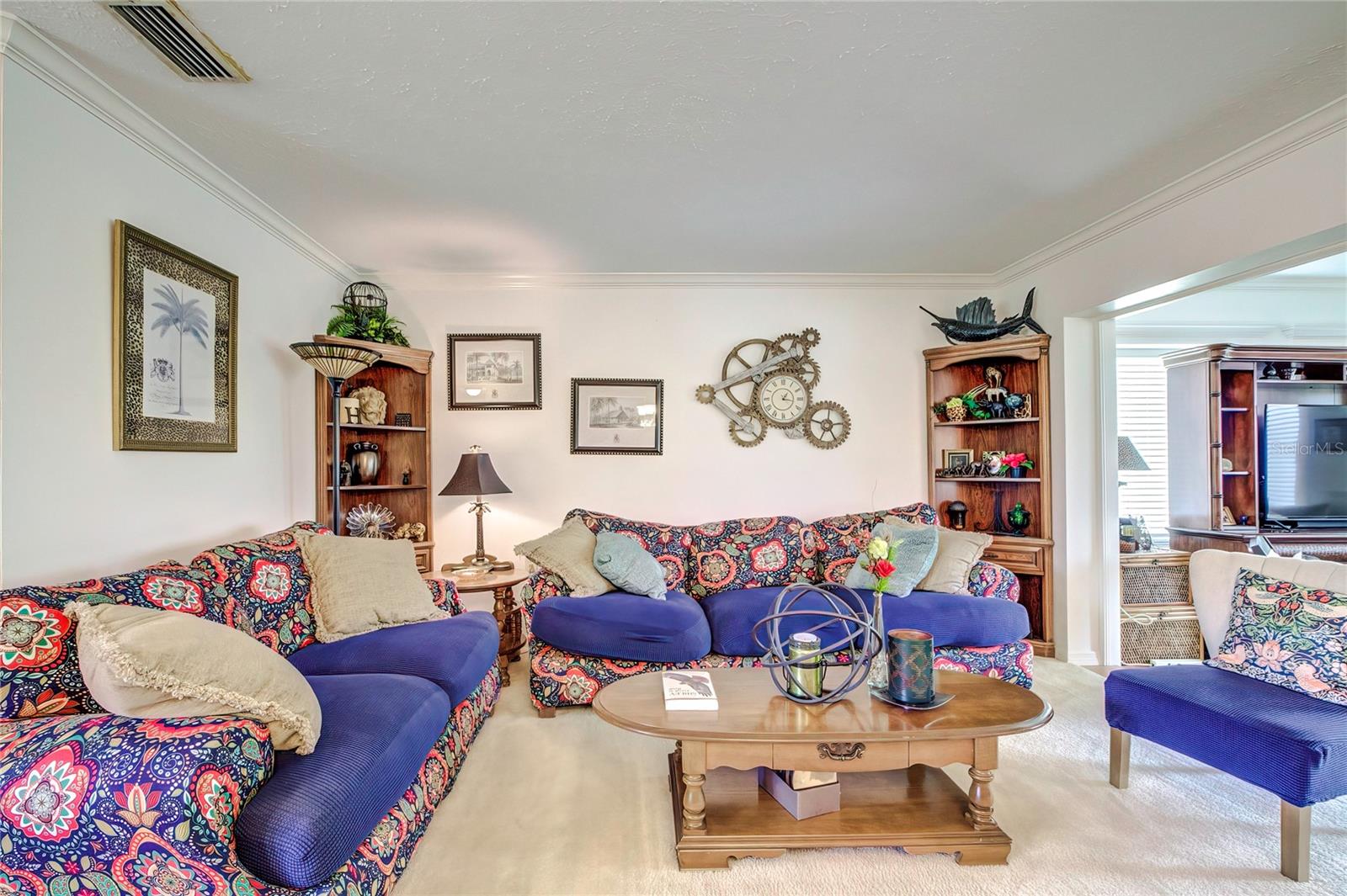 TWO HURRICANES and NO PROBLEMS!!! Not a drop of WATER and the Hurricane Shutters were in place!!! Safe and DRY!!!!!DON'T LET THIS BEAUTIFUL HOME PASS YOU BY! OPEN WITH 3 SEPARATE SEATING AREAS ITS A HIDDEN GEM. NO FLOOD INSURANCE HERE!! Could have a 4th bedroom. Great for entertaining or relaxing. Outside patio off enclosed Florida room area ideal for grilling or outdoor entertaining. Kitchen has abundant cabinet storage and open to the family room which has built in cabinets and a wet bar. Split bedrooms for additional privacy. Florida room has impact windows with beautiful wood trim and crown molding which continues through formal living/dining area. The formal dining area can easily seat 8-10 around a table. There is a swan 9 security camera system that stays with a viewing screen. The inside of this home has an easy flow to it for comfortable living. This home is situated on a corner lot with tons of wonderful plantings including a garden that can add to your table should you desire to continue caring for these delightful plantings. Tucked away right off Ridge Road in this welcoming area that is close to shopping and dining.