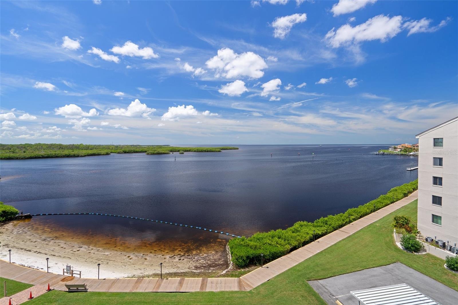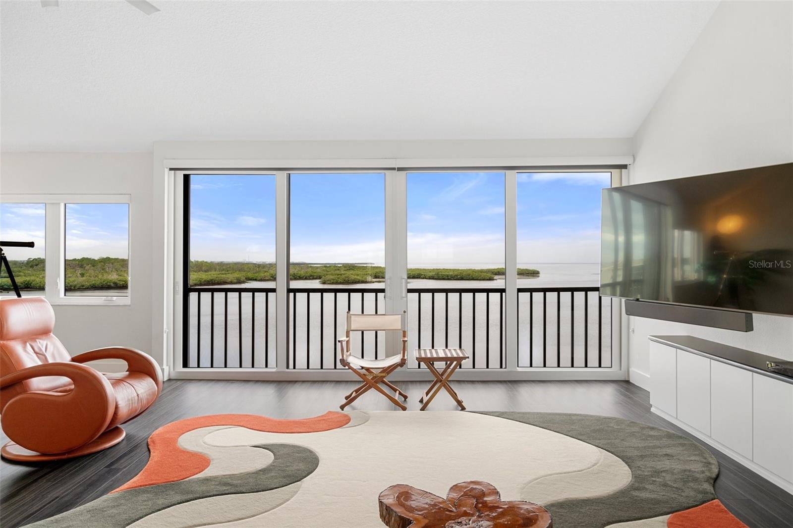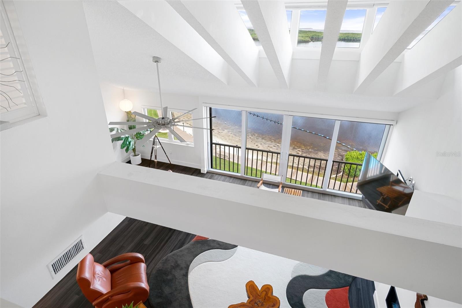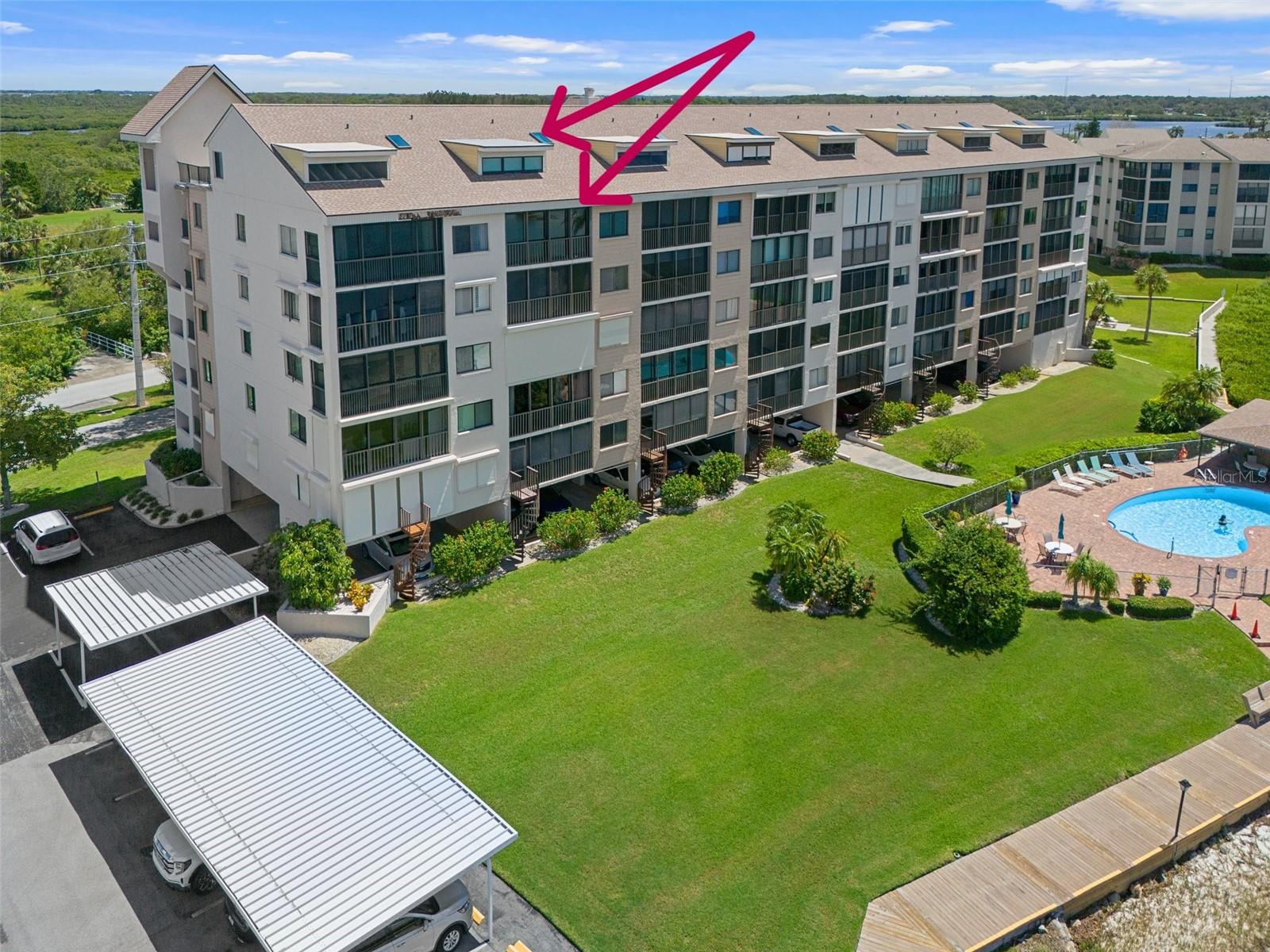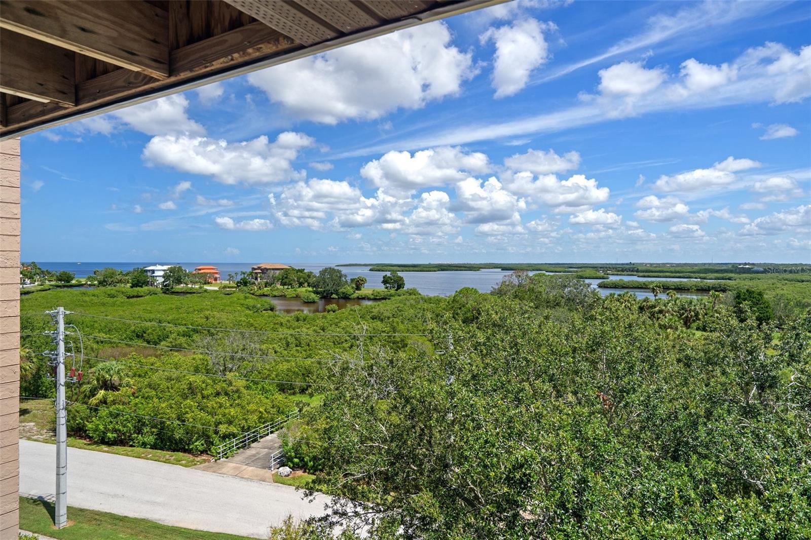 AMAZING, TWO STORY, PENTHOUSE condo with direct waterfront view of the Gulf of Mexico. There are only EIGHT units in all of Sand Pebble that boast this floor plan- and they don't come on the market very often. Don't miss this opportunity! The interior of this spacious unit is truly breathtaking. The kitchen has been updated with white cabinets, stainless appliances, island, built in pantry and extra storage. 25" TV . The main living area offers very high vaulted ceilings. This great room has a built in electric fireplace, 75" TV, built in display cabinets with windows and sliders providing a panoramic view of the waterfront. Sun shades on window and sliding doors, dormer windows have black out shades operable with remote. In the front of the condo is the large guest bedroom with deep closet and plantation shutters, the guest bath with new vanity, new toilet and Tub/Shower. Off of the great room there is a 1/2 bath with laundry closet. This 1/2 bath has a new vanity and new toilet. Just up the spiral staircase you will find the very large master bedroom/loft with view of the Gulf of Mexico through dormer windows and access to a large master bath with jetted tub, his/her new vanities and large WIC shower. Mirrors open as medicine chests. Skylight in master loft and master bath provide extra natural light. UPDATES: AC 2009 per Owner, Range 2017, Hot water heater 2020, Water softener 2020, Dishwasher 2020, Microwave 2021, Refrigerator 2024, All new Weather Tight windows throughout and new sliders (impact resistant). Luxury Vinyl Plank flooring throughout. Knock down texture on ceiling throughout (no popcorn). One reserved parking space under the building #57 and one reserved storage locker #57. Community offers 24 hr manned gate, waterfront boardwalk, private beach, waterfront pool, fishing pier, boat ramp, clubhouse with game tables, fitness and library, Tennis, Pickleball and Putting green! Close to all conveniences: shopping, waterfront dining, medical, historic downtown New Port Richey (restaurants, nightclubs, live theatre, shopping, The Hacienda Hotel, Simms Park-with seasonal festivals and activities). Approx 20 min to Tarpon Sponge Docks, Fred Howard Park, The Aquarium, Freedom boat club, Approx 40 minutes to Caladesi Island and Honeymoon Island and downtown Dunedin, and Approx 60 min to famous Clearwater Beach and Tampa. Tampa offers an international airport, international cruise port, sports arenas, theme parks, live theatre, fine dining, Ybor city and so much more! Over 1800 sq feet of direct GULF front condo living is VERY hard to find at this price - call today!! ***The documented heated sq feet includes area of lanai that has been enclosed, enlarging the great room*** Furnishings are Optional- price negotiable. Few items do not convey- listed in Realtor Only Remarks. NO PETS. NOT AGE RESTRICED. 40 ft RV/BOAT carport with 8 x 10 shed available for separate purchase (after seller offers to current owners x 2 week waiting period), 22 ft Boston Whaler center console available for purchase. **OWNER WILL PAY ASSESSMENT AT CLOSING OR ESCROW FUNDS- SEE REALTOR ONLY REMARKS.