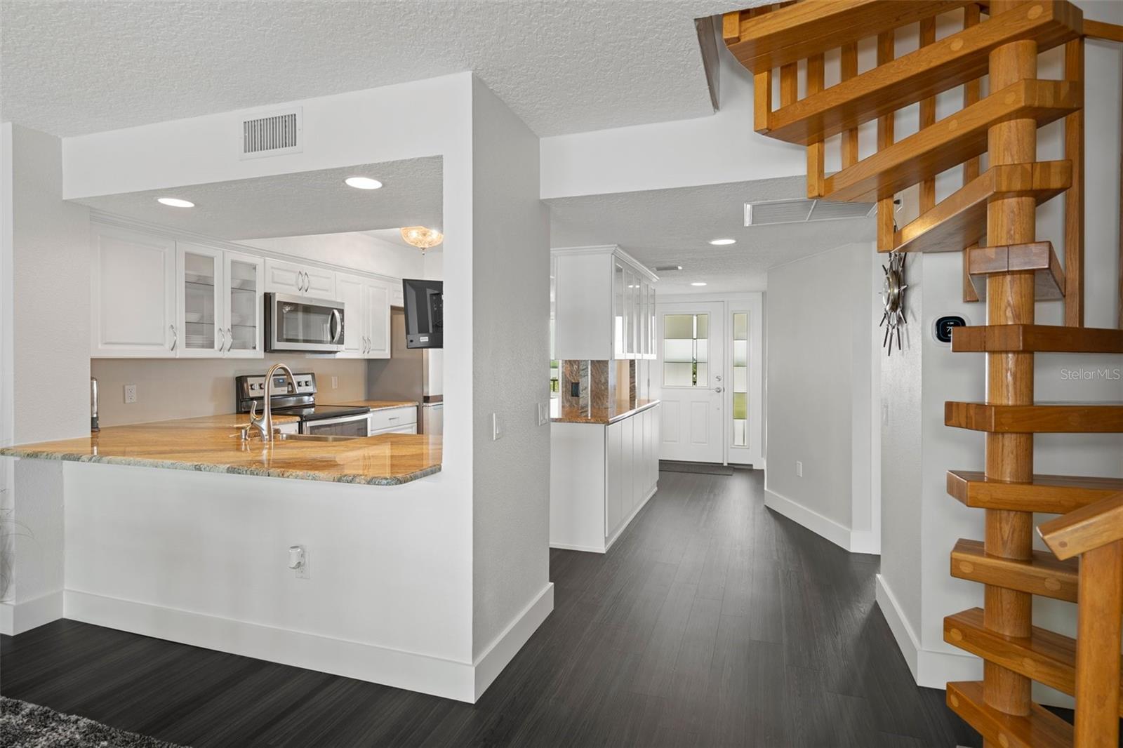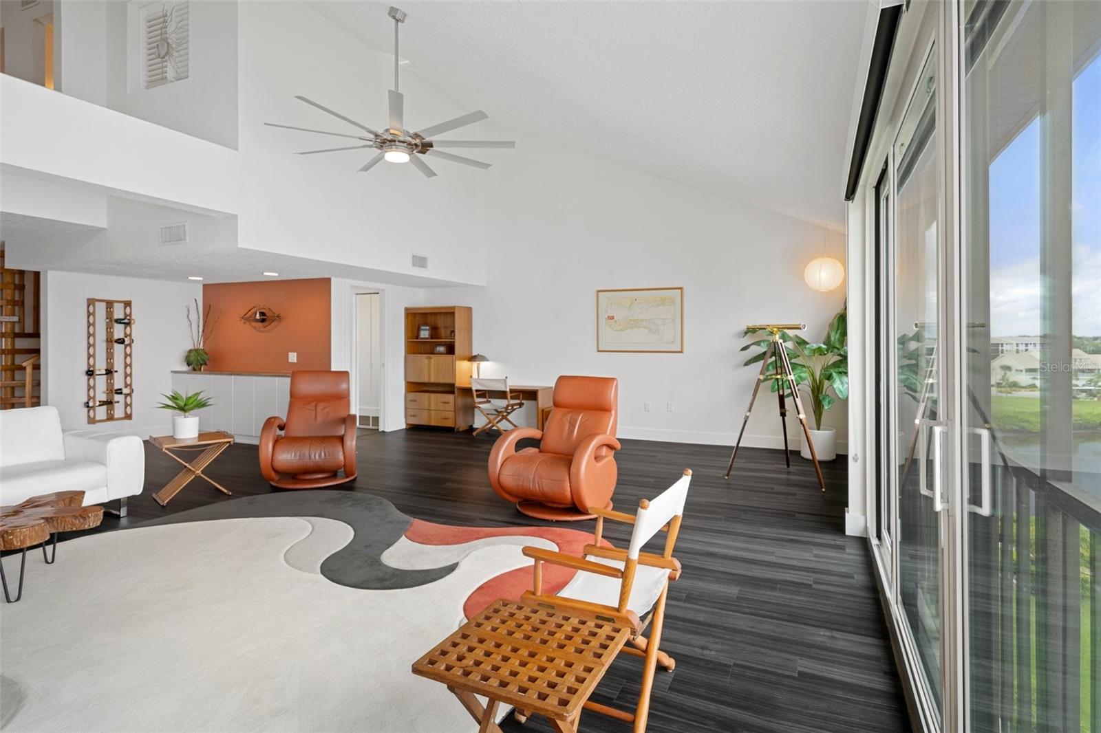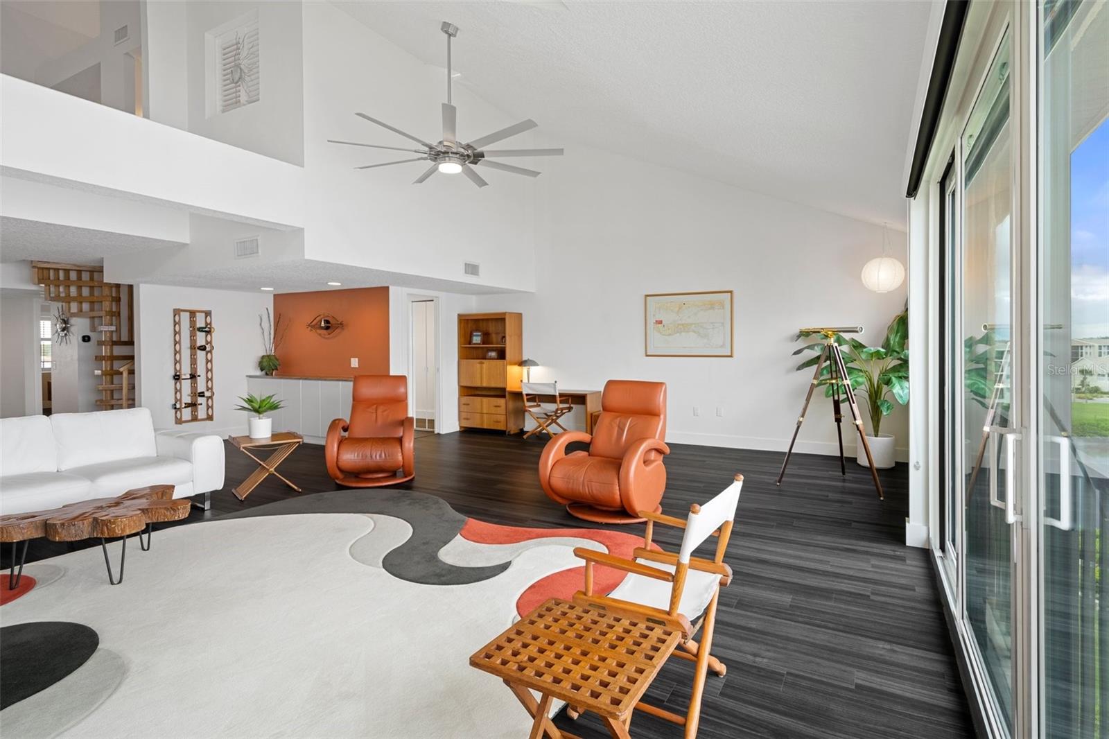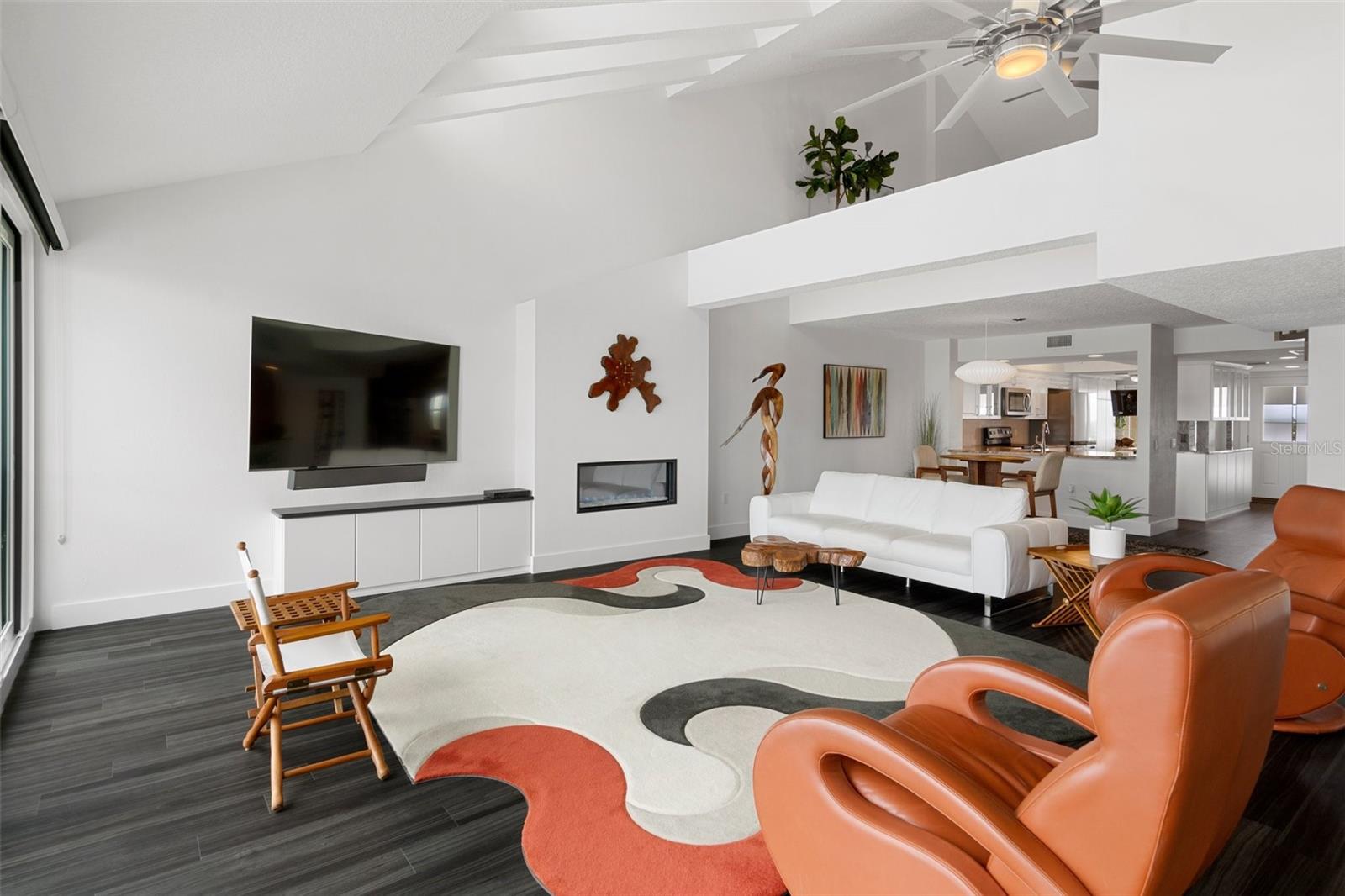 AMAZING, TWO STORY, PENTHOUSE condo with direct waterfront view of the Gulf of Mexico. There are only EIGHT units in all of Sand Pebble that boast this floor plan- and they don't come on the market very often. Don't miss this opportunity! The interior of this spacious unit is truly breathtaking. The kitchen has been updated with white cabinets, stainless appliances, island, built in pantry and extra storage. 25" TV . The main living area offers very high vaulted ceilings. This great room has a built in electric fireplace, 75" TV, built in display cabinets with windows and sliders providing a panoramic view of the waterfront. Sun shades on window and sliding doors, dormer windows have black out shades operable with remote. In the front of the condo is the large guest bedroom with deep closet and plantation shutters, the guest bath with new vanity, new toilet and Tub/Shower. Off of the great room there is a 1/2 bath with laundry closet. This 1/2 bath has a new vanity and new toilet. Just up the spiral staircase you will find the very large master bedroom/loft with view of the Gulf of Mexico through dormer windows and access to a large master bath with jetted tub, his/her new vanities and large WIC shower. Mirrors open as medicine chests. Skylight in master loft and master bath provide extra natural light. UPDATES: AC 2009 per Owner, Range 2017, Hot water heater 2020, Water softener 2020, Dishwasher 2020, Microwave 2021, Refrigerator 2024, All new Weather Tight windows throughout and new sliders (impact resistant). Luxury Vinyl Plank flooring throughout. Knock down texture on ceiling throughout (no popcorn). One reserved parking space under the building #57 and one reserved storage locker #57. Community offers 24 hr manned gate, waterfront boardwalk, private beach, waterfront pool, fishing pier, boat ramp, clubhouse with game tables, fitness and library, Tennis, Pickleball and Putting green! Close to all conveniences: shopping, waterfront dining, medical, historic downtown New Port Richey (restaurants, nightclubs, live theatre, shopping, The Hacienda Hotel, Simms Park-with seasonal festivals and activities). Approx 20 min to Tarpon Sponge Docks, Fred Howard Park, The Aquarium, Freedom boat club, Approx 40 minutes to Caladesi Island and Honeymoon Island and downtown Dunedin, and Approx 60 min to famous Clearwater Beach and Tampa. Tampa offers an international airport, international cruise port, sports arenas, theme parks, live theatre, fine dining, Ybor city and so much more! Over 1800 sq feet of direct GULF front condo living is VERY hard to find at this price - call today!! ***The documented heated sq feet includes area of lanai that has been enclosed, enlarging the great room*** Furnishings are Optional- price negotiable. Few items do not convey- listed in Realtor Only Remarks. NO PETS. NOT AGE RESTRICED. 40 ft RV/BOAT carport with 8 x 10 shed available for separate purchase (after seller offers to current owners x 2 week waiting period), 22 ft Boston Whaler center console available for purchase. **OWNER WILL PAY ASSESSMENT AT CLOSING OR ESCROW FUNDS- SEE REALTOR ONLY REMARKS.
