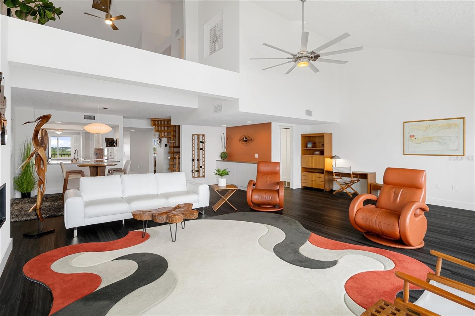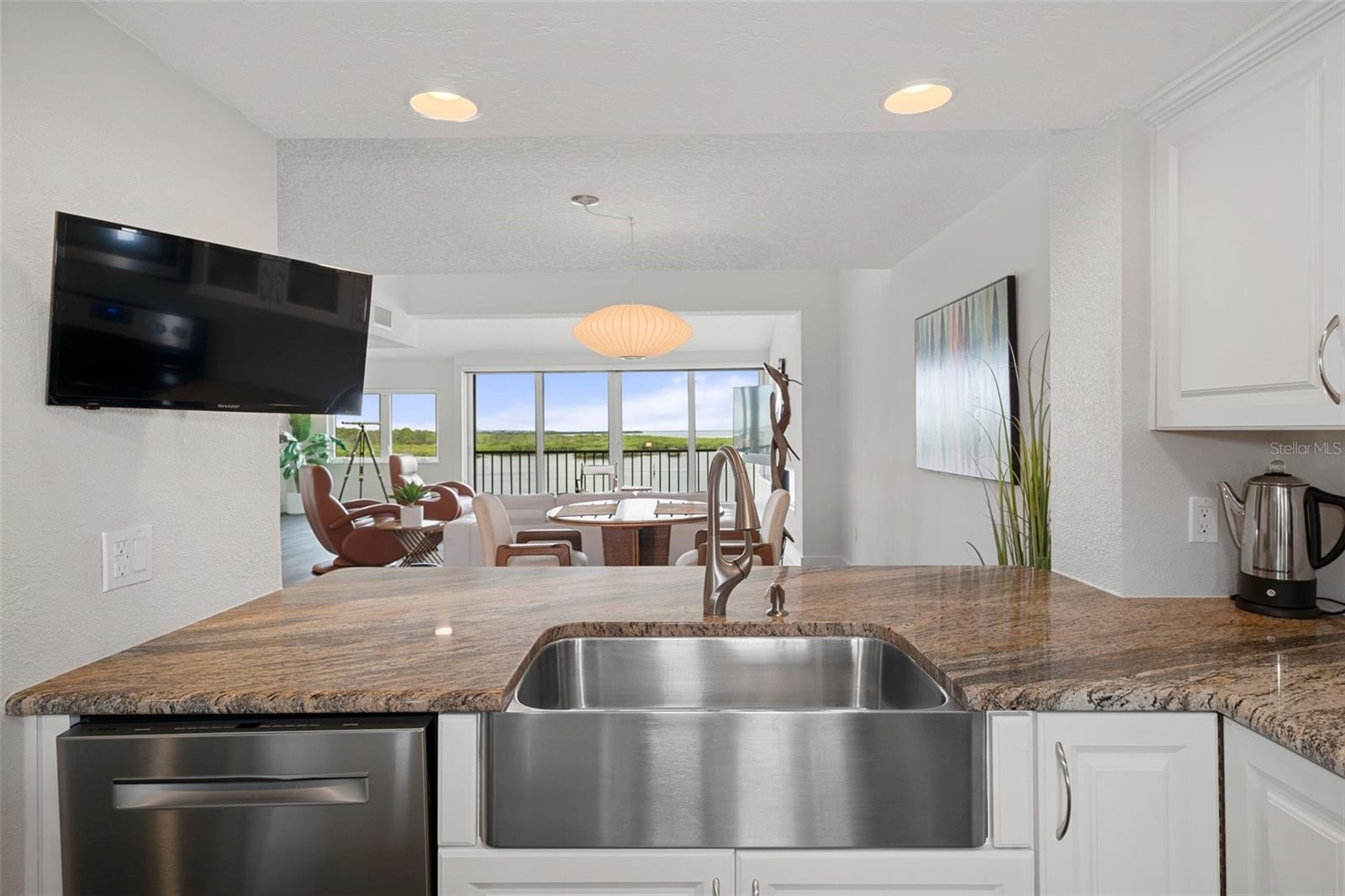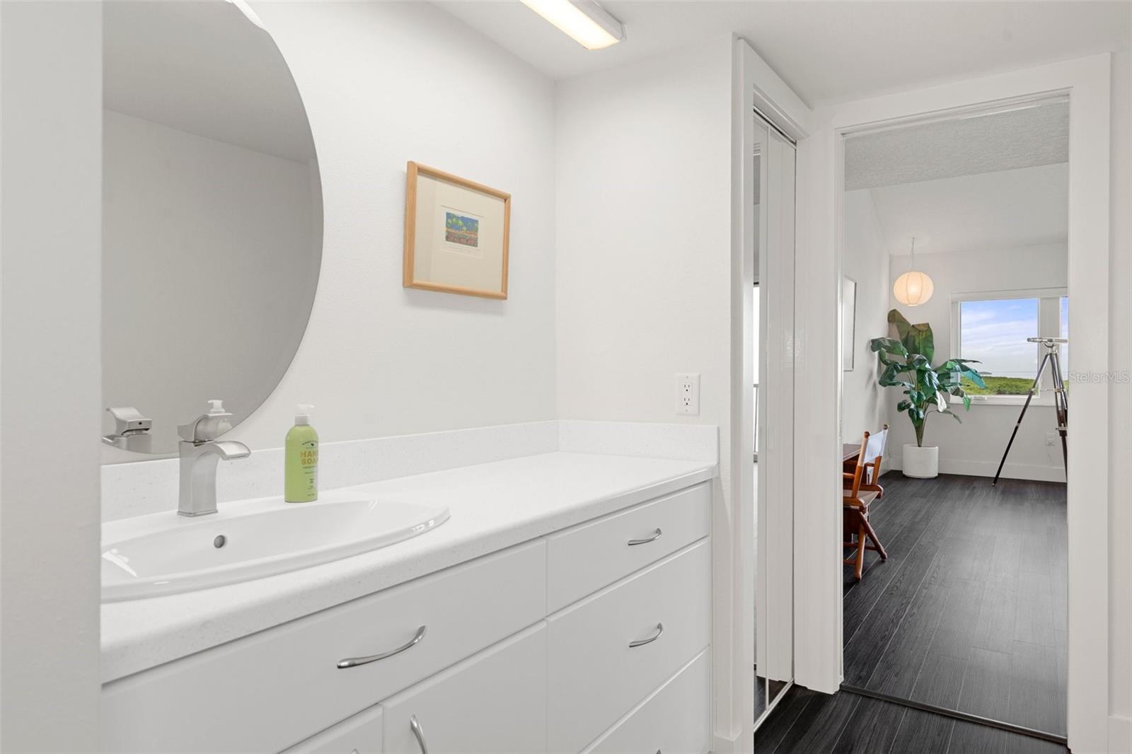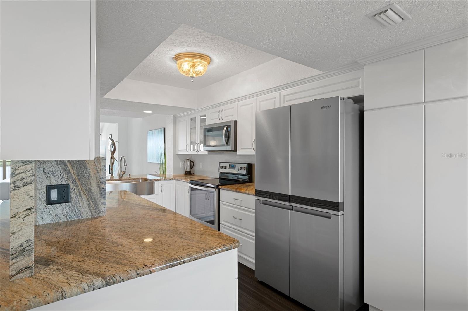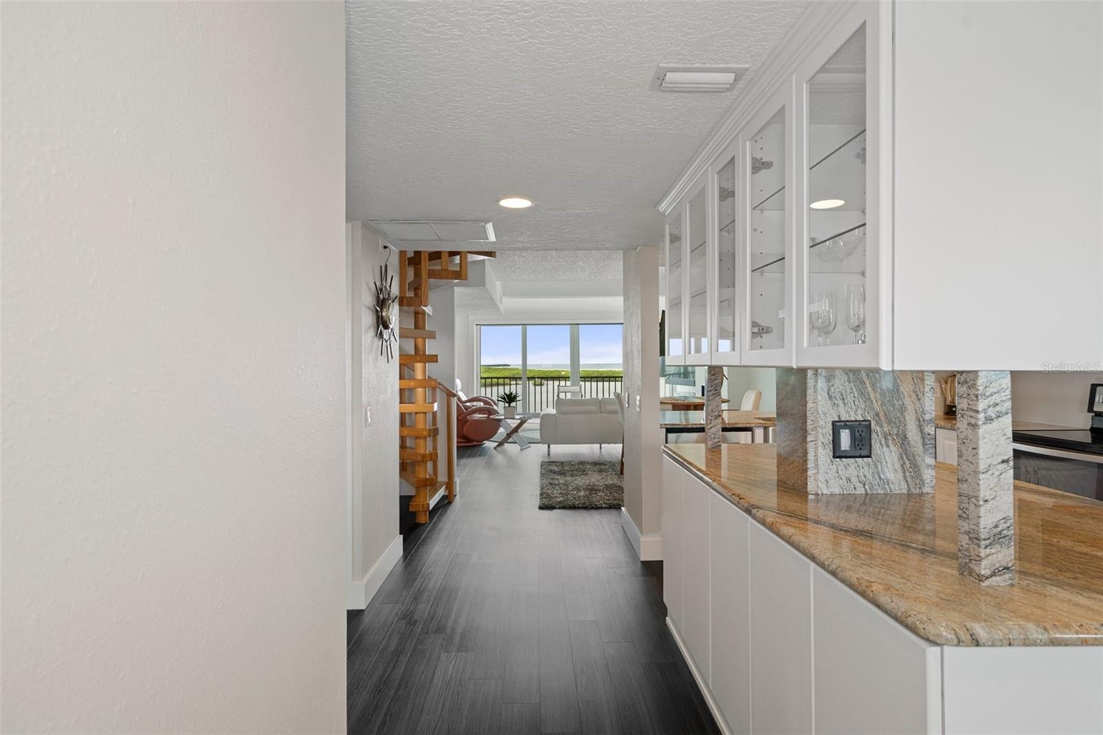 AMAZING, TWO STORY, PENTHOUSE condo with direct waterfront view of the Gulf of Mexico. There are only EIGHT units in all of Sand Pebble that boast this floor plan- and they don't come on the market very often. Don't miss this opportunity! The interior of this spacious unit is truly breathtaking. The kitchen has been updated with white cabinets, stainless appliances, island, built in pantry and extra storage. 25" TV . The main living area offers very high vaulted ceilings. This great room has a built in electric fireplace, 75" TV, built in display cabinets with windows and sliders providing a panoramic view of the waterfront. Sun shades on window and sliding doors, dormer windows have black out shades operable with remote. In the front of the condo is the large guest bedroom with deep closet and plantation shutters, the guest bath with new vanity, new toilet and Tub/Shower. Off of the great room there is a 1/2 bath with laundry closet. This 1/2 bath has a new vanity and new toilet. Just up the spiral staircase you will find the very large master bedroom/loft with view of the Gulf of Mexico through dormer windows and access to a large master bath with jetted tub, his/her new vanities and large WIC shower. Mirrors open as medicine chests. Skylight in master loft and master bath provide extra natural light. UPDATES: AC 2009 per Owner, Range 2017, Hot water heater 2020, Water softener 2020, Dishwasher 2020, Microwave 2021, Refrigerator 2024, All new Weather Tight windows throughout and new sliders (impact resistant). Luxury Vinyl Plank flooring throughout. Knock down texture on ceiling throughout (no popcorn). One reserved parking space under the building #57 and one reserved storage locker #57. Community offers 24 hr manned gate, waterfront boardwalk, private beach, waterfront pool, fishing pier, boat ramp, clubhouse with game tables, fitness and library, Tennis, Pickleball and Putting green! Close to all conveniences: shopping, waterfront dining, medical, historic downtown New Port Richey (restaurants, nightclubs, live theatre, shopping, The Hacienda Hotel, Simms Park-with seasonal festivals and activities). Approx 20 min to Tarpon Sponge Docks, Fred Howard Park, The Aquarium, Freedom boat club, Approx 40 minutes to Caladesi Island and Honeymoon Island and downtown Dunedin, and Approx 60 min to famous Clearwater Beach and Tampa. Tampa offers an international airport, international cruise port, sports arenas, theme parks, live theatre, fine dining, Ybor city and so much more! Over 1800 sq feet of direct GULF front condo living is VERY hard to find at this price - call today!! ***The documented heated sq feet includes area of lanai that has been enclosed, enlarging the great room*** Furnishings are Optional- price negotiable. Few items do not convey- listed in Realtor Only Remarks. NO PETS. NOT AGE RESTRICED. 40 ft RV/BOAT carport with 8 x 10 shed available for separate purchase (after seller offers to current owners x 2 week waiting period), 22 ft Boston Whaler center console available for purchase. **OWNER WILL PAY ASSESSMENT AT CLOSING OR ESCROW FUNDS- SEE REALTOR ONLY REMARKS.
