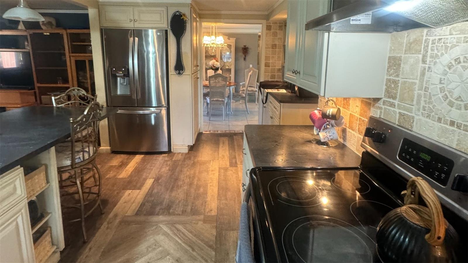 $5,000.00 SELLERS' CONCESSION TOWARD CLOSING, PRE-PAIDS or RATE BUY DOWN!!! WARNING! Entering this home will cause you to fall in love with it! This home boasts a unique charm that demonstrates good taste and practical design. The heart of the home—a custom kitchen offers a perfect blend of style and function. Stainless steel appliances, two pantries and ample cabinets, a versatile prep and dining island, and waterproof laminate wood flooring create an inviting space that blends seamlessly with the family room for daily living and entertaining. There's a bright living room, filled with sunlight from the huge double-pane hurricane picture window. A bonus room off the dining room provides flexible options for an office, playroom, hobby space or guest room with double-pane hurricane windows that are energy efficient yet open to allow fresh air to fill the home during cooler months. Step outside to a screened lanais leading to a fully fenced backyard, complete with a relaxing jacuzzi, a fire pit, and a small garden plot ready for planting. A built in drain system ensures a dry yard after those sudden Florida downpours. An oversized garage with workspaces, lots of cabinets, and an outside workshop area will delight hobbyists and DIY enthusiasts. A second driveway across the yard from the garage side offers extra parking, while the front yard’s sprinkler system keeps the landscape lush. Once you see the inside of this home, it will be hard to think of a reason why you should not make it your own!