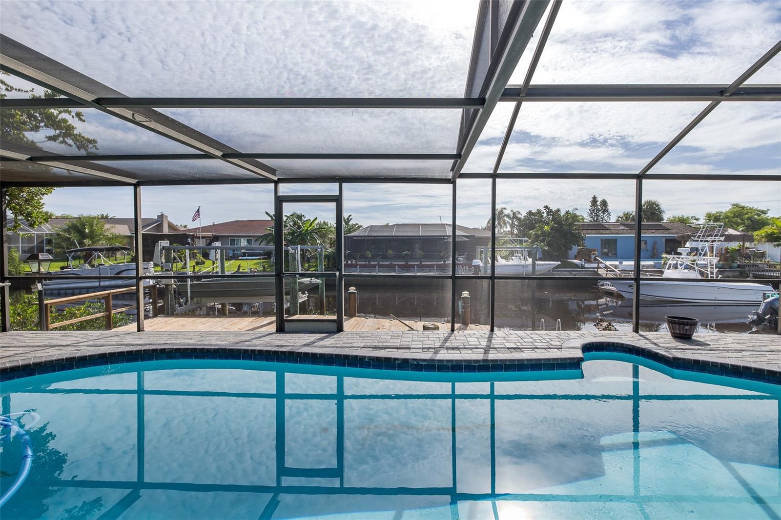 Come view this beautiful updated 3 bedroom, 2 bath home with a bonus sitting area overlooking the pool and the spacious canal. This home features beautiful tile floors and large sliding glass doors. The stunning kitchen has beautiful granite countertops with backsplash and wood cabinets as well as all appliances. You'll love the primary bedroom/bath featuring a wonderful walk-in closet large enough for the person who loves their clothes, shoes, and accessories with plenty of room to spare. Situated on great canal with access to the Gulf this home is your own little piece of paradise. The backyard is just a continuation of all this home has to offer with a screened-in pool which is ready to provide hours of entertainment. Imagine being able to lower your very own boat lift and then jump in your boat and head directly out to the Gulf of Mexico with no bridges. Certainly, you must see this house to understand. Schedule your private tour today!