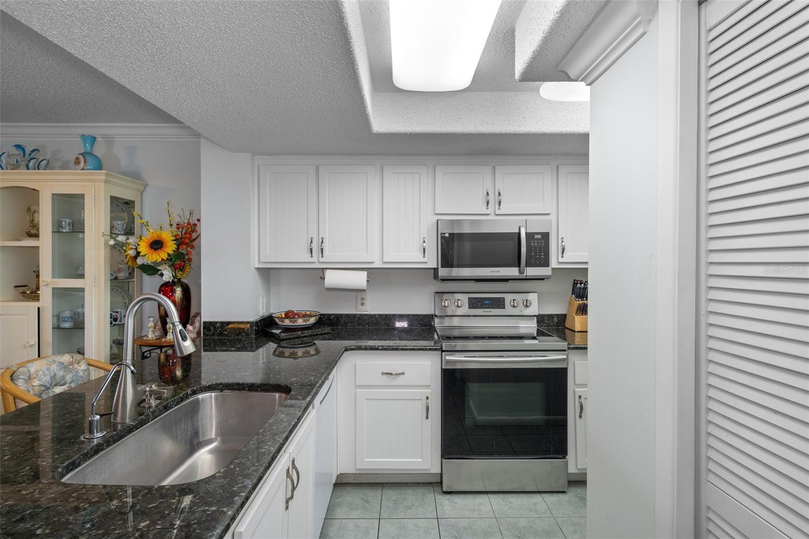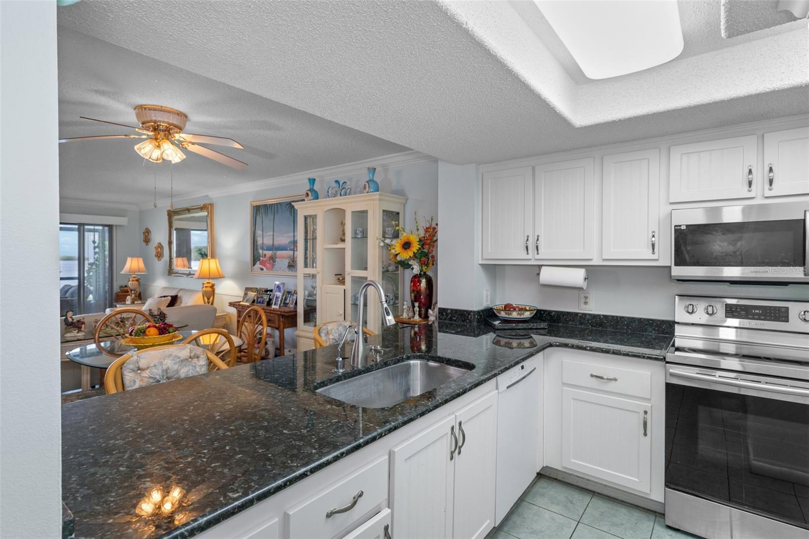 Amazing opportunity to own a GULF FRONT condo in a GATED COMMUNITY for a very affordable price. GULF FRONT view from almost every room in the condo! The kitchen was updated with granite counter tops. Stainless Range/Oven (1-2 yr new), Refrigerator (1-2 yr new) and Microwave (2024). White dishwasher. Refaced cabinets. Eating space in kitchen currently used as an office. Laundry closet with washer and dryer. Great room with wet bar and granite/cabinetry to match the kitchen. Great room with direct view of the GULF of MEXICO, the private beach and heated pool/cabana. The great room has sliding door access to the enclosed lanai. Spiral stairs offer easy access to the pool and waterfront. PLEASE DO NOT ACCESS STAIRS- MAY NEED MAINTENANCE. Master suite with sliding door access to the enclosed lanai, en suite bath and direct view of the GULF of MEXICO. The en suite bath offers his/her sinks (new faucets will be installed), an updated walk in shower with glass doors and a second shower, large walk in closet and large linen closet. The guest bedroom has a large closet. Guest bath with tub/shower and updated vanity and counter top. Plantation shutters in two front windows and verticals in master and great room. Crown throughout and bead board in great room. Ceiling fans in kitchen, lanai, dining room, master suite. Tile in main area and wood look flooring in both bedrooms (feels like vinyl). One reserved parking space UNDER BUILDING. One storage locker under the building. Roof replaced in 2022. RV/Boat/Kayak storage upon availability for an extra fee. Monthly fee includes: escrows for roof, escrows for exterior maintenance, landscaping, maintenance of all master amenities, 24 hour gate guard, manager, insurance on building (not interior of unit), flood insurance on building (not interior of unit), water/sewer, trash, basic cable and WIFI. Close to many waterfront restaurants, Historic Downtown New Port Richey, The Hacienda hotel, restaurants, breweries, shopping, night life, Simms Park (concerts, festivals), public beaches/parks, medical, shopping, water activities, casino boat, about 20 min to Tarpon Aquarium and Tarpon Sponge Docks, approx 45 minutes to Caladesi Island and Honeymoon island, approx 60 min Clearwater Beach, approx 60 min to Tampa airport, Tampa Cruise Port, Theme parks, Sports arenas, Fine Dining and Theatre. NO PETS. NO SMOKING. Not age restricted. ***CONDO IS PRICED ACCORDINGLY TO BE SOLD AS-IS WITH THE BUYER RESPONSIBLE TO PAY THE MILESTONE ASSESSMENT (VOTING ON AMOUNT AND PAYMENT DUE DATES AT 9/12 MEETING).