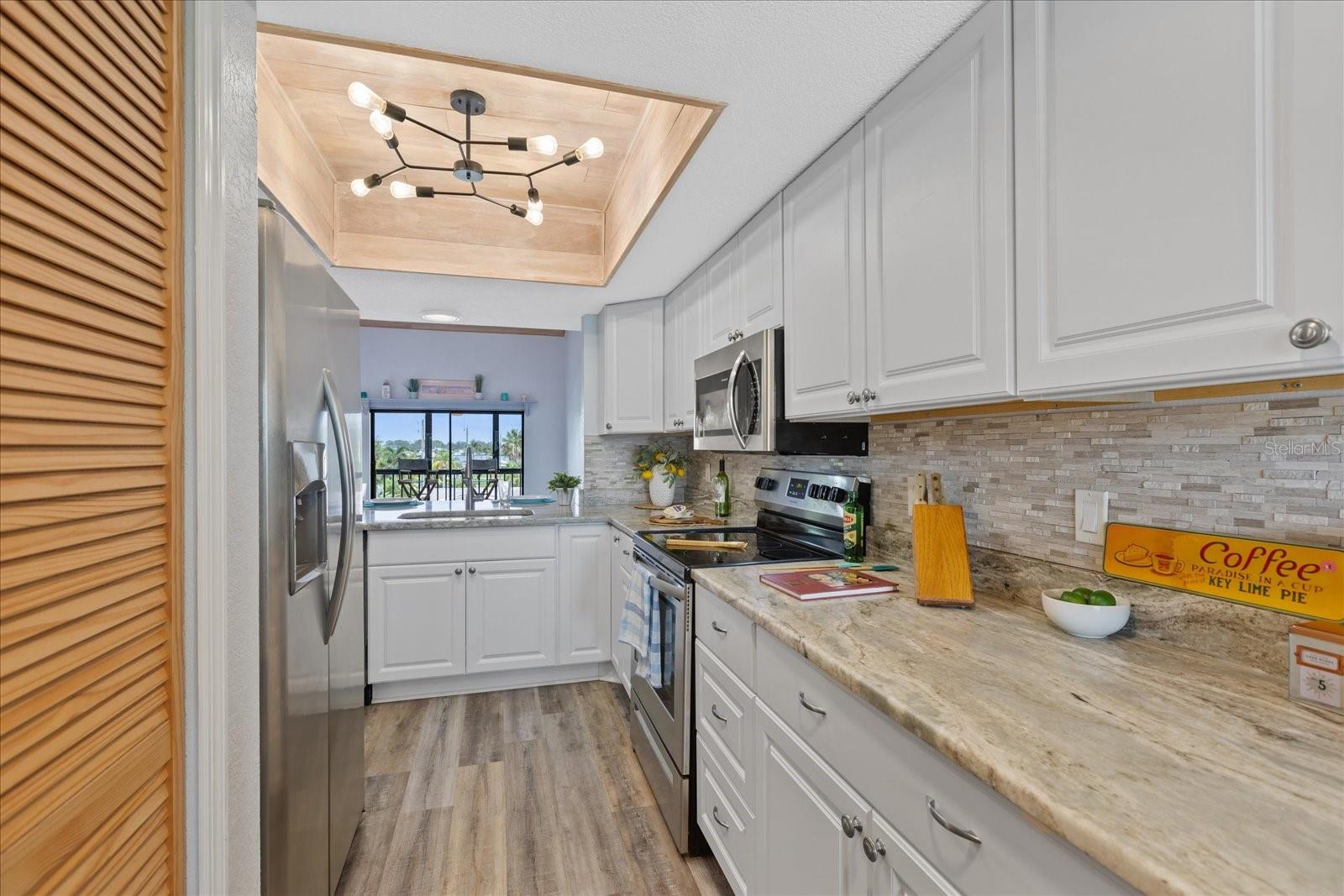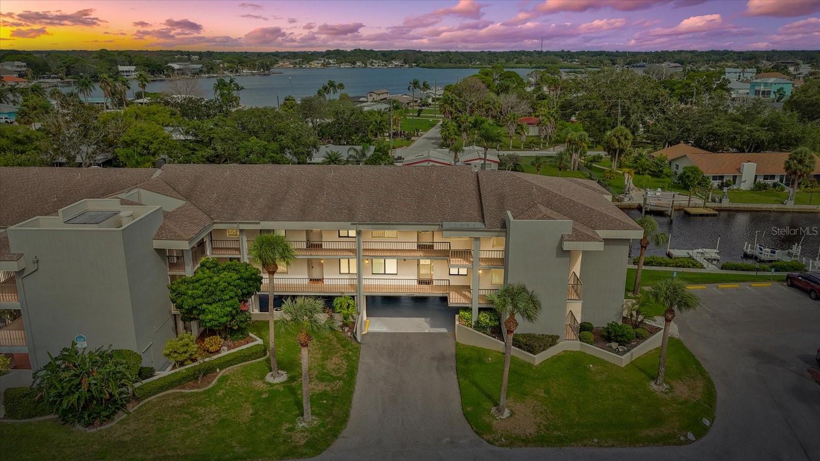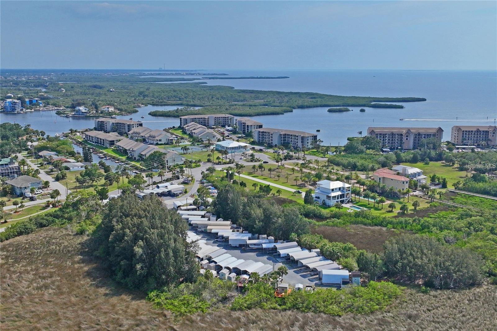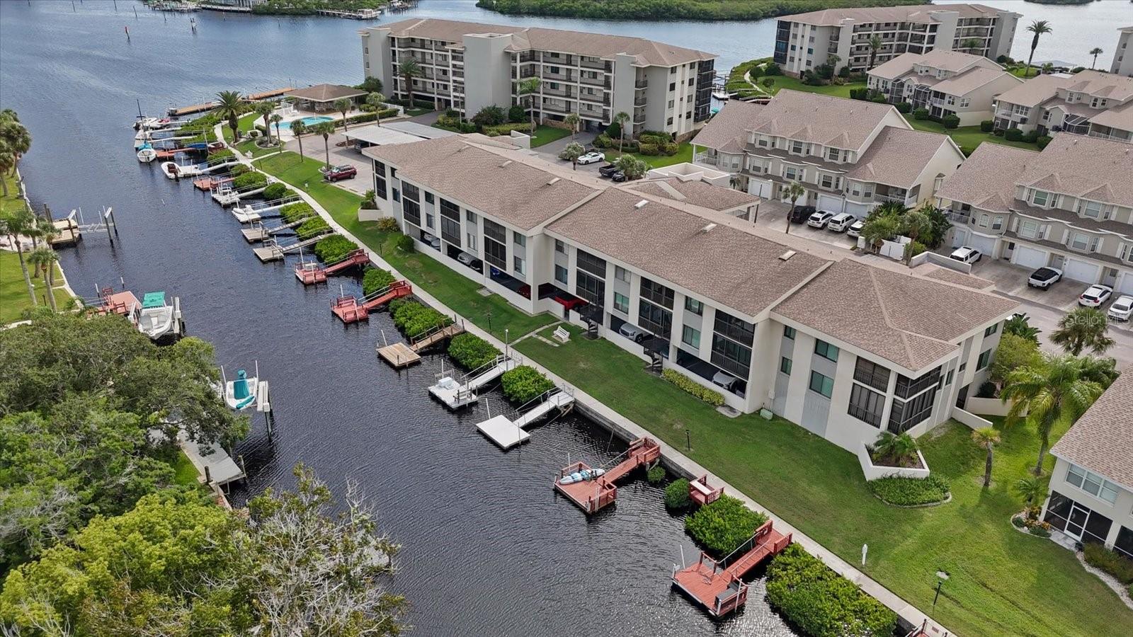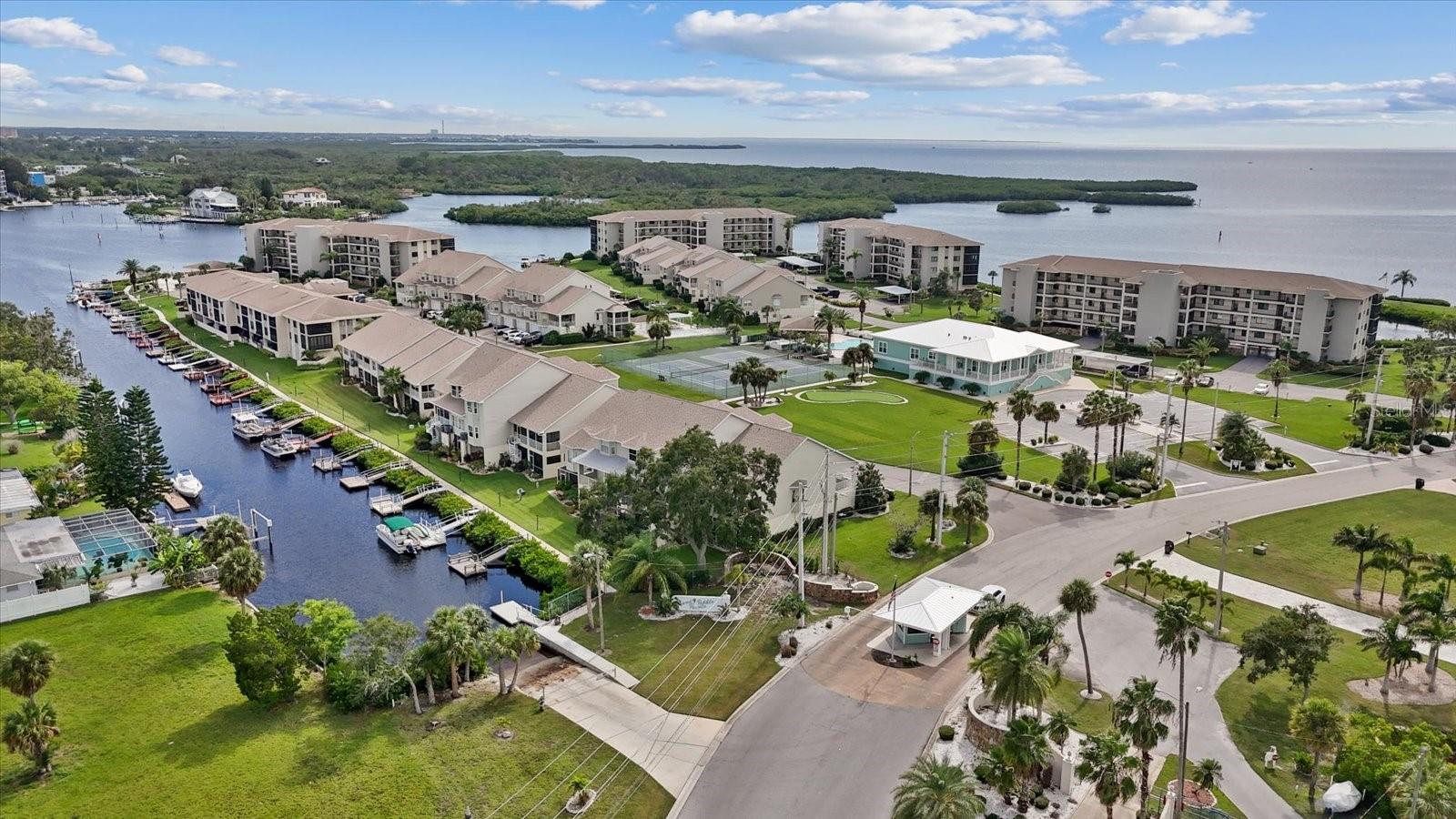 Welcome to life on the Gulf with your own private boat dock included ($20k value)! This beautifully updated top-floor 2 bed, 2 bath condo in the gated Sand Pebble community offers sweeping waterfront views at the mouth of the Cottee River, just a short ride to the Gulf. Light and bright with cathedral ceilings, skylight, and a screened lanai, it features a newly renovated kitchen with granite counters, stainless steel appliances, and ample cabinetry, plus a spacious primary suite with barn doors, walk-in closet, and updated bath. Recent upgrades include hurricane-rated windows and door, with appliances and washer/dryer replaced in 2021. Assigned covered parking, storage, and elevator access add convenience, while community amenities include two pools (one waterfront), clubhouse with gym and kitchen, pickleball, putting green, BBQs, fishing pier, and boardwalk. HOA covers Internet, cable, exterior maintenance, trash, termite inspection, and insurance. Close to dining, beaches, and only 45 minutes to Tampa and Clearwater/St. Pete airports—this turnkey waterfront gem is ready for you!